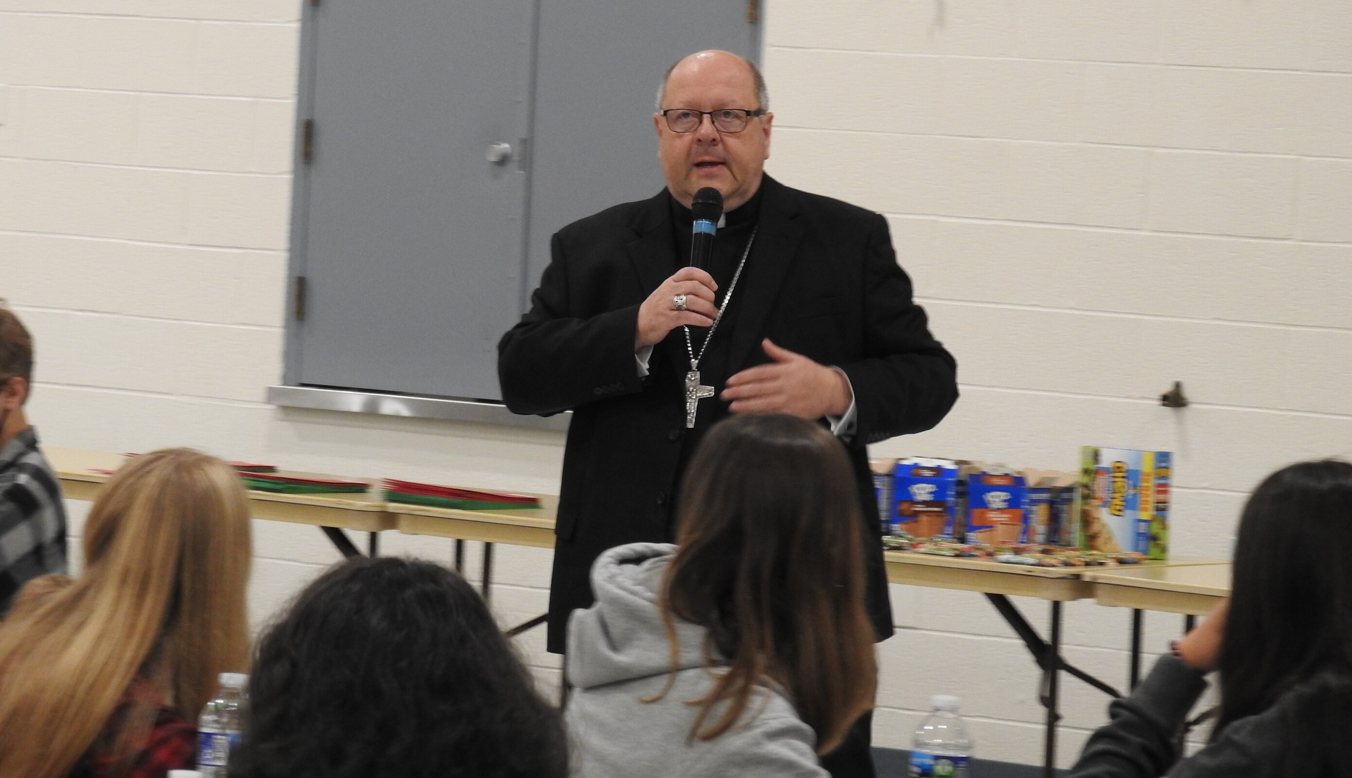 They will be with thousands of other faith-filled Catholics in Indianapolis, but in the quiet of their rooms, there will be opportunities for a private, daily chats with Jesus, the bishop said. He encouraged the teens to take advantage of those moments. “Jesus wants to hear from you. And he wants to speak to you heart to heart.”