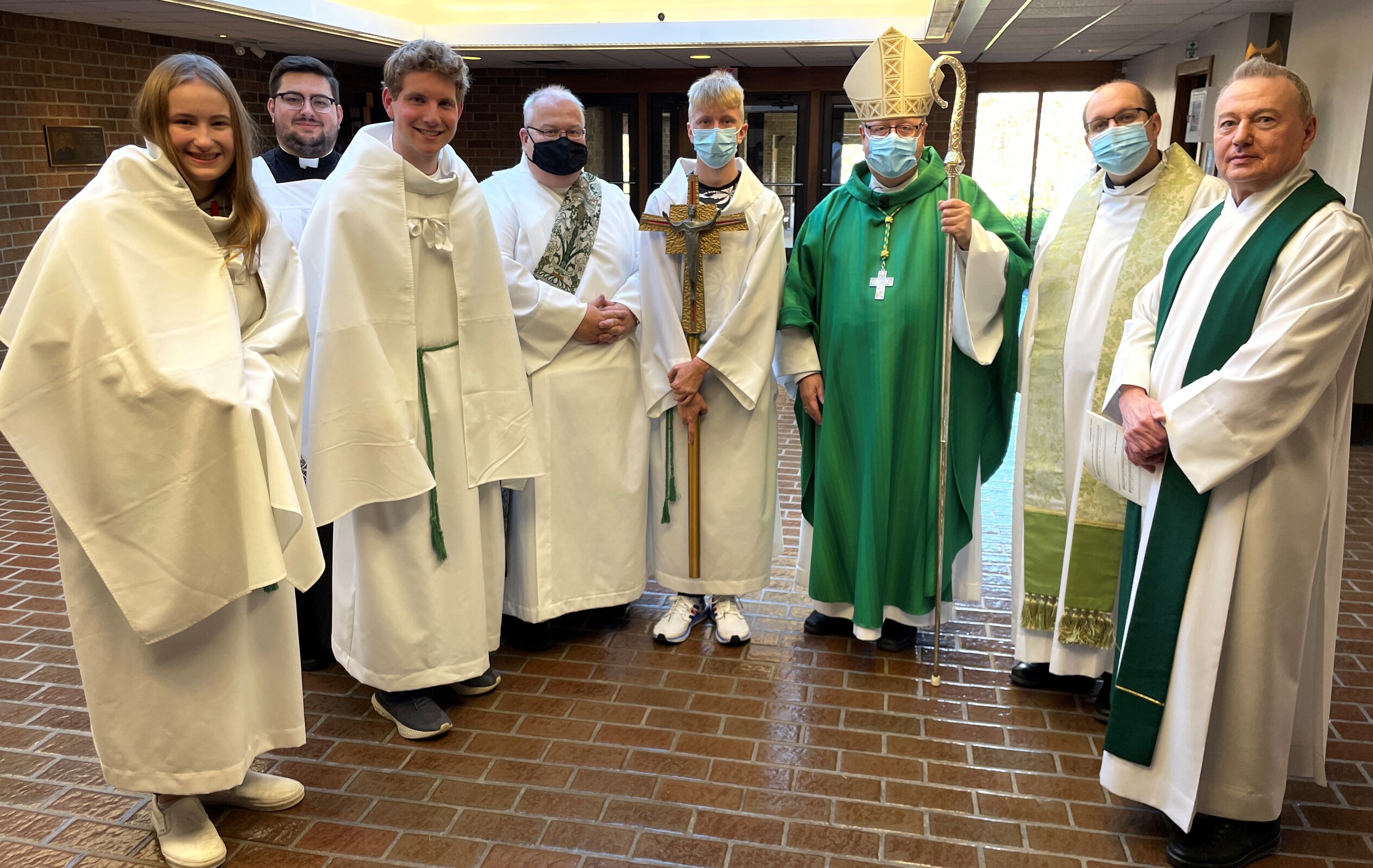 Before heading to Indianapolis, the delegation met on Nov. 6 for a sendoff at St. Clarence Parish. The group enjoyed some team-building exercises, had a chance to chat with the bishop and hear his vocation story. They also received detailed information about the event and attended Mass celebrated by the bishop.