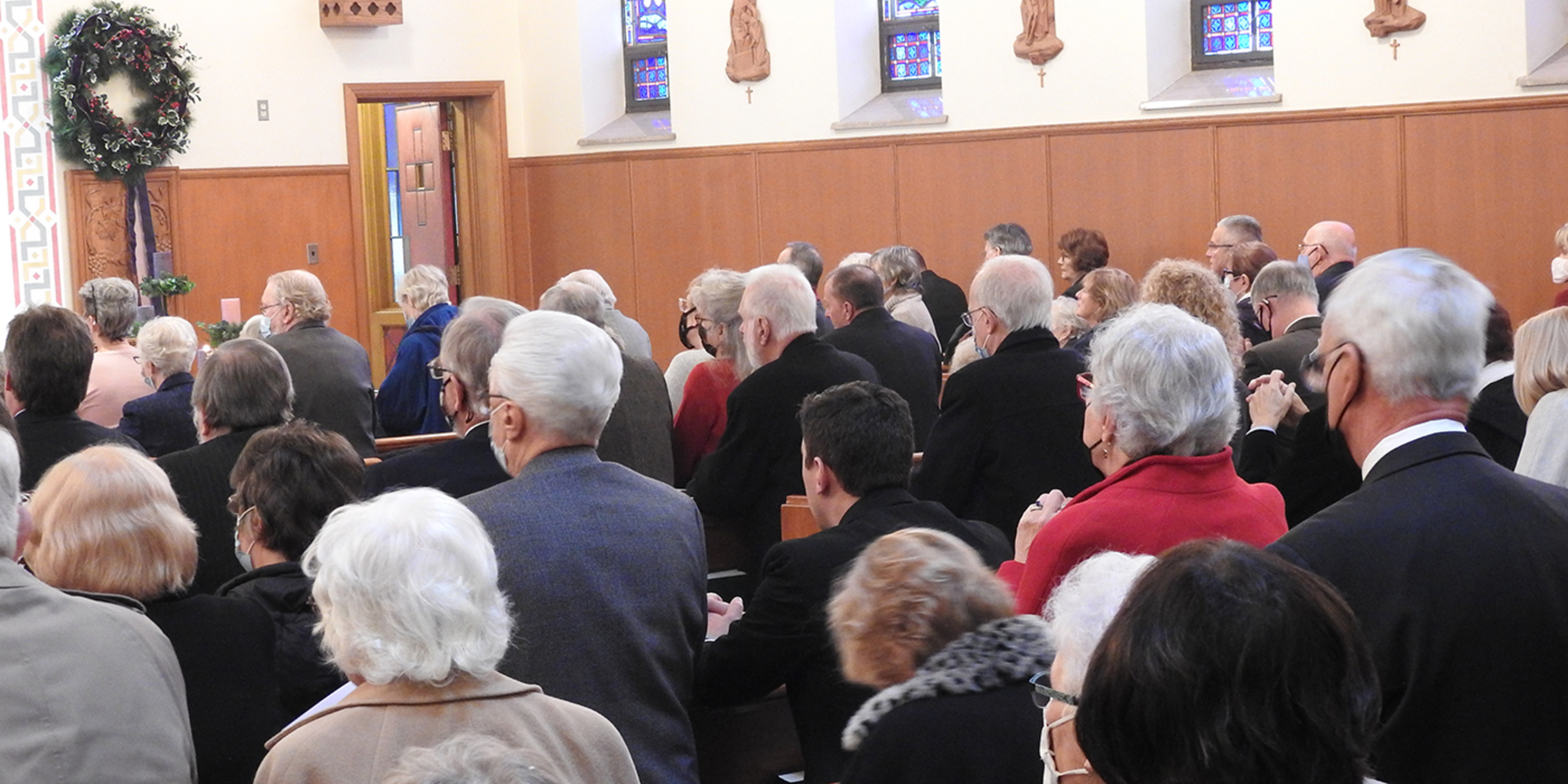 During Mass in Sacred Heart Chapel at the Center for Pastoral Leadership, the bishop said the word Eucharist means thanksgiving. “So I am celebrating this Mass in thanksgiving for all of you. You are generous to the diocese and especially annual Catholic Charities Appeal. After this Mass, we will have lunch and honor Sister Rita Mary’s work at Grafton Prison and in other ways. Sister, you inspire all of us to give more, be better and love as God has loved us,” he said.