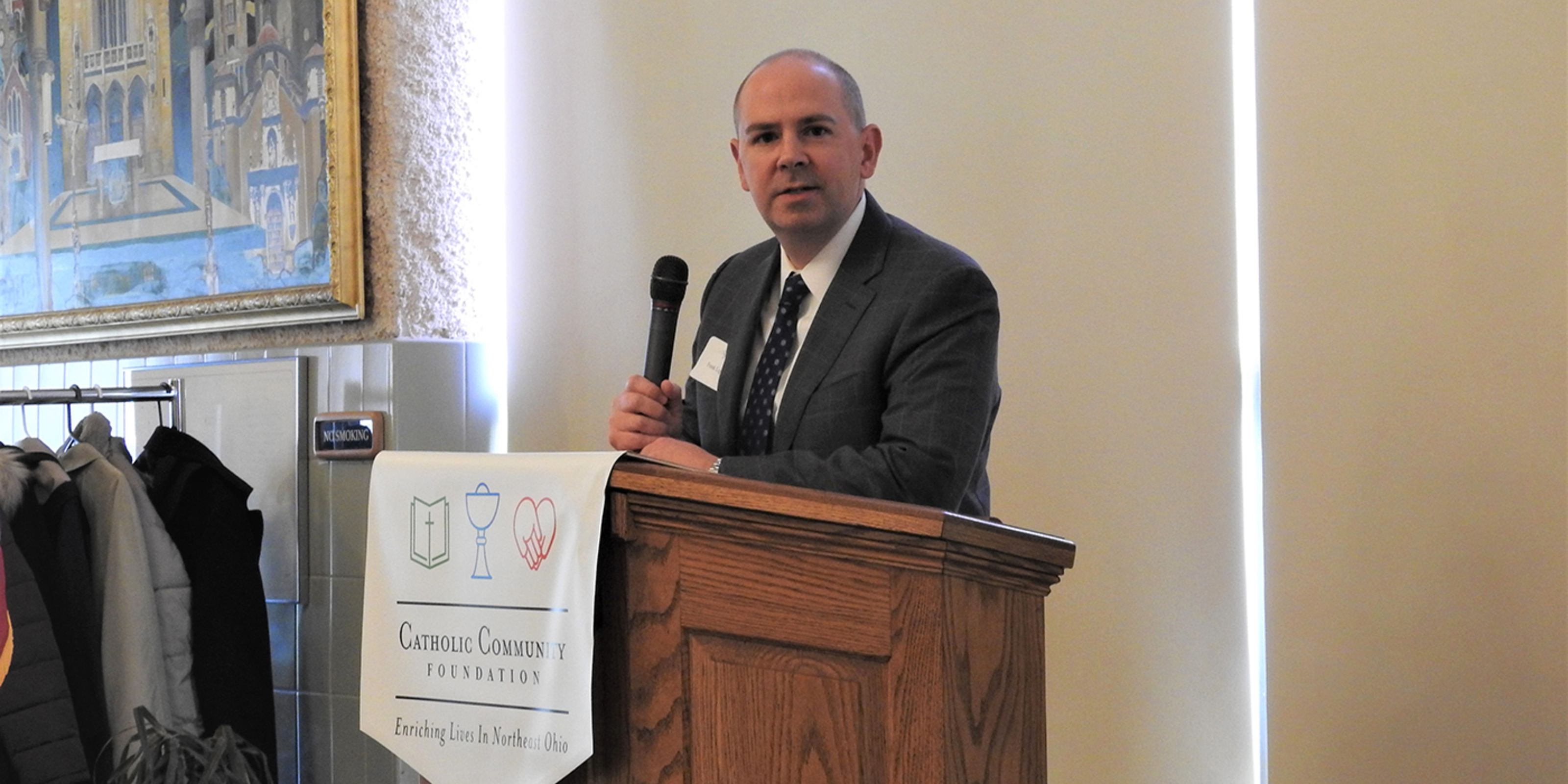 Frank Legan, chair, Catholic Charities board of directors, welcomed the group before lunch and Auxiliary Bishop emeritus Roger Gries offered the invocation.