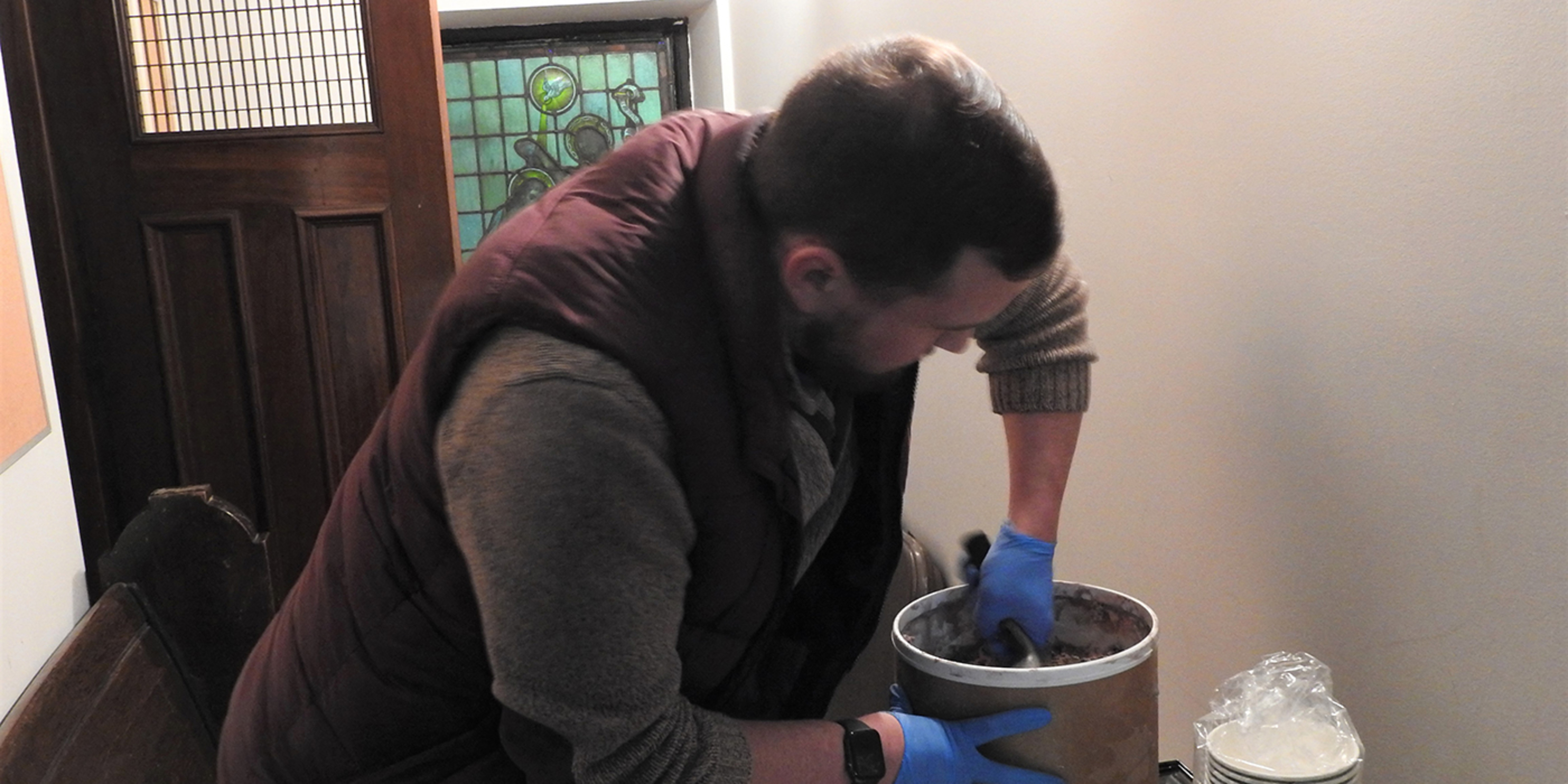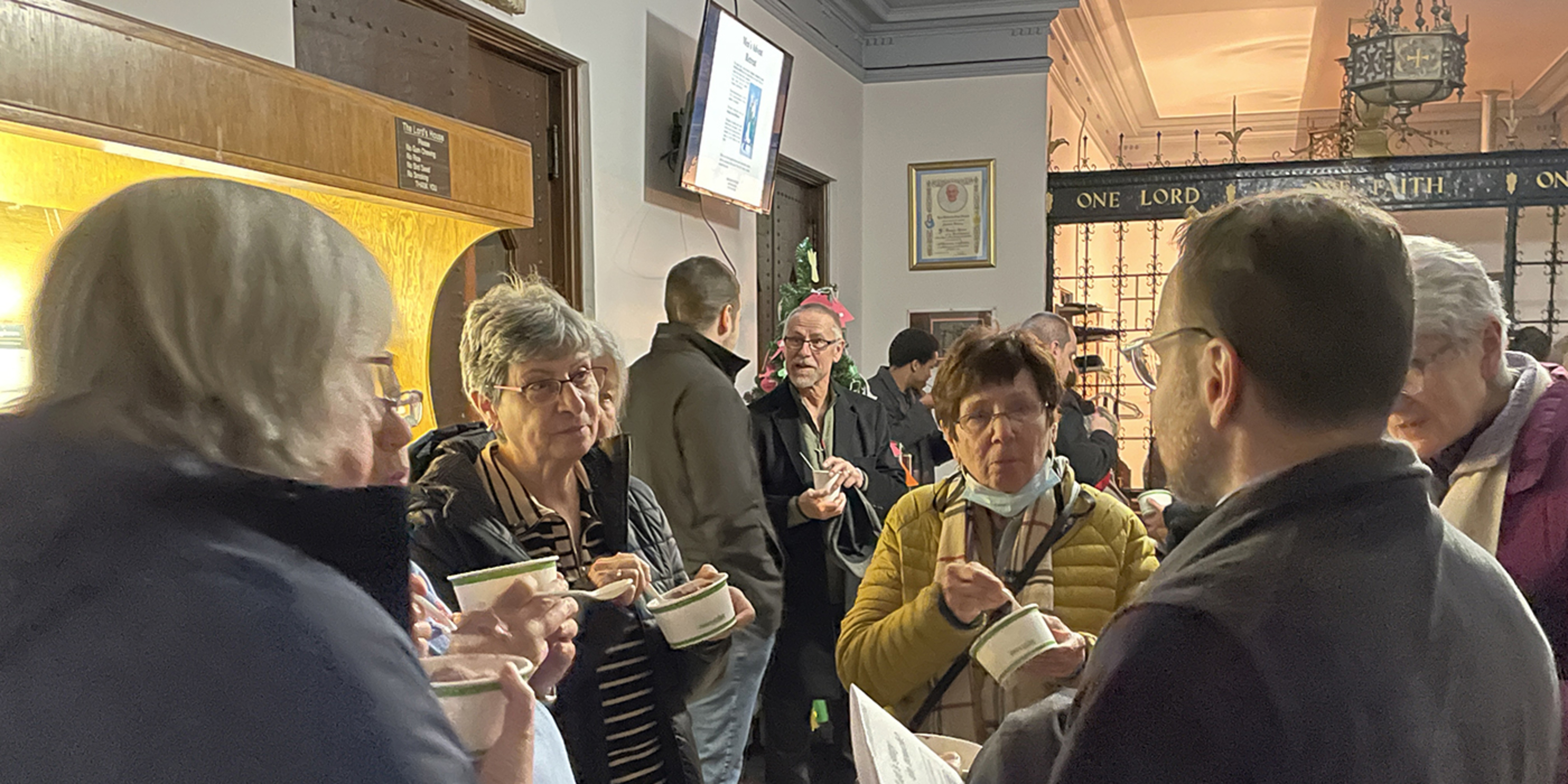 During the ice cream social, parishioners and other attendees mingled, getting acquainted and enjoying the ice cream.