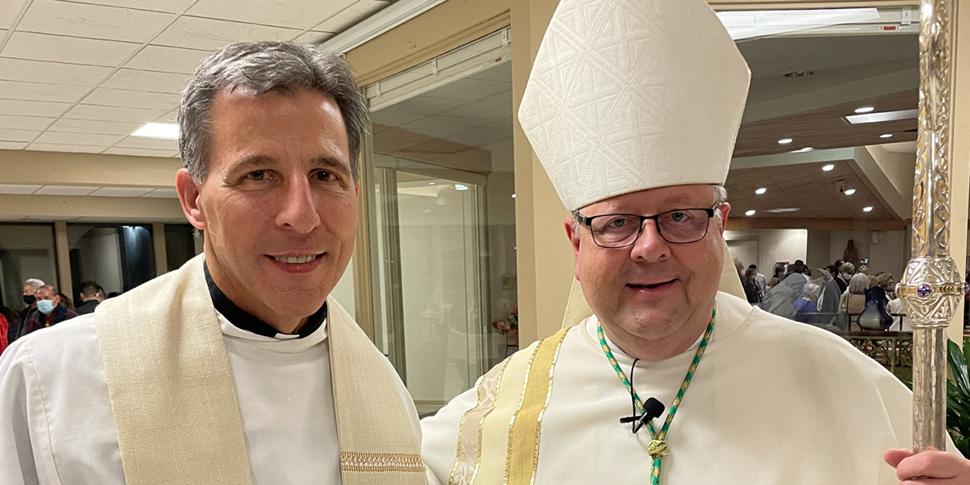 Father Thaden welcomed the bishop to Sacred Heart Chapel before Mass.