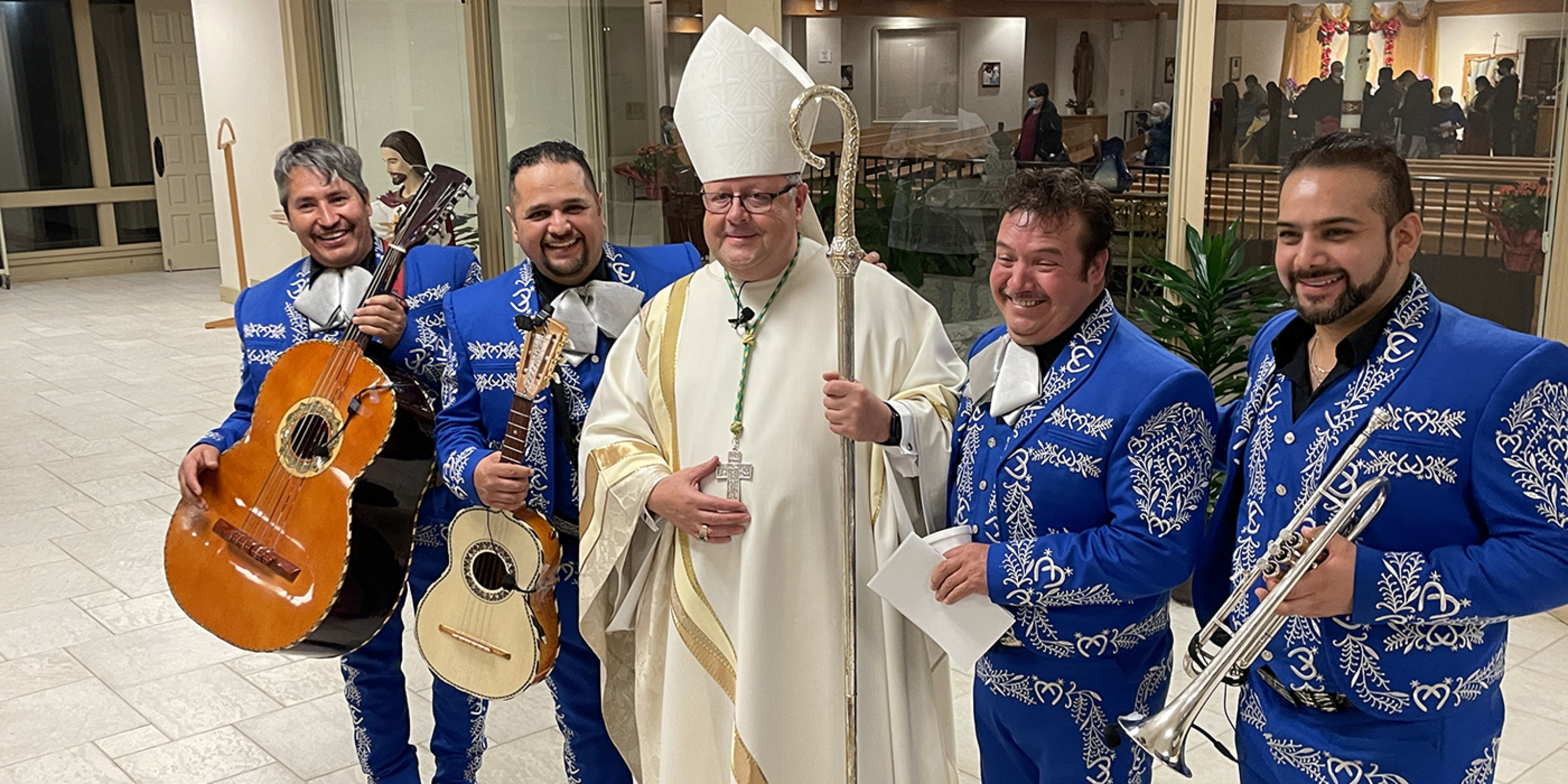 After Mass, the bishop mingled with parishioners and enjoyed a Mexican meal and more music by the mariachi band.