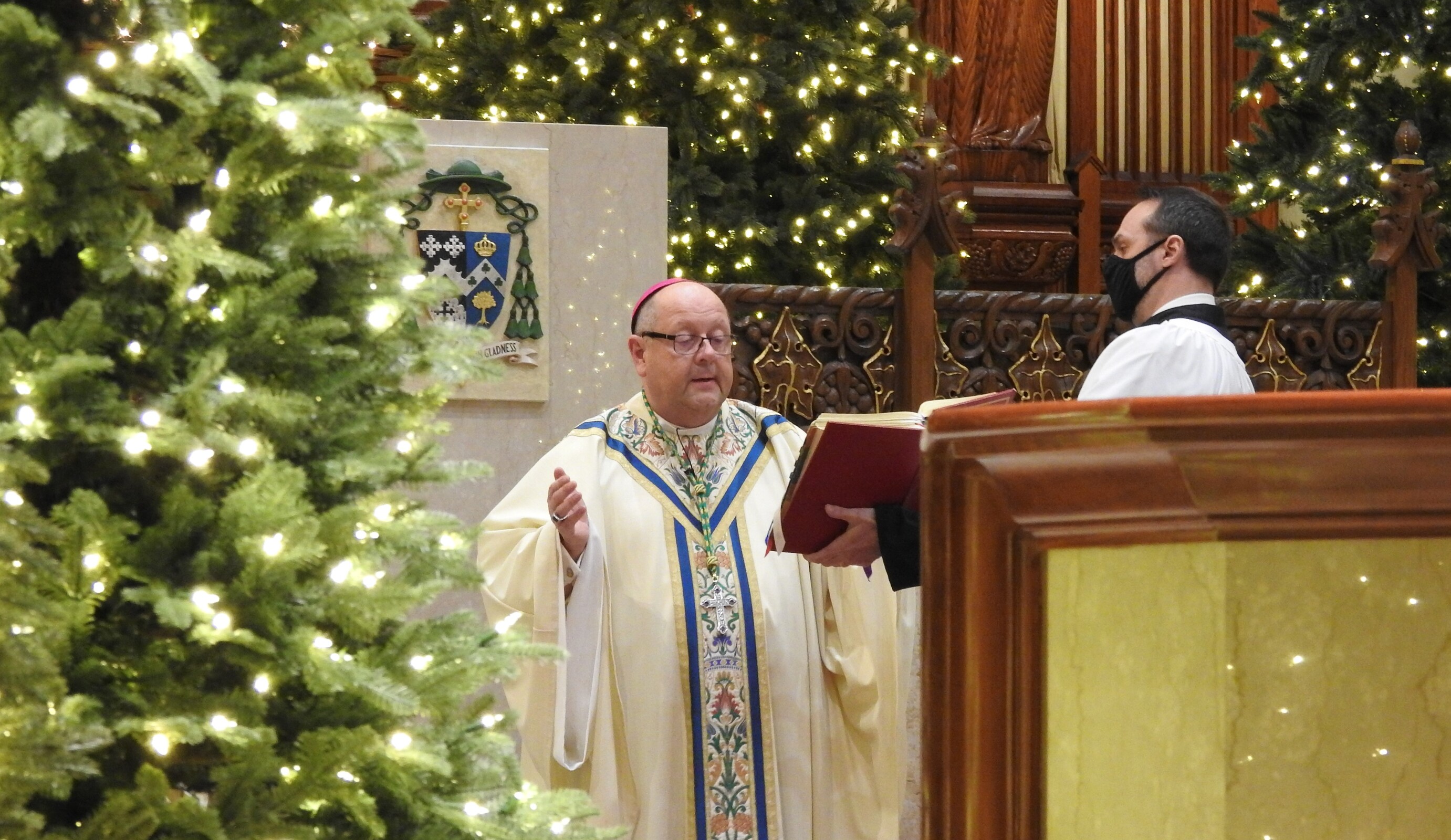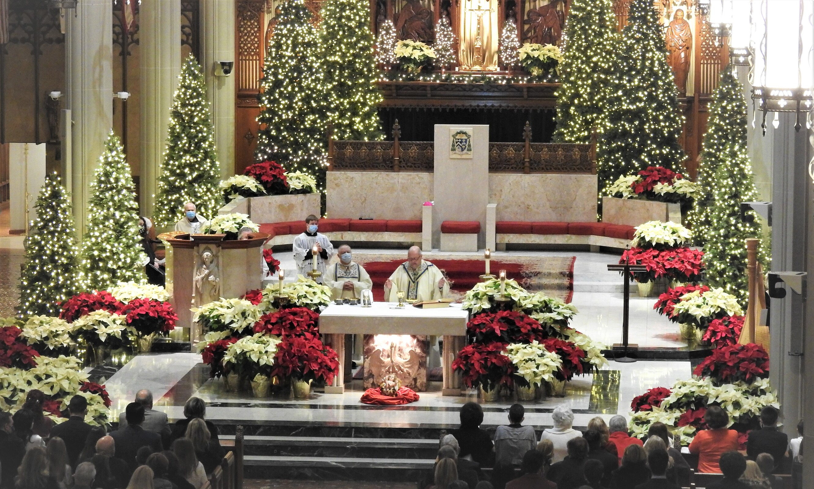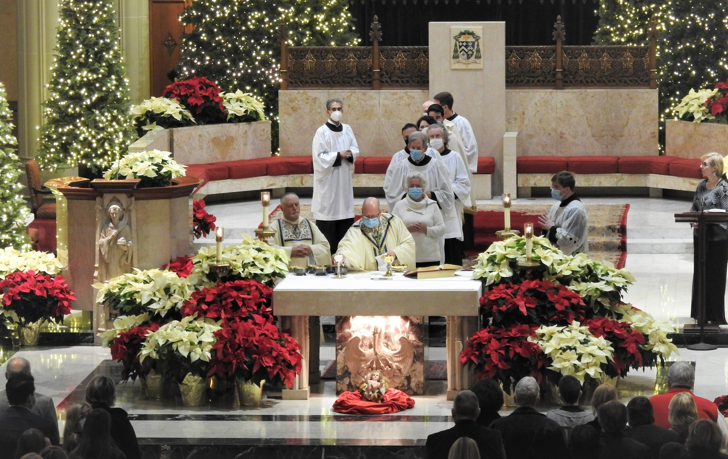 He told those gathered in the Cathedral of St. John the Evangelist that the birth of Jesus is “the light in our darkness, the hope for our future, the peace in our world and the child who takes our minds off our fears.” When we peer into Christ’s crib, we can see the face of God’s love shining on us, he said.