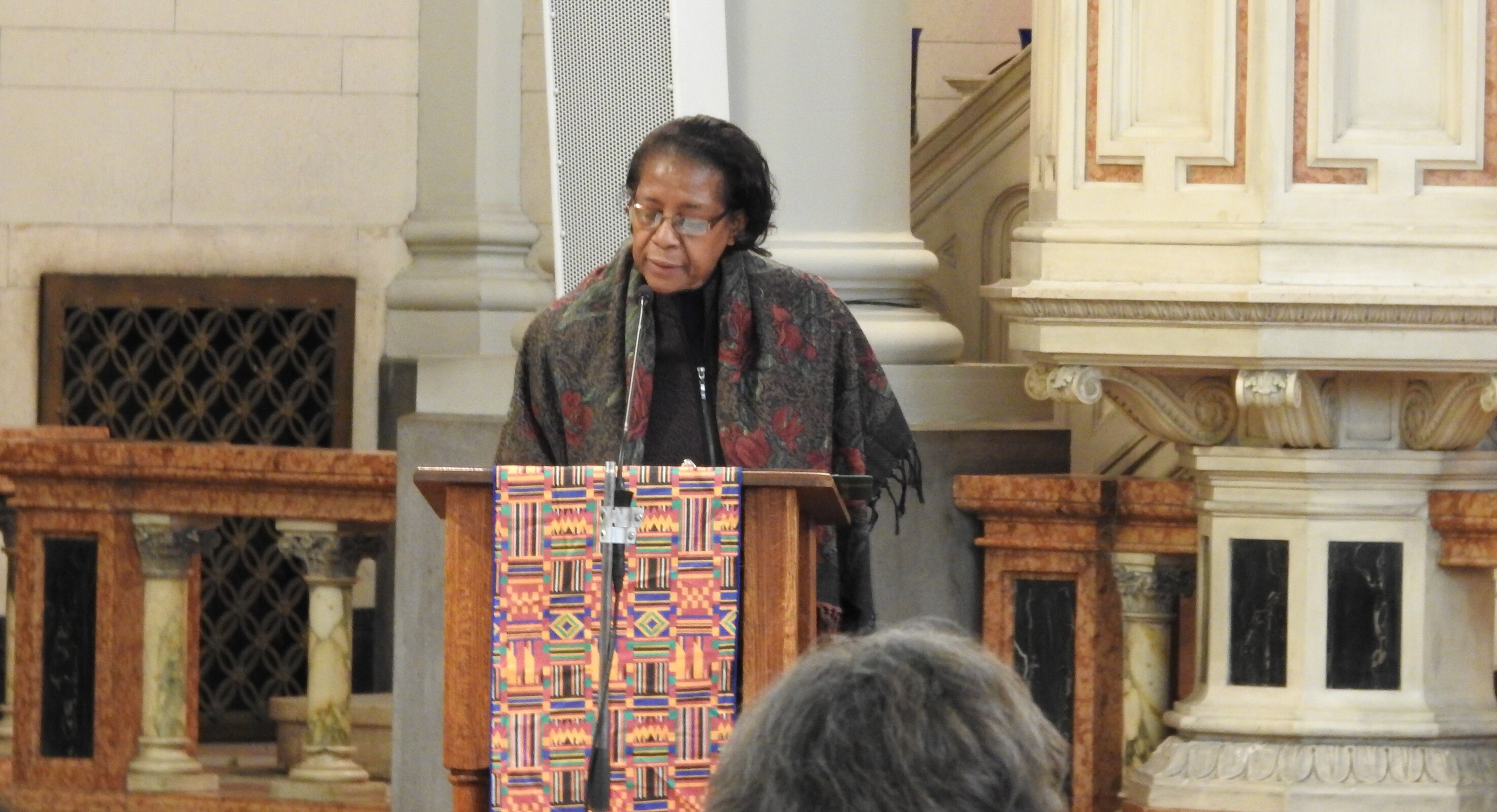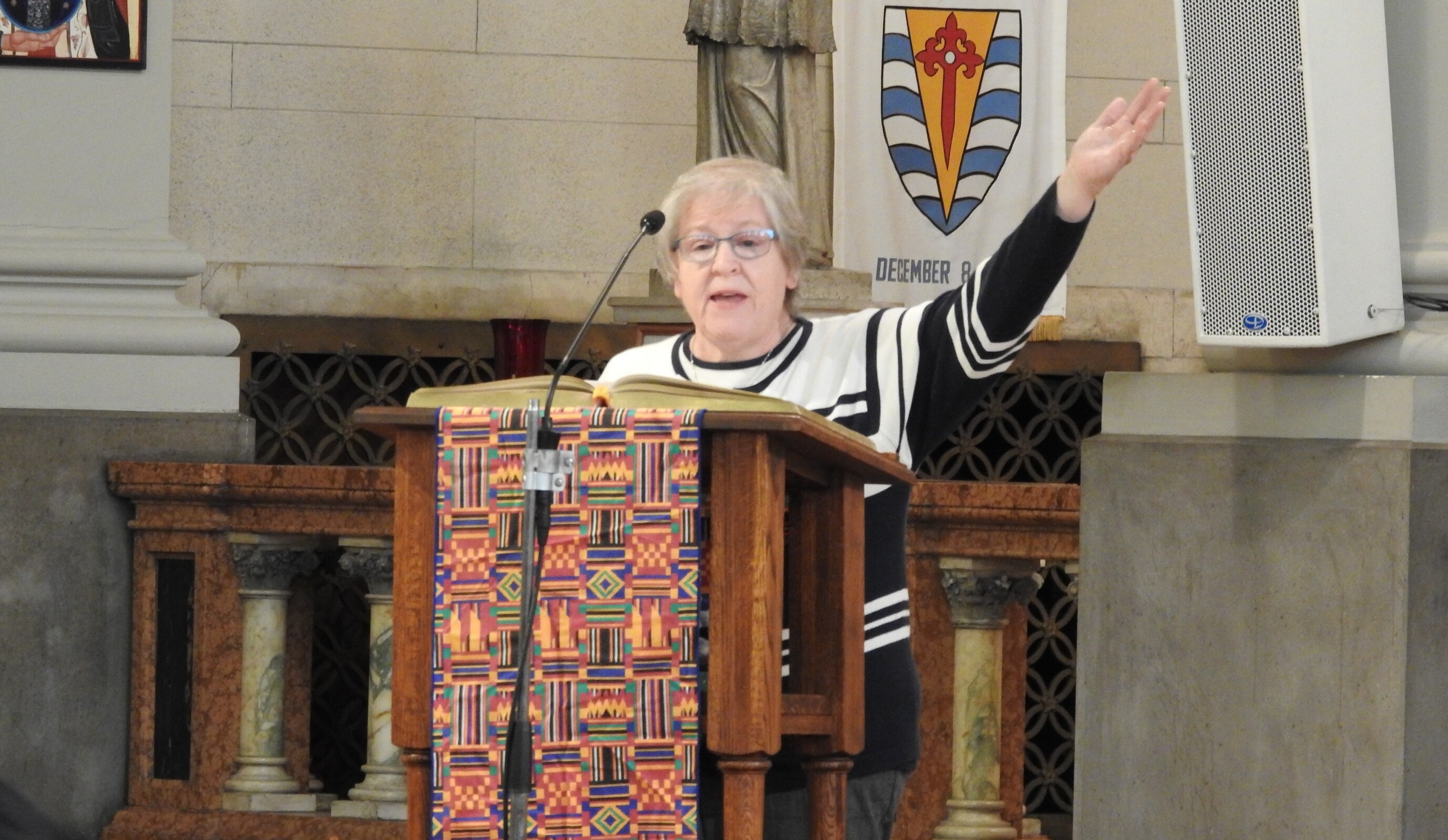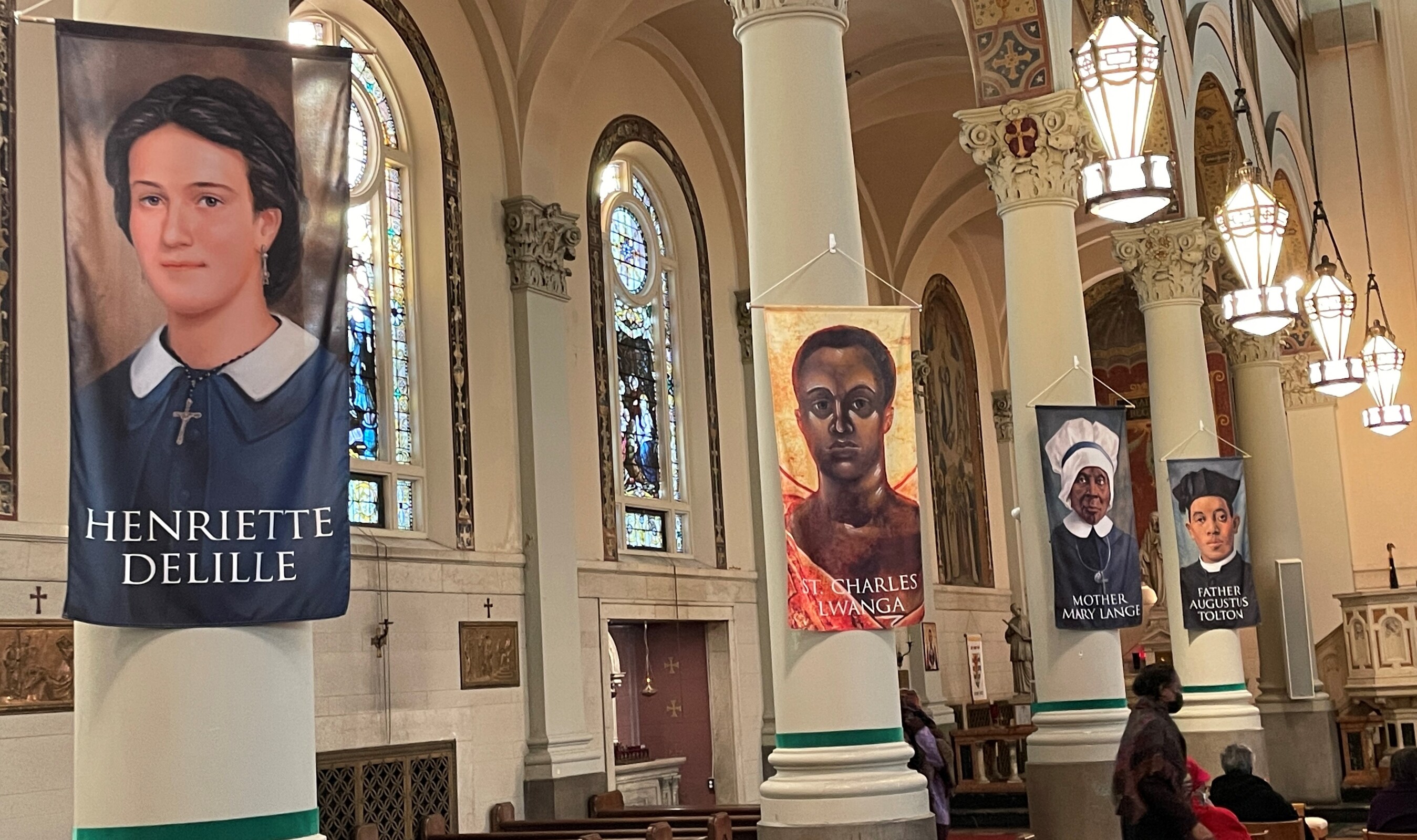 After Mass, two parishioners shared the stories of two of the people featured in the banners hanging in the church. This week’s featured sainthood candidates were Sister Thea Bowman and Blessed Pierre Toussaint.