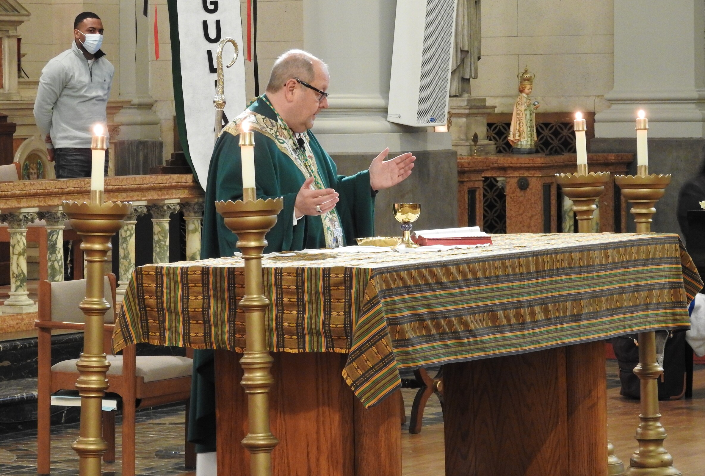 Paul reminds us of the core that we need to know: Jesus died for our sins, he was buried, he rose on the third day, appeared to the disciples and then to 500, and now he has appeared to us. His presence is in every Eucharist we celebrate. We hear his voice in every Scripture we read and we see his fingerprints in every act of love a person shows toward another, the bishop said. This faith, the center of our faith, gives us the energy to listen to Jesus, he added. “He died for us. He lives for us. He speaks to us. He forgives us. He summons us. He provides for us. He loves us.”