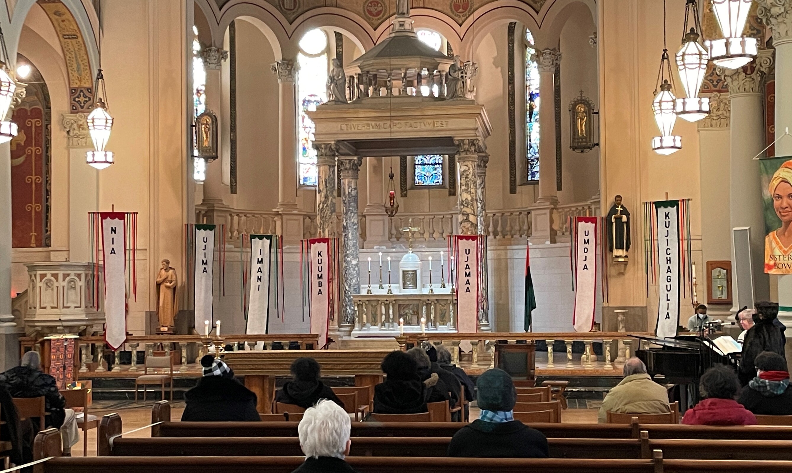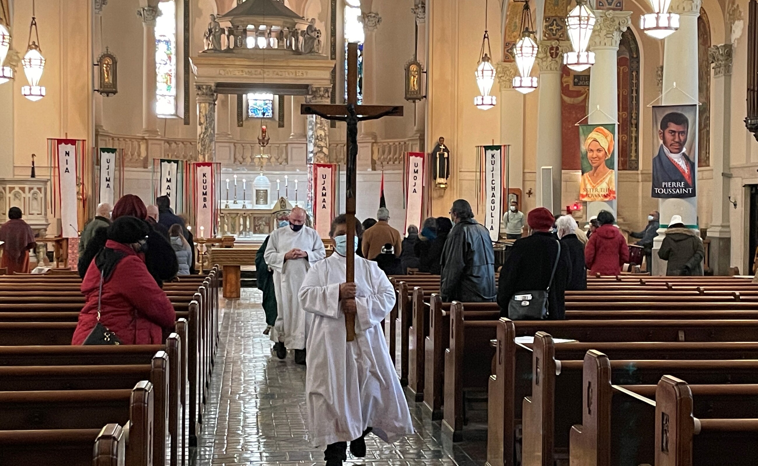 “I am also honored to be here during Black History Month and to experience firsthand the rich culture that you bring to the body of Christ,” Bishop Malesic said. Referring to the banners hanging in the church and displaying heaven’s faces of color, he said, “May we be inspired to follow the call of Jesus without fear – and to make him known,” something he said the parish evangelization committee is working toward. The banners honor people who answered Jesus’ call to follow him without fear, he added.
