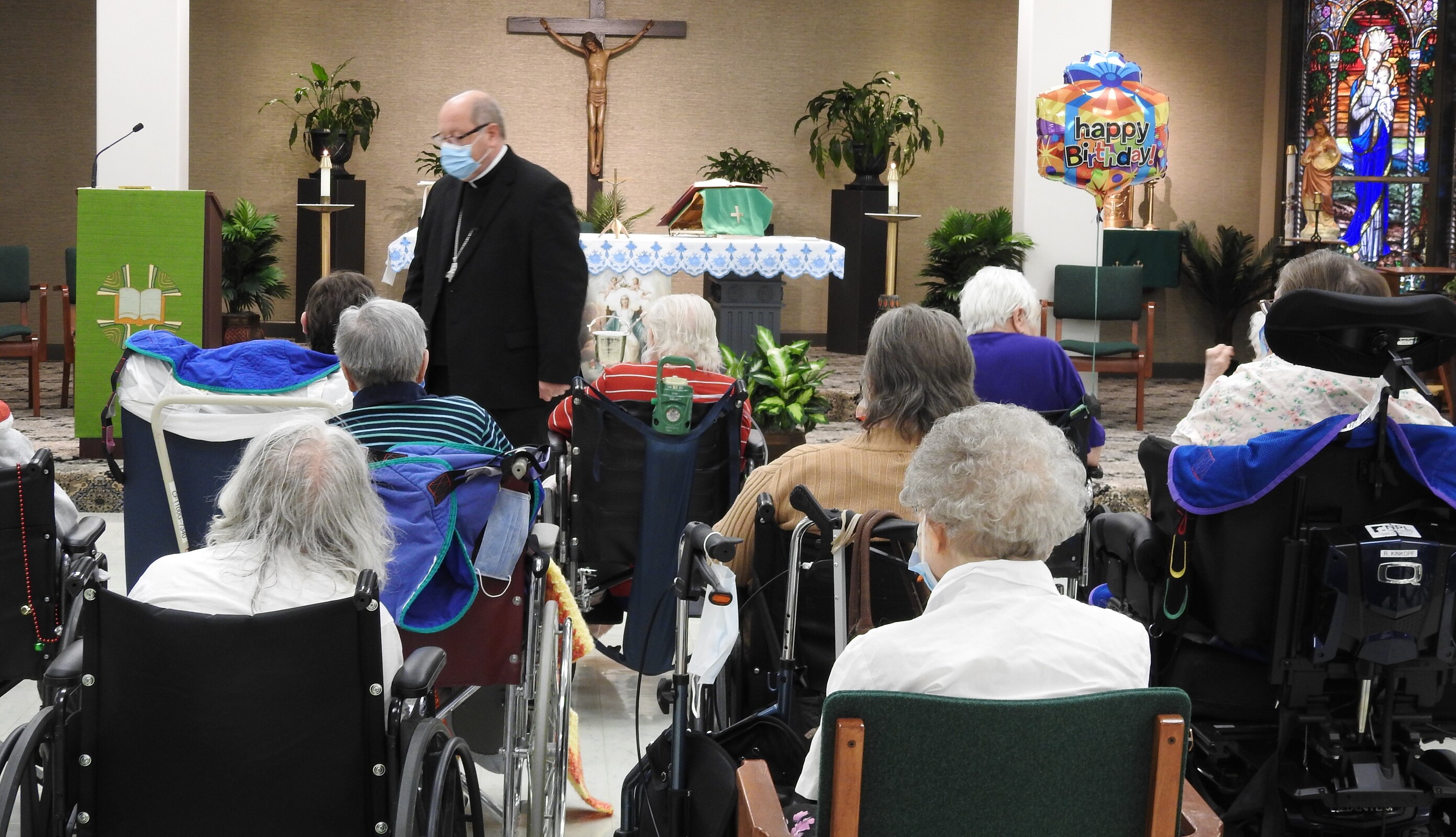 “You are so special to me and to those you love,” Bishop Edward Malesic told a group of St. Augustine Manor residents during a visit to the facility on Feb 8. They group had gathered in the chapel to pray the rosary. The Manor is part of St. Augustine Health Ministries, a Catholic Charities agency that provides home health care, assisted living, skilled nursing and rehabilitation, long-term care, hospice and more. (See photo gallery above.)