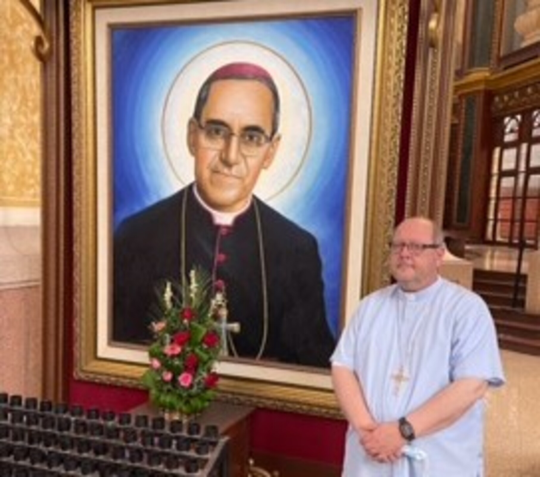 He spent some time in reflection at Divina Providencia Chapel, where St. Oscar Romero was killed while celebrating Mass on March 24, 1980, during the civil war in El Salvador.