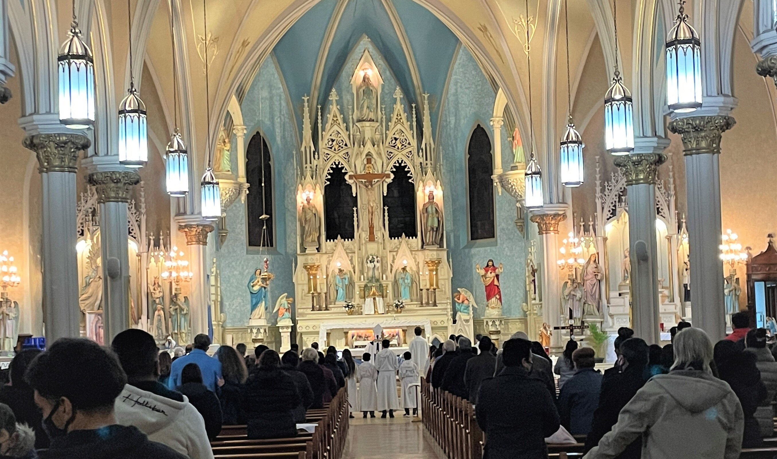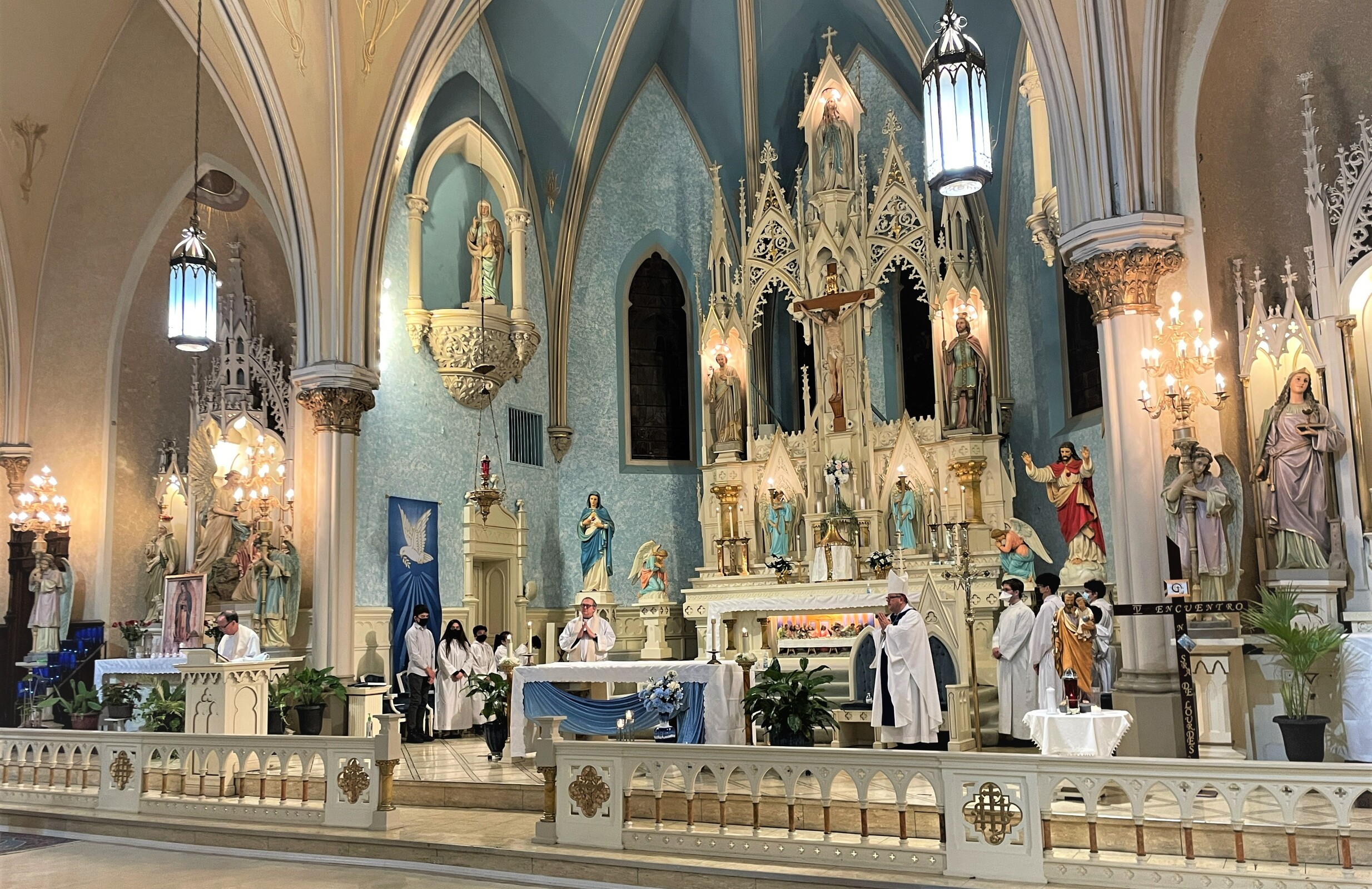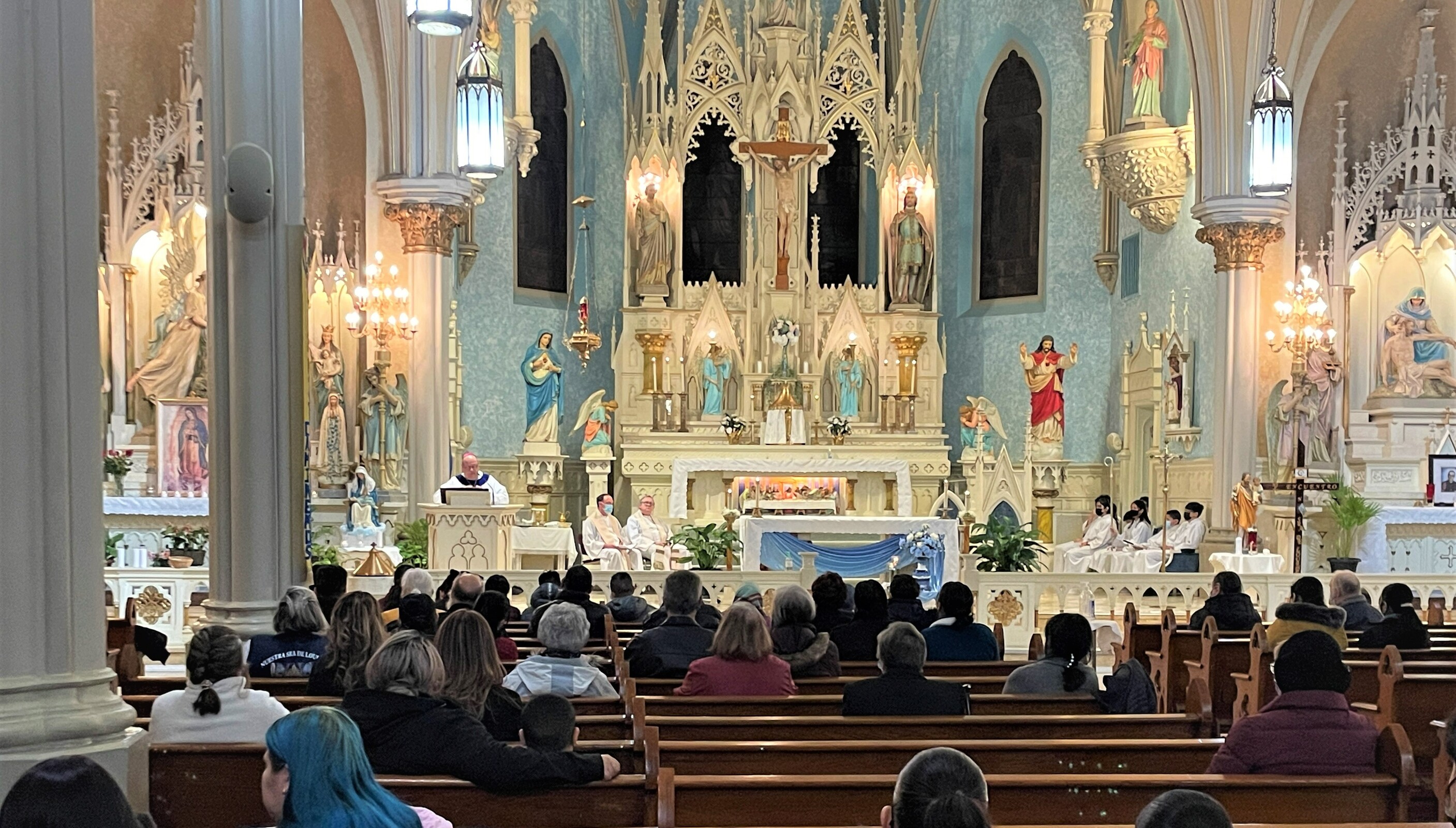The bilingual Mass in Spanish and English attracted quite a few people. Father Joseph Callahan, pastor, welcomed the bishop before Mass.