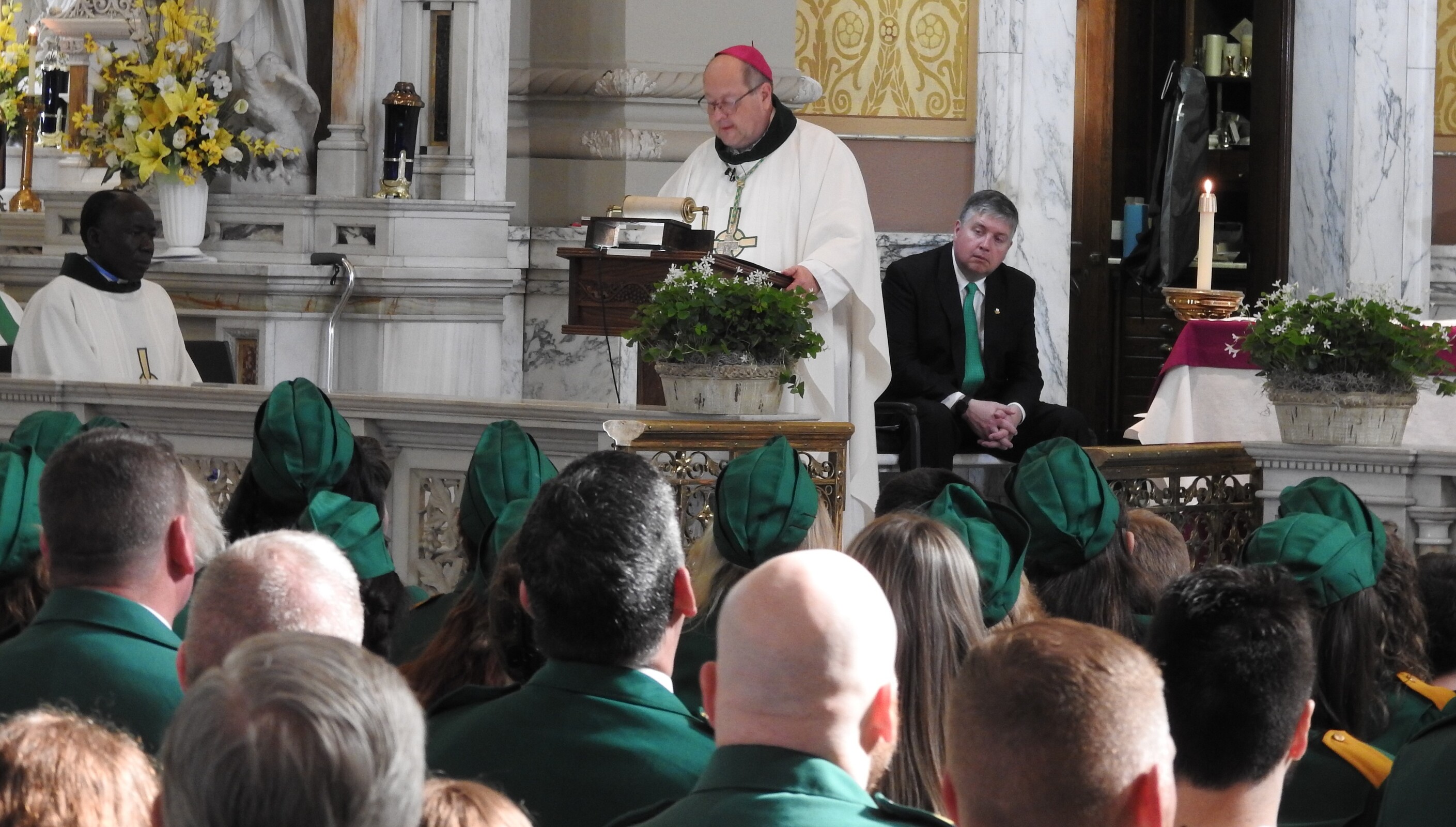 Patrick returned to Ireland – the land where he had been a slave – and became one of the world’s greatest evangelizers, the bishop said. “His desire to go back to Ireland and the willingness to suffer opposition, threats of violence and even jealousy from other bishops resulted in forming the Irish faith in Christ that is so evident here in this church today. With God’s help, he was able to convert the pagans from their Celtic gods to faith in Jesus Christ by his solid preaching and his virtuous way of life,” he added.