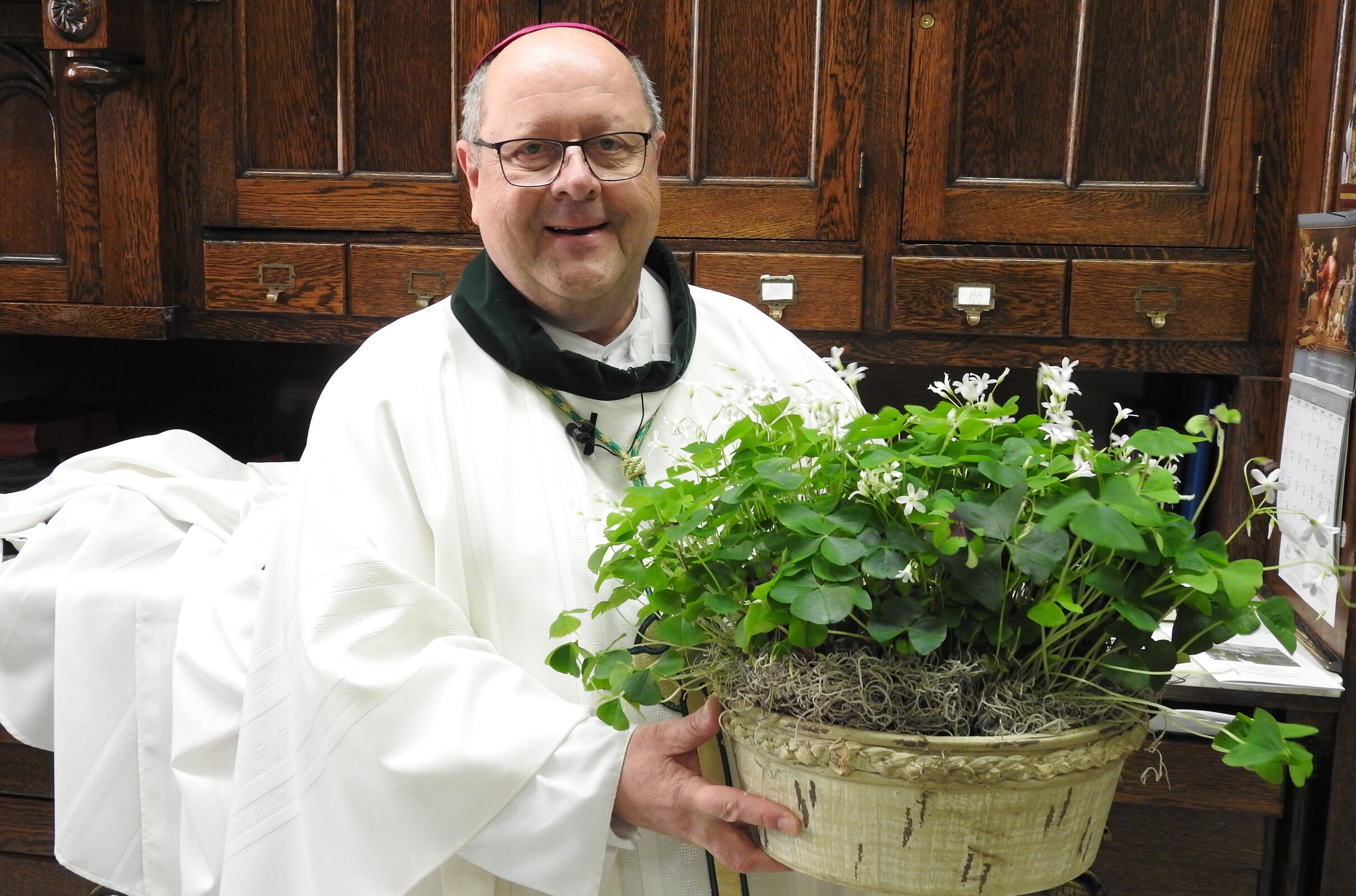 At the beginning of Mass, he blessed the two traditional, large shamrock plants – one of which was presented to him – and the congregation. In his homily, the bishop noted that St. Colman’s has opened its doors to the large Irish community in Northeast Ohio for many years. “And more than that, you have opened your doors to those who love the Irish,” he said.