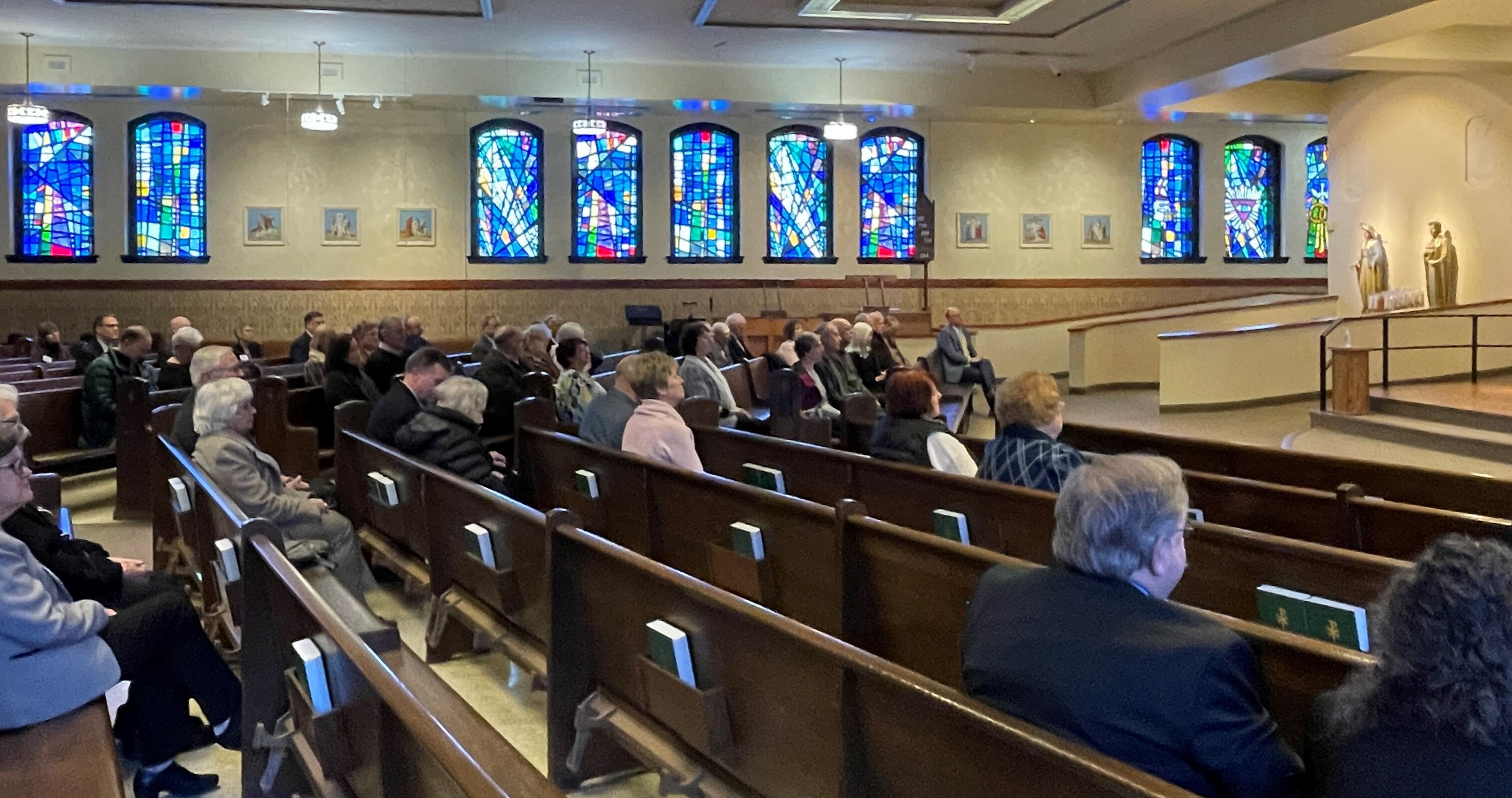 Father Warner, Blessed Trinity’s founding pastor, said he empowered parishioners to renovate the sanctuary to make it more functional. “God blessed our efforts,” he added. Also, in the hall are framed stained-glass windows and statues taken from the three parishes and repurposed to reflect their unity as the new parish, while honoring the history of each.