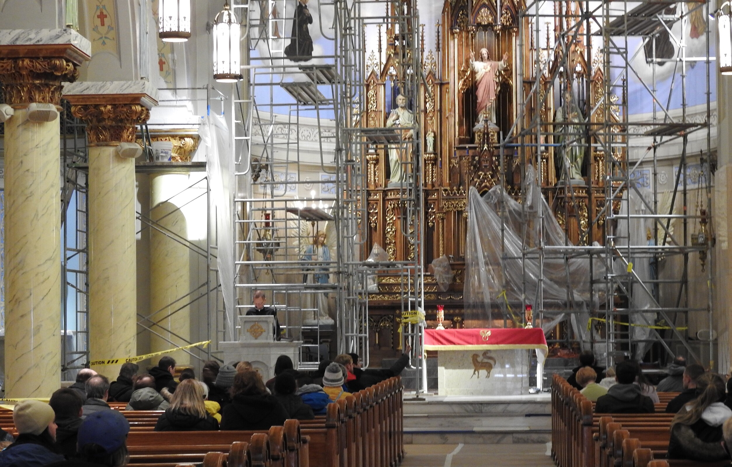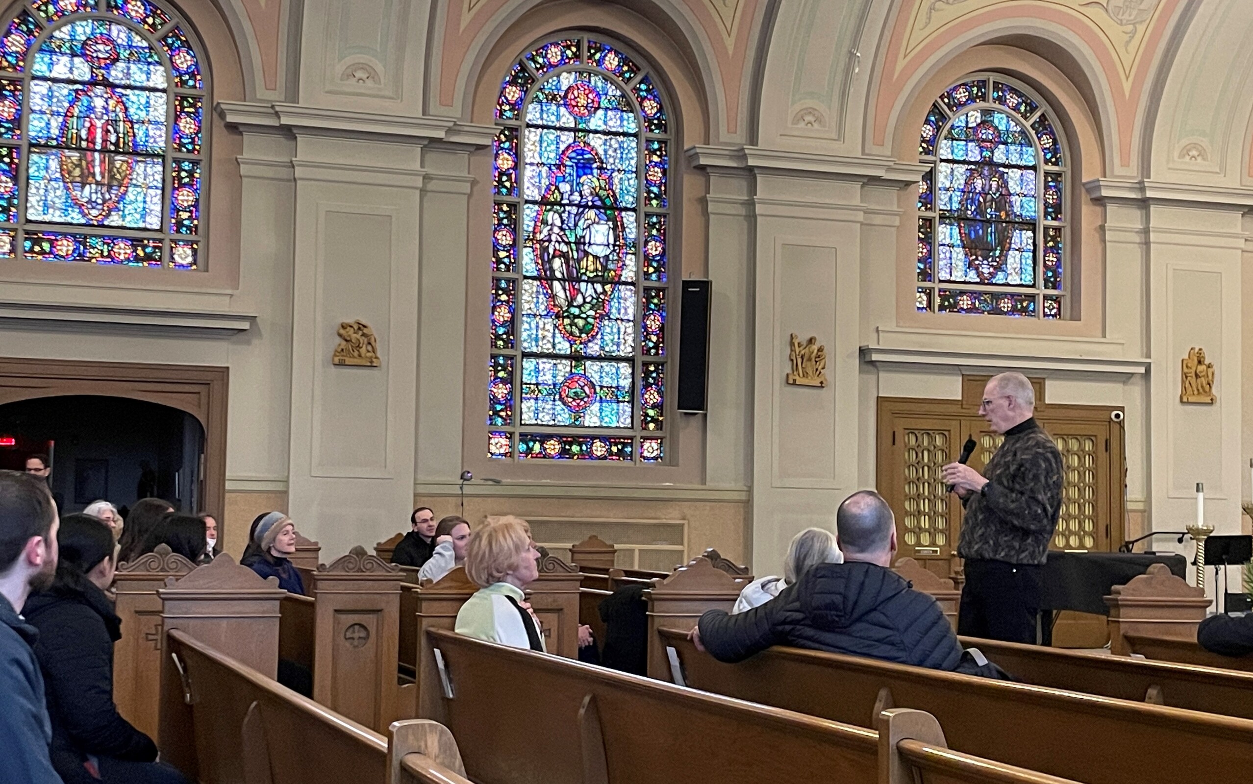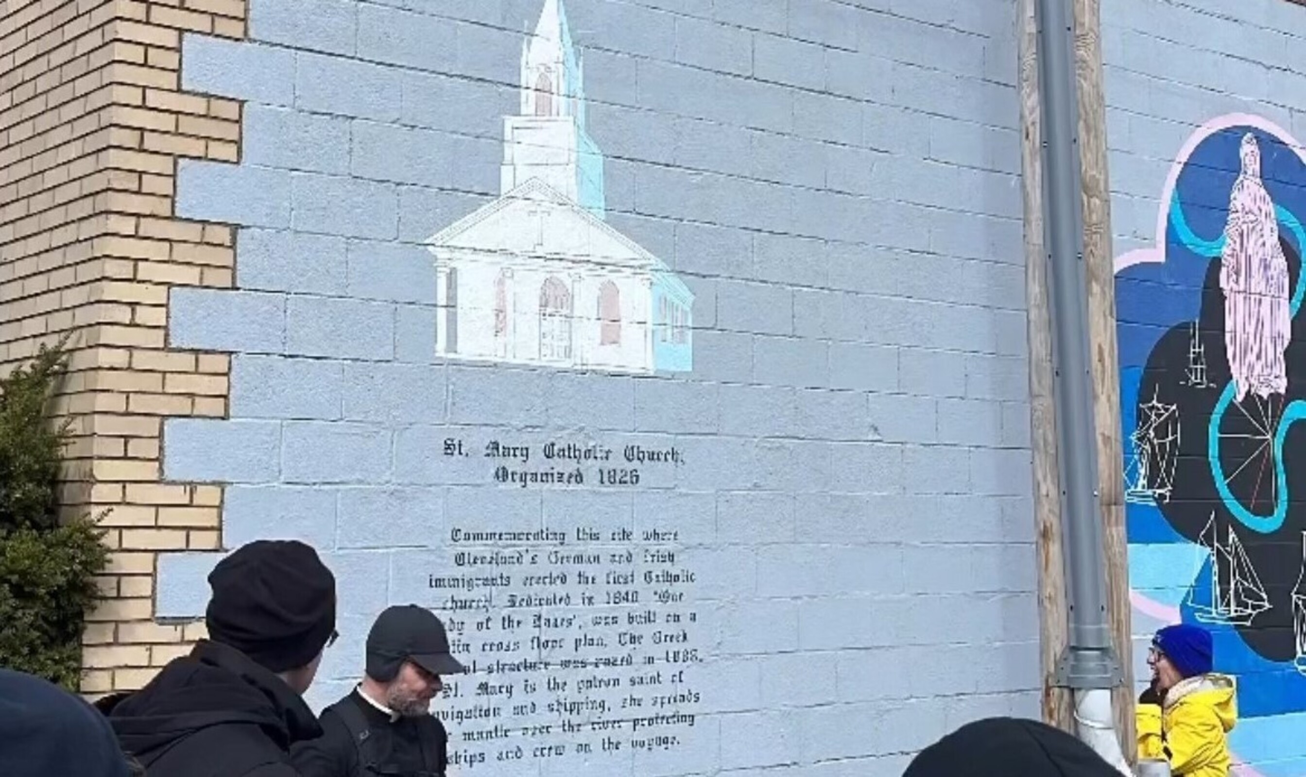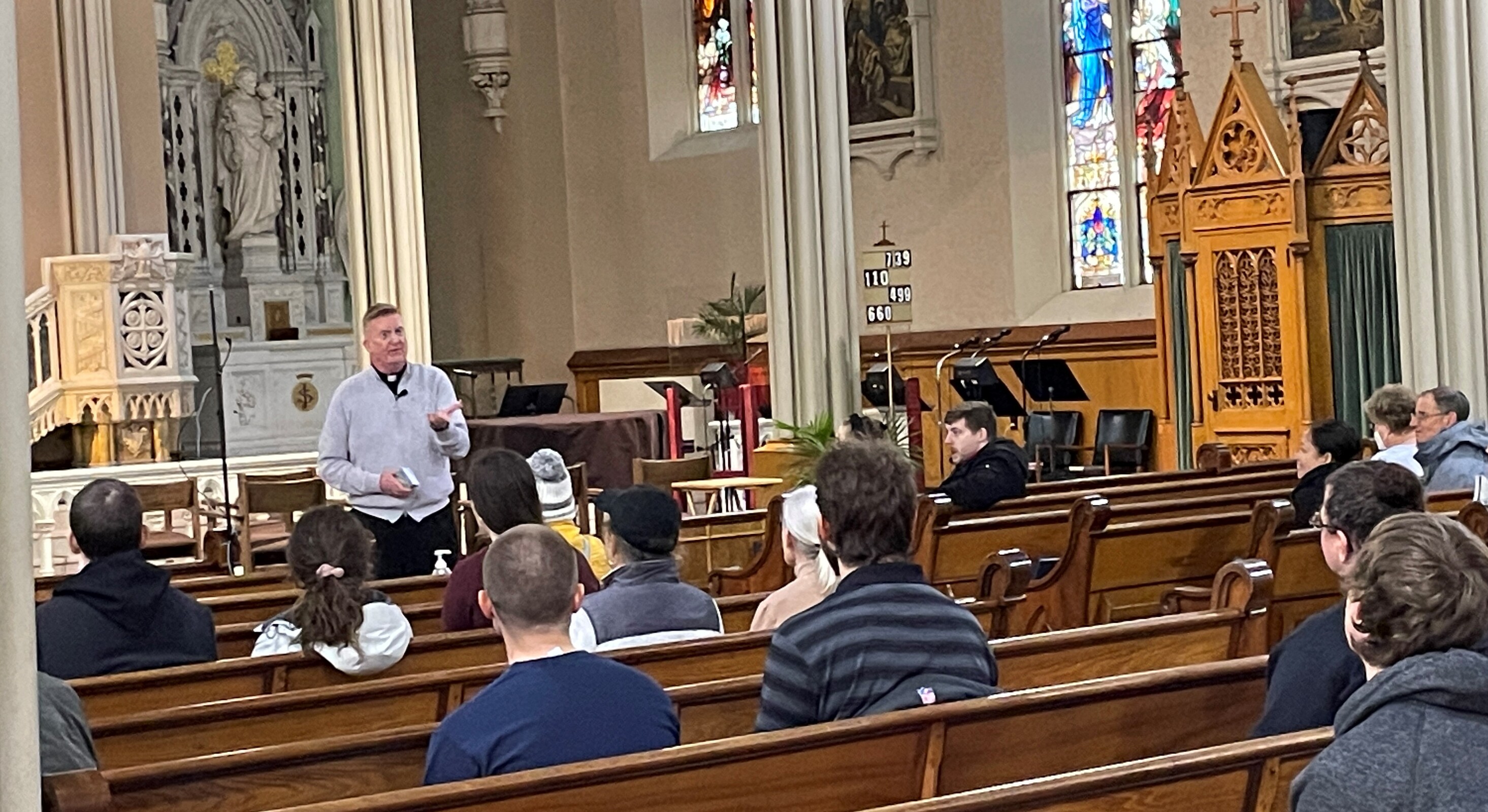 So, Father Bona mapped out six churches on Cleveland’s West Side that are within walking distance of the Cathedral of St. John the Evangelist. The cathedral was the starting and ending point for the pilgrimage. In addition to a meditation and short prayer time at each church, the pilgrims learned about the rich legacy of some of the diocesan parishes. Before leading the meditation, each pastor gave a brief history of his parish. They noted how the neighborhoods are changing, with gentrification taking place in many of the older areas of the West Side. As a result, there is a renewed opportunity for evangelization and parish growth.