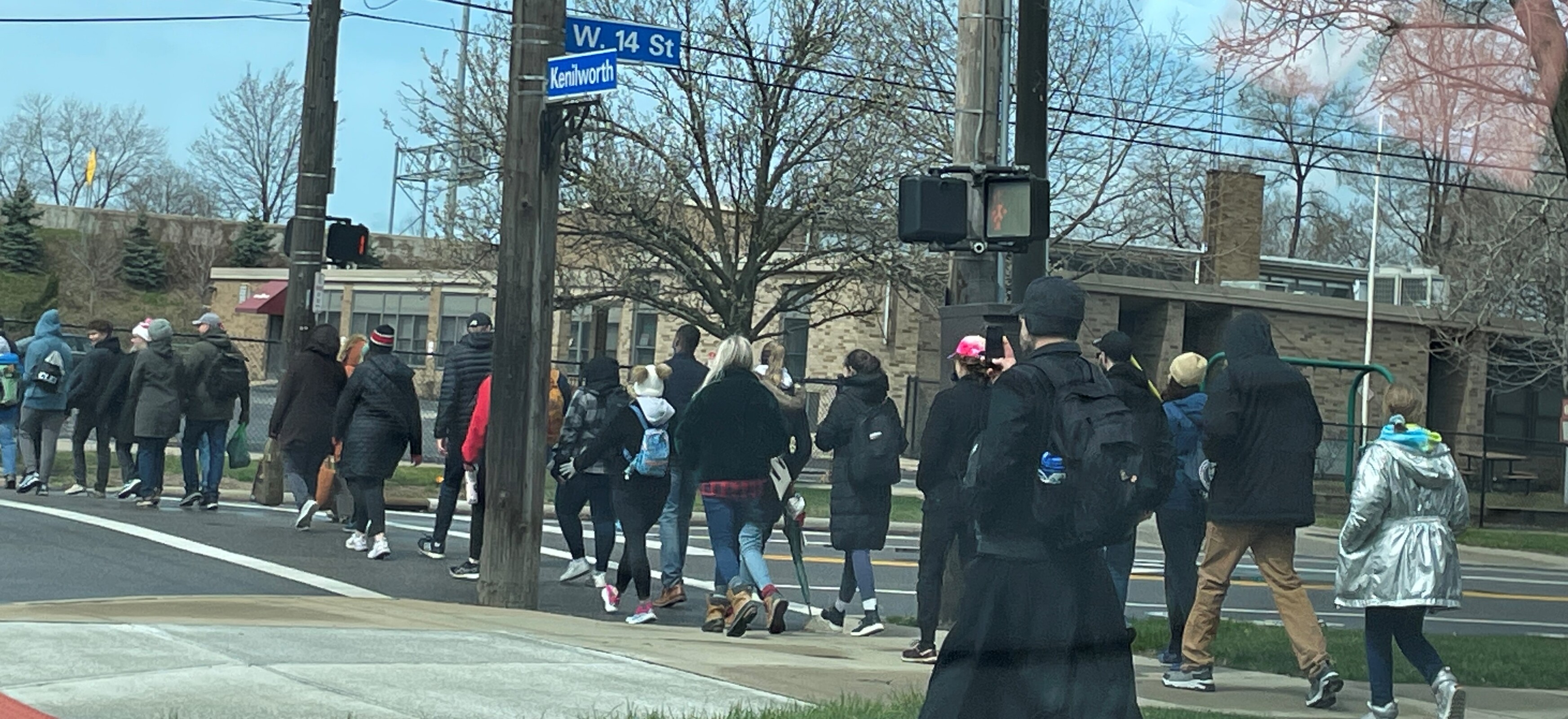 Most people walked the approximately seven-mile route. A police car accompanied them for safety.