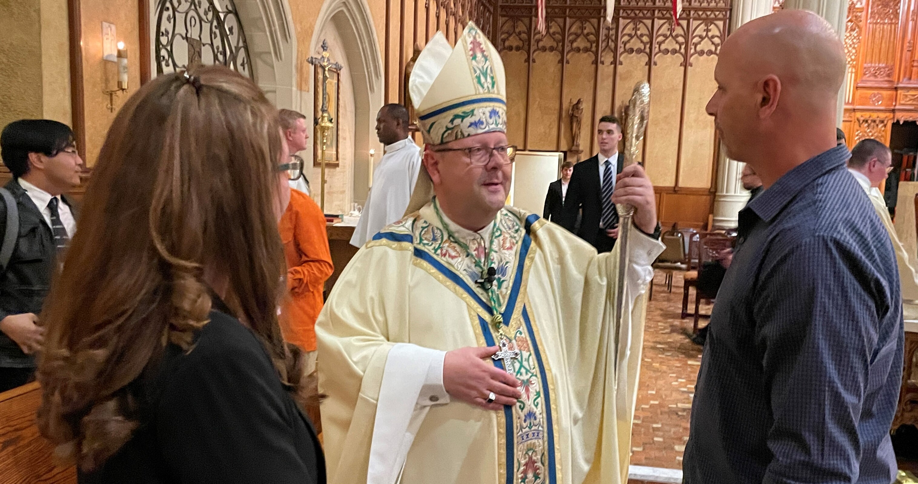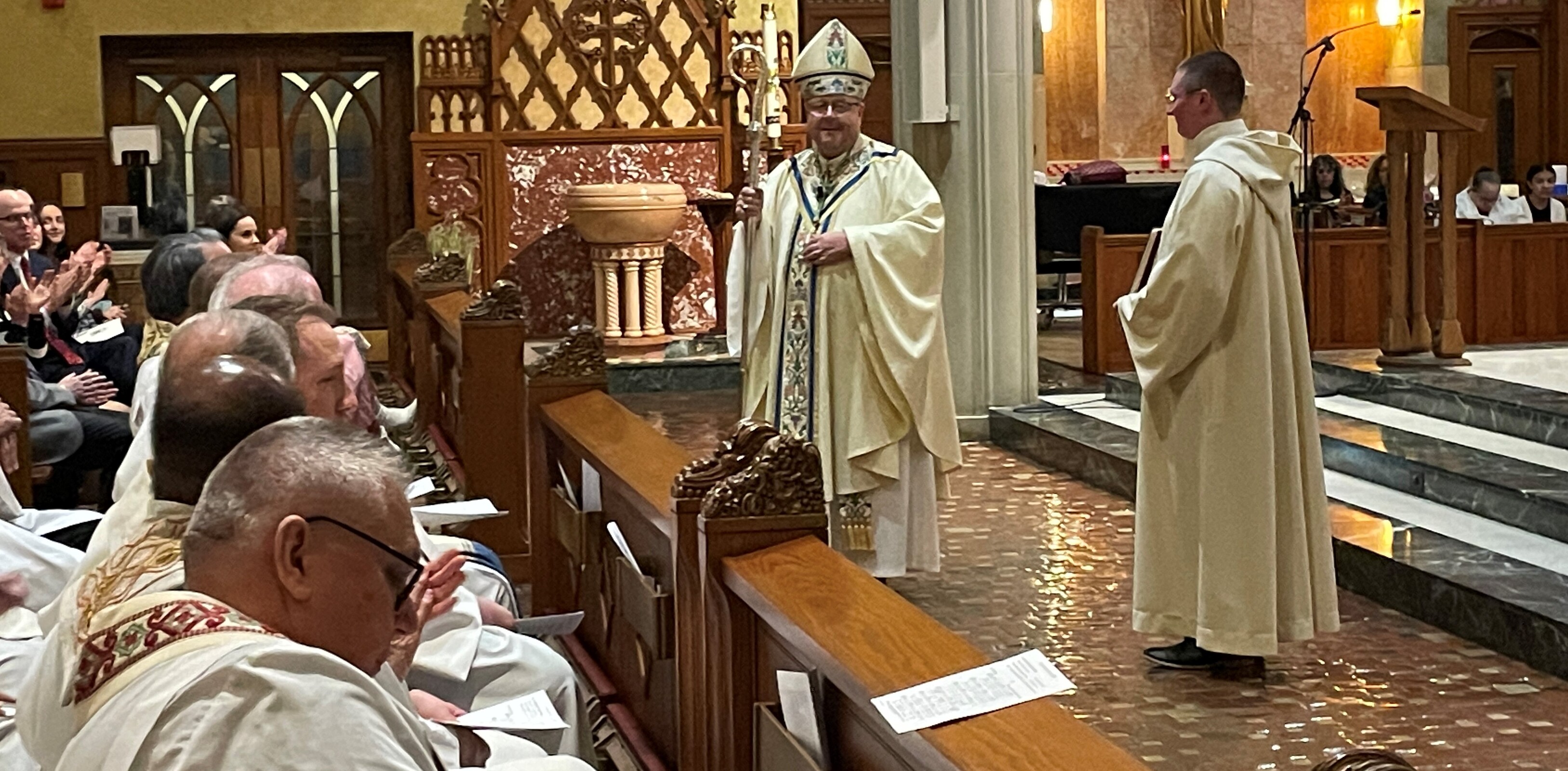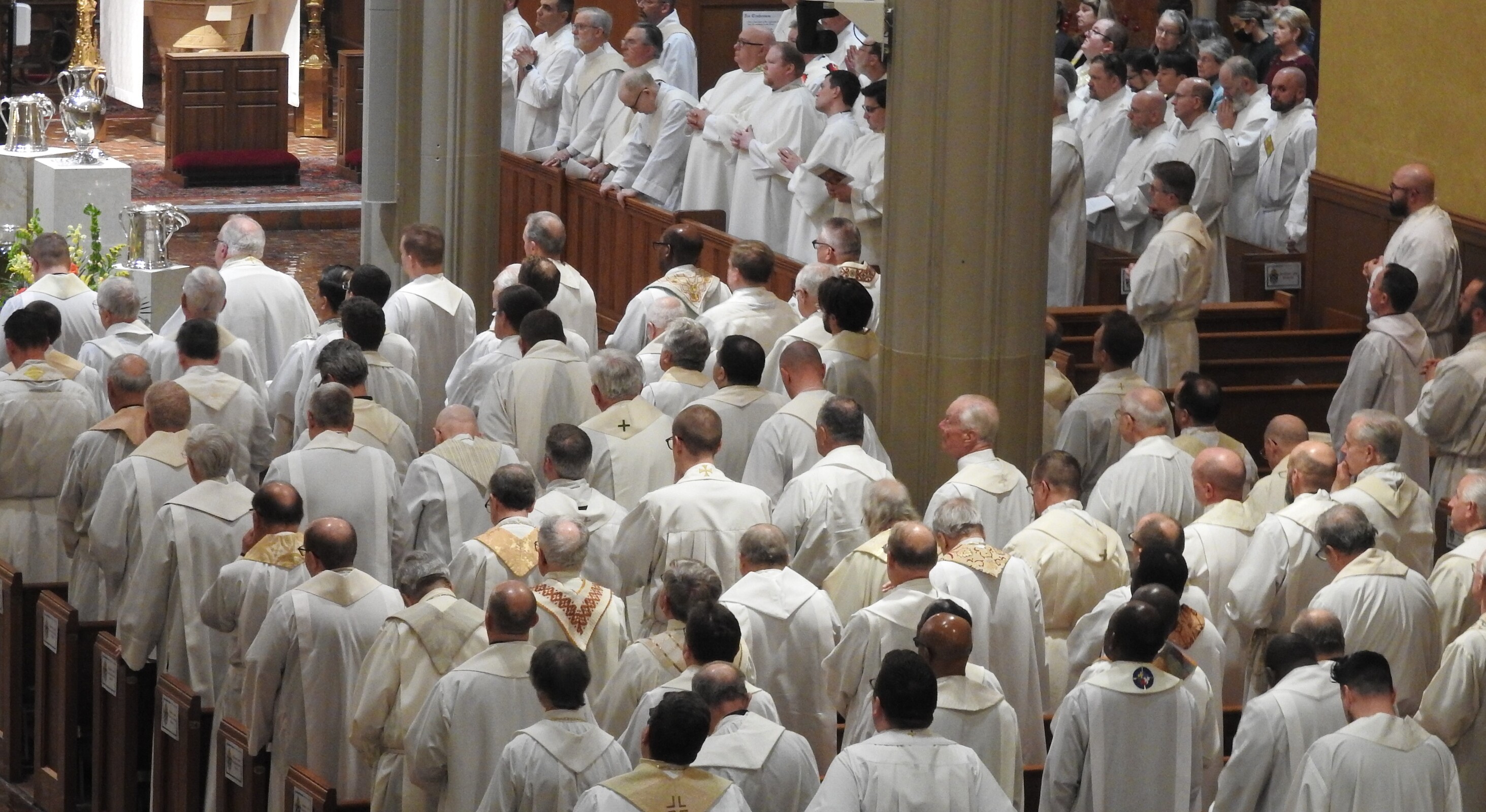 The Mass was attended by many priests and deacons of the Diocese of Cleveland. Concelebrants included Auxiliary Bishop emeritus Roger Gries, Bishop Martin Amos, retired bishop of Davenport, Iowa, and Abbot Gary Hoover, OSB. Prior to the Mass, the priests gathered for a speaker and fellowship before heading to the cathedral, where they renewed the priestly promises made at their ordination.