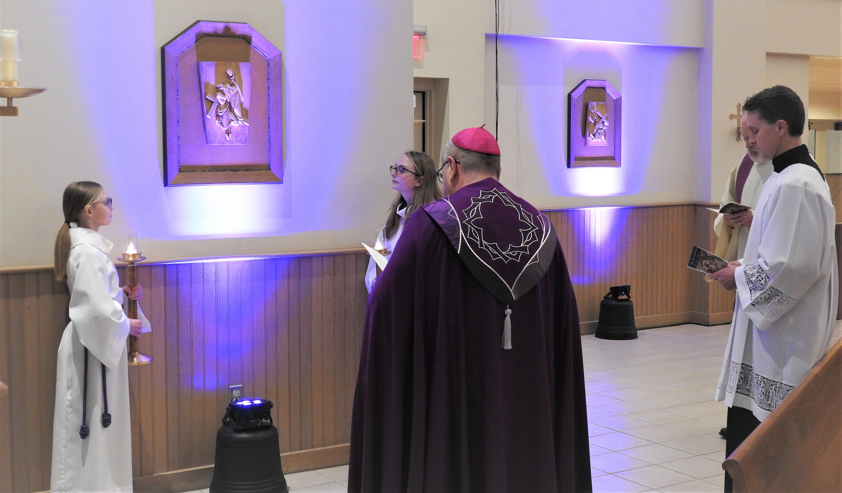“It has been an amazing experience here at St. Joseph’s,” the bishop said after concluding Stations of the Cross in the church. He explained that the Stations are a special Lenten devotion he has prayed since his teenage years, adding there is something about the retelling of Jesus’ Passion and death that touches him.