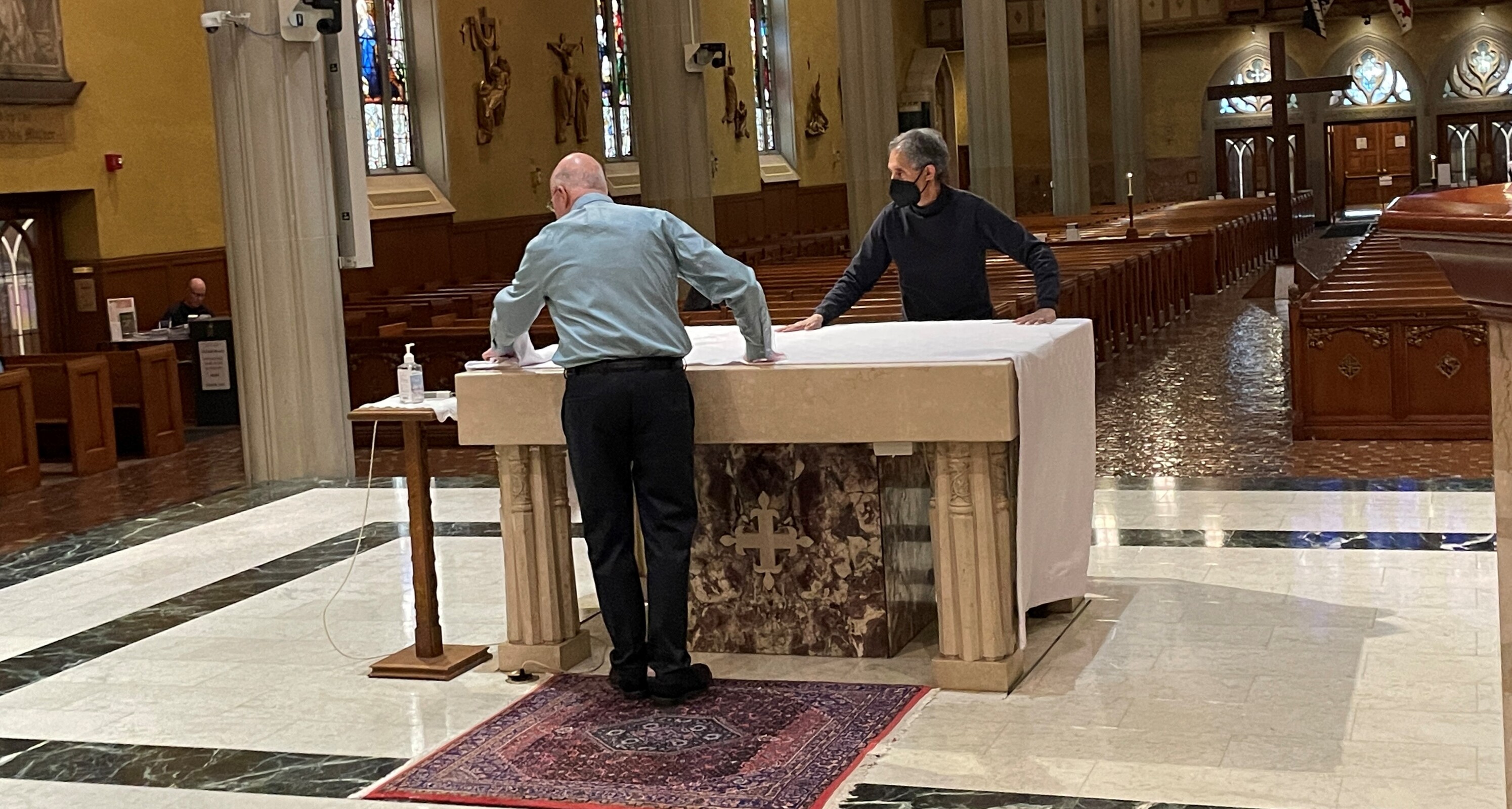 On Holy Thursday, after the Mass of the Lord’s Supper, the sanctuary was stripped of candles, the altar cloth and other adornments in preparation for Good Friday. After celebrating the liturgy of the Lord’s Passion, cathedral staff and volunteers sprang into action to prepare the mother church of the Diocese of Cleveland for the Easter season.