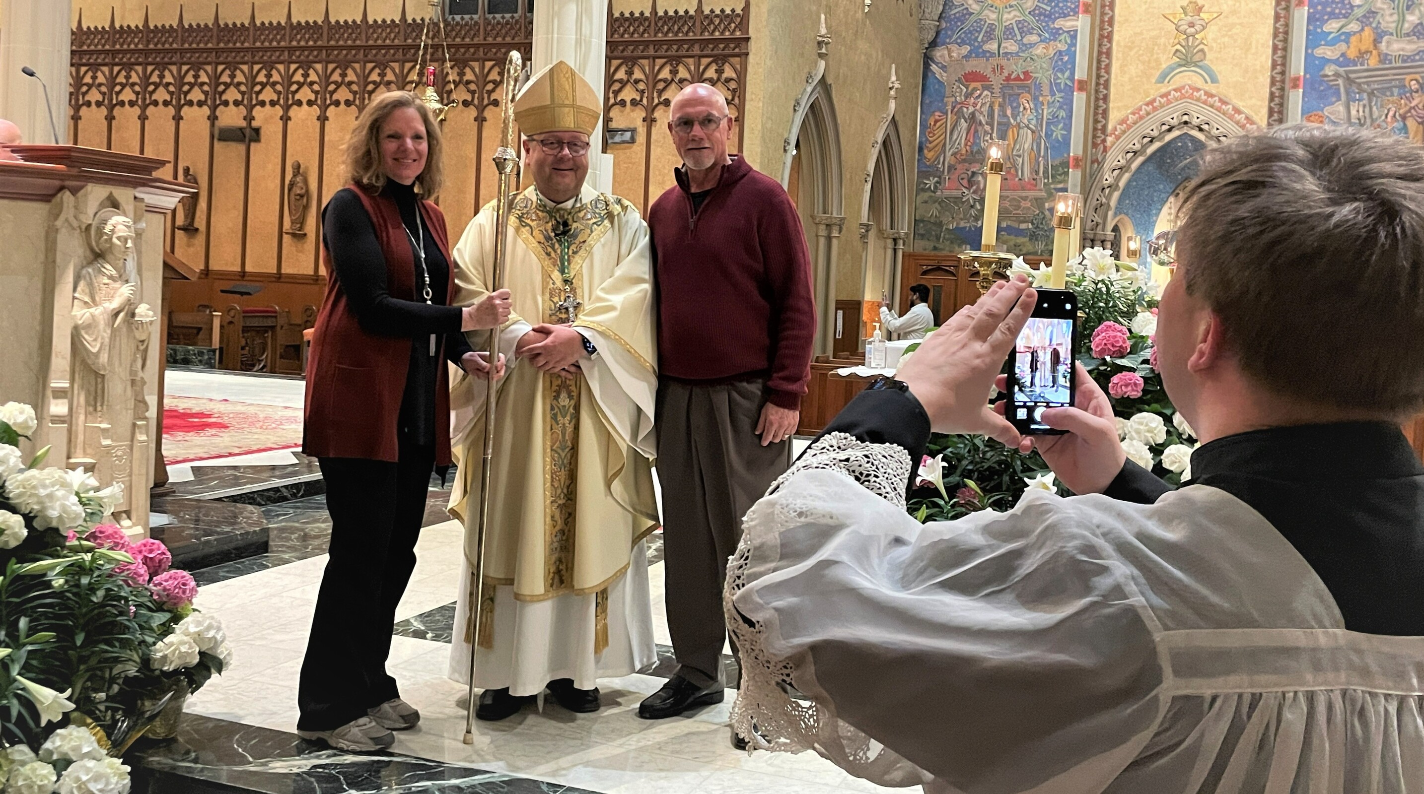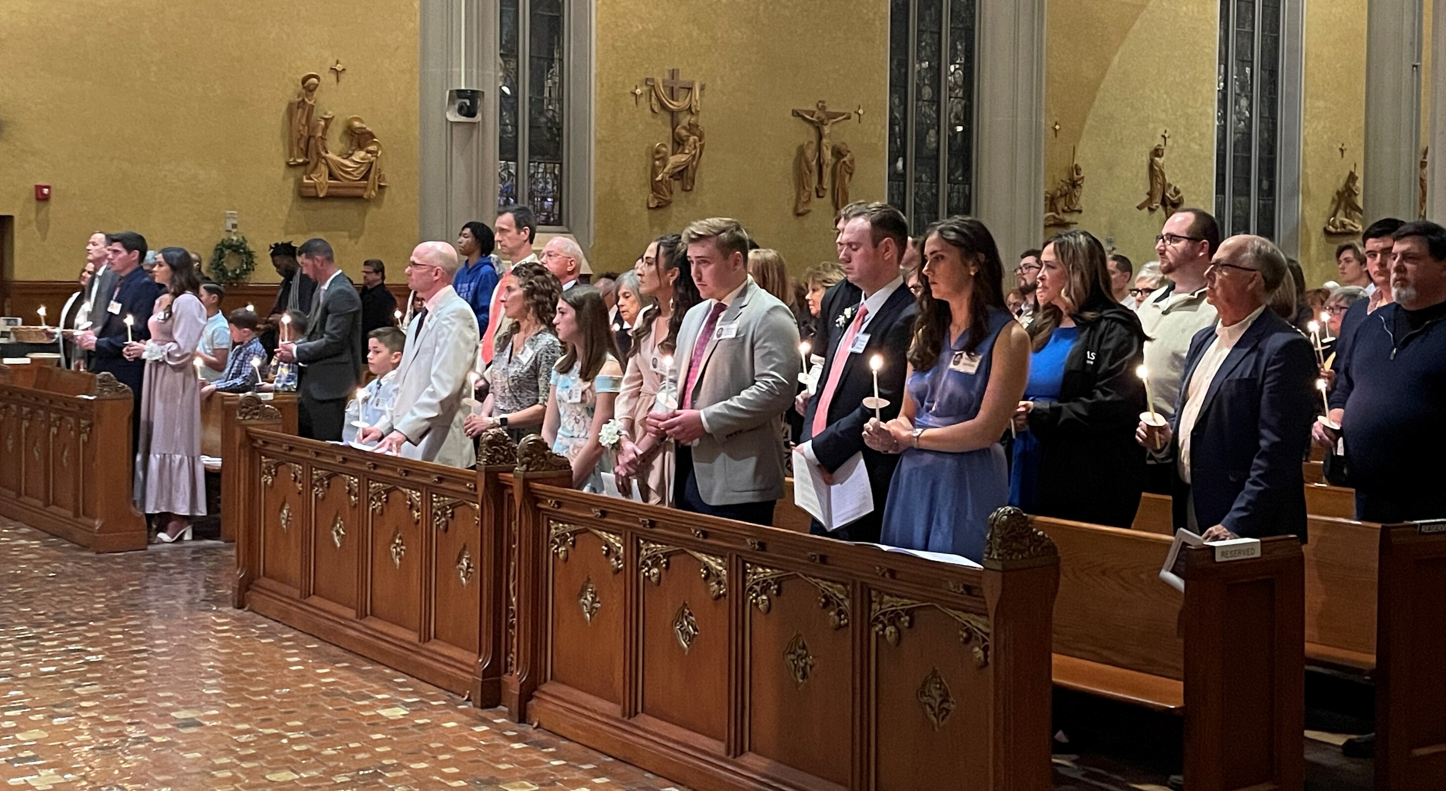 After Mass, the bishop reminded the congregation what a joyful night it was, congratulating the five new members of the Church. He also expressed gratitude for those who helped guide them through their faith journey, including their sponsors, wishing everyone a happy Easter.