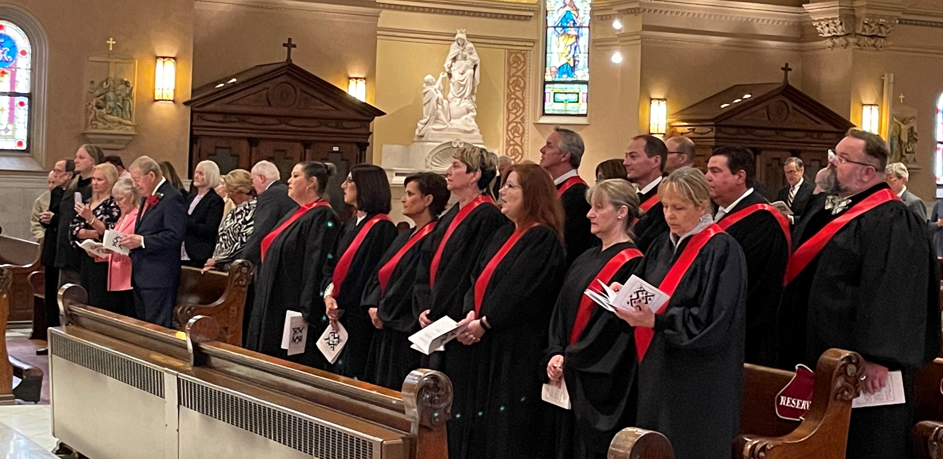 Judges serving in Summit County were invited to wear their black judicial robes and a red sash and to process into and out of the church before and after Mass. Members of the bar and other legal professions also attended the liturgy and the Akron Police Department provided an honor guard.