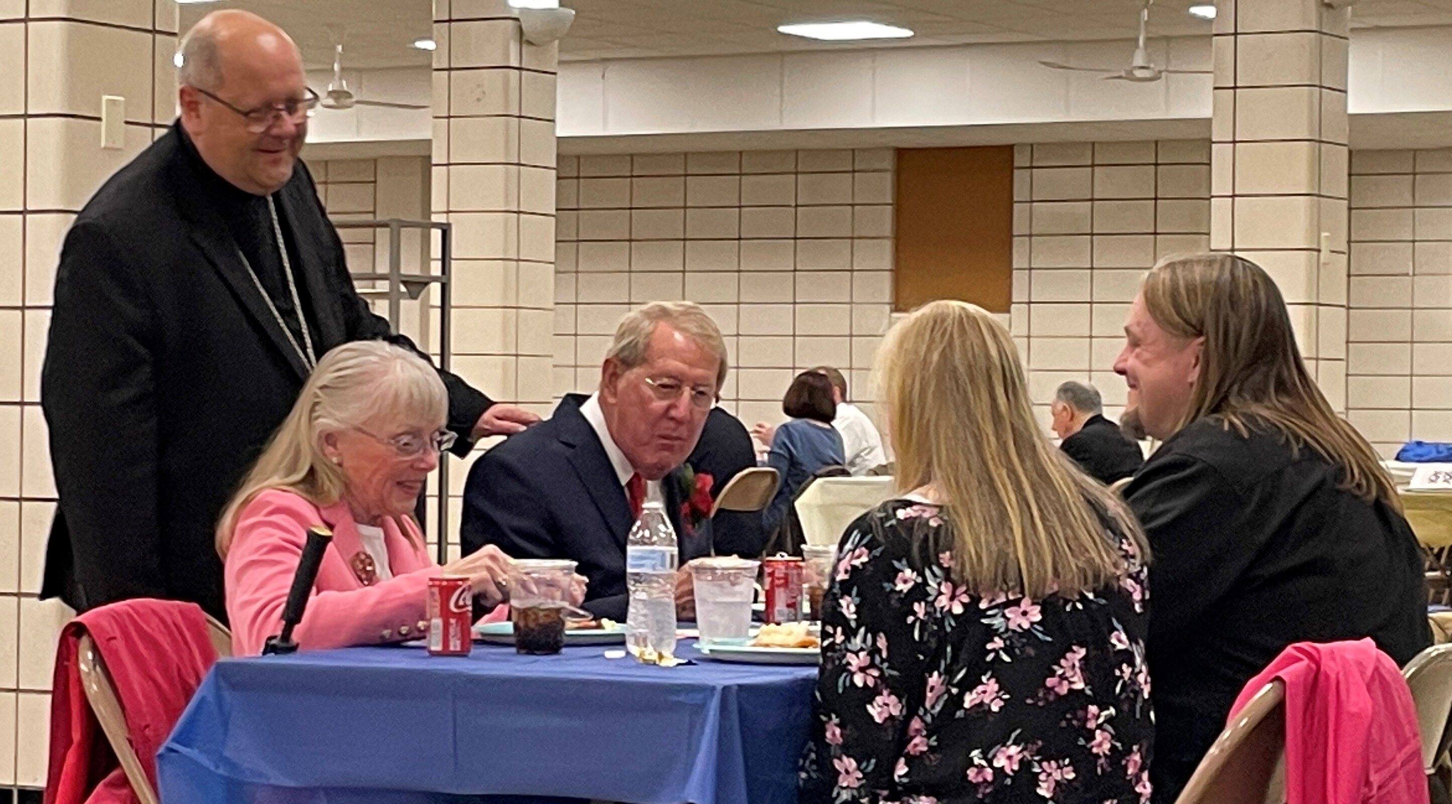 Before the final blessing, Father Rosing introduced Jerry Whitmer, recipient of the 2022 St. Thomas More Award. The award recognizes the virtues of integrity and public service that reflect those of St. Thomas More, who refused to compromise his beliefs and was executed.