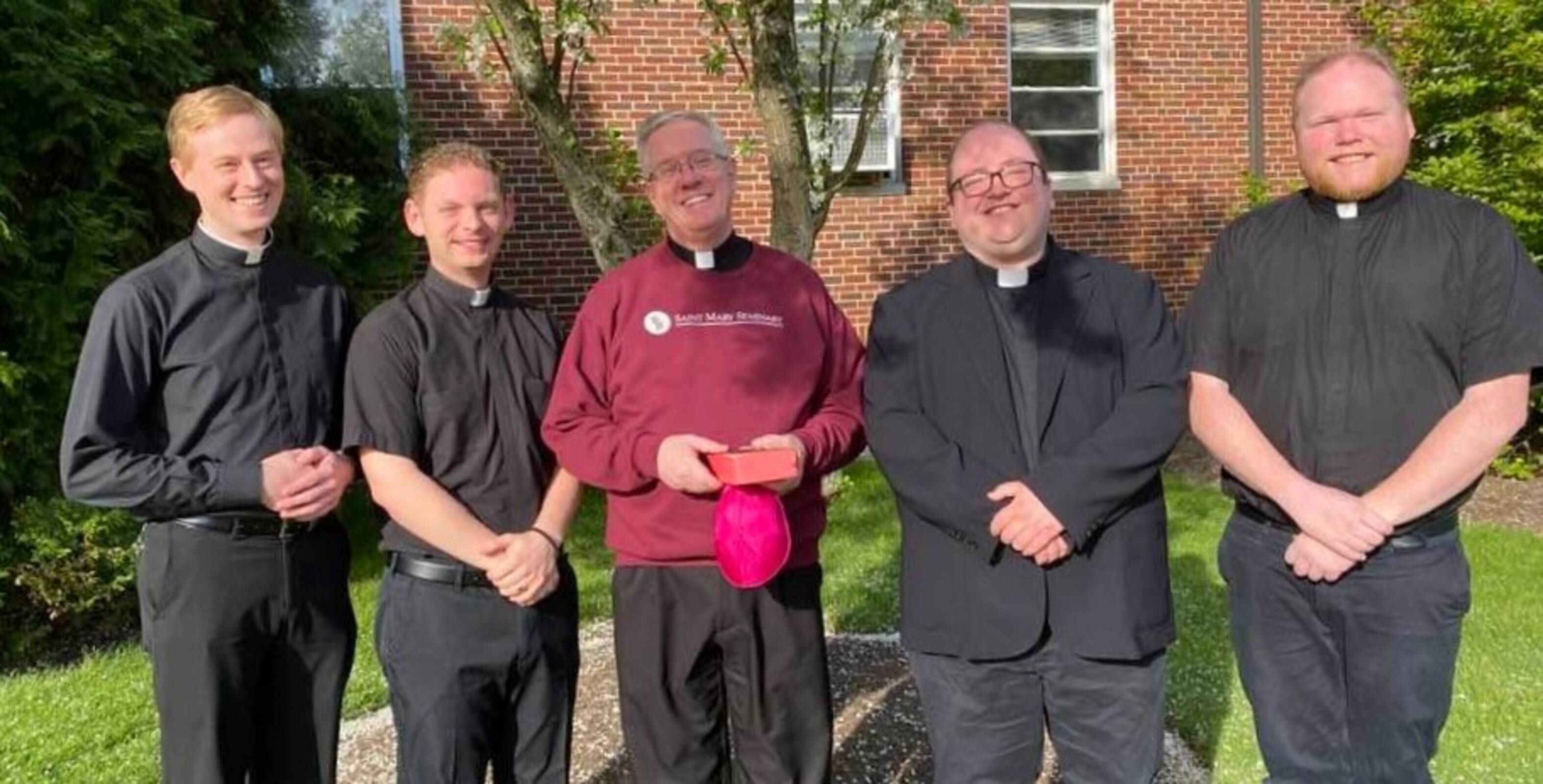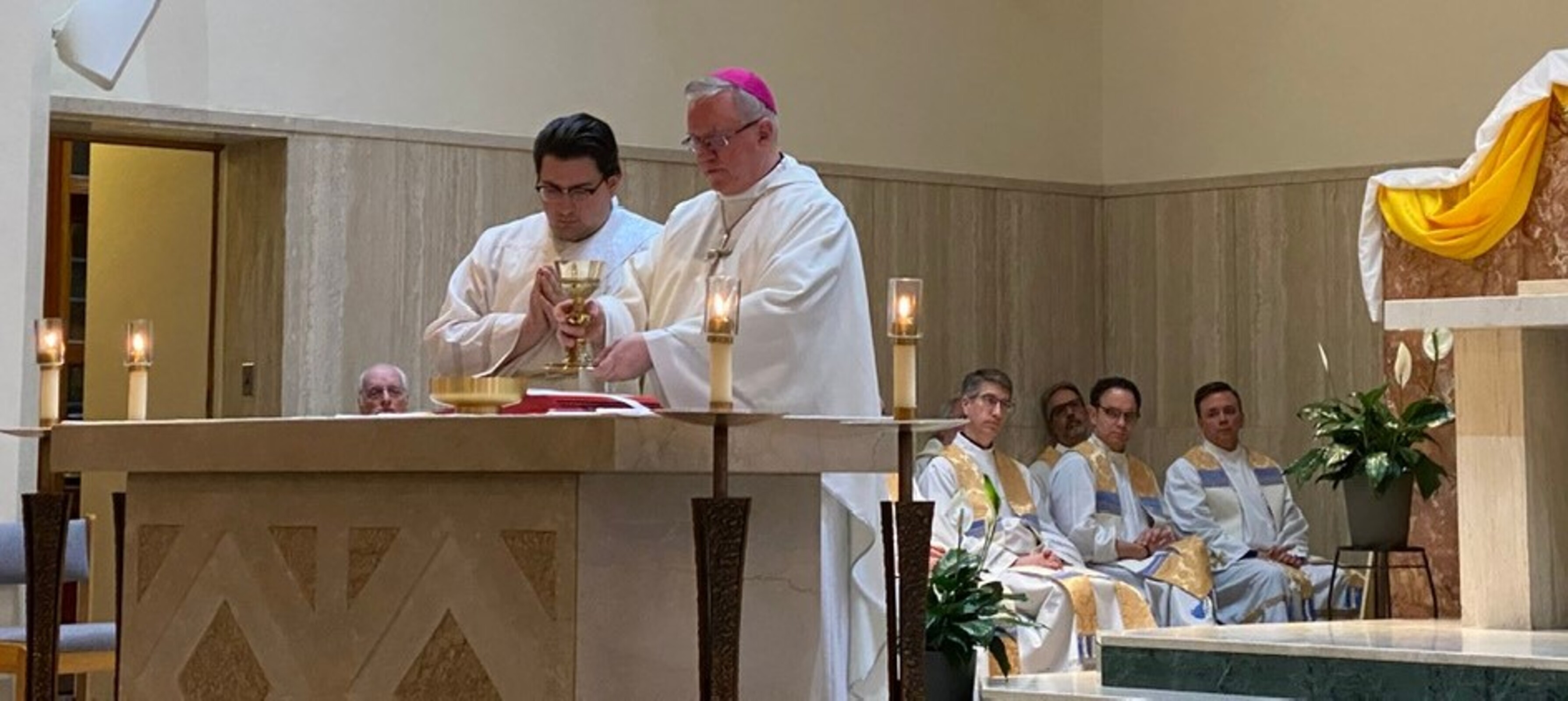 Wearing a zucchetto and pectoral cross, two of the symbols of a bishop, he celebrated Mass on May 10 for the Borromeo and Saint Mary seminary community.