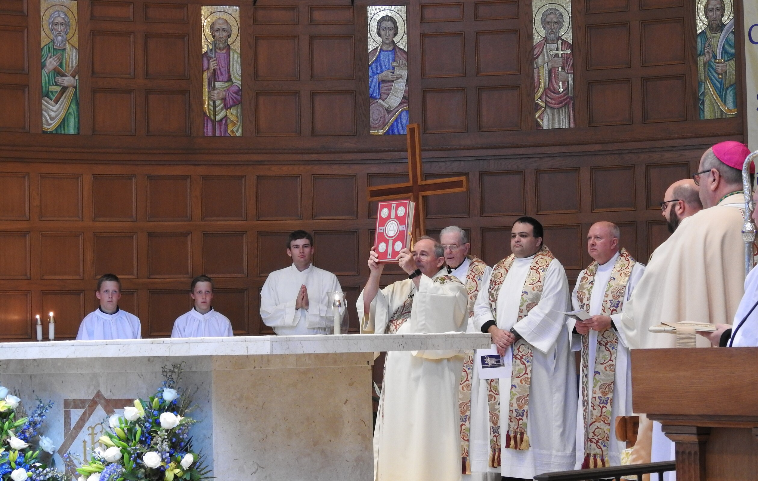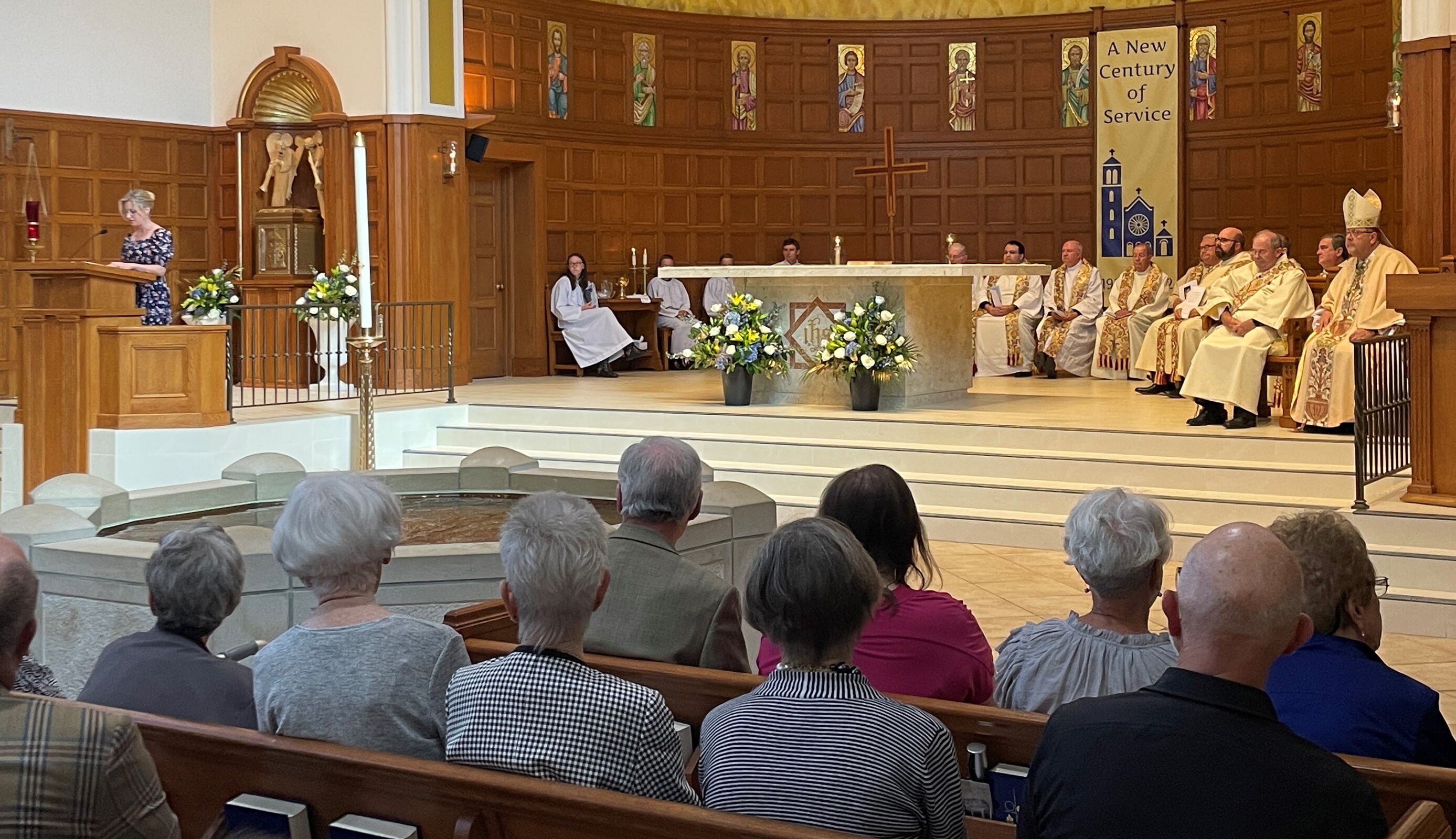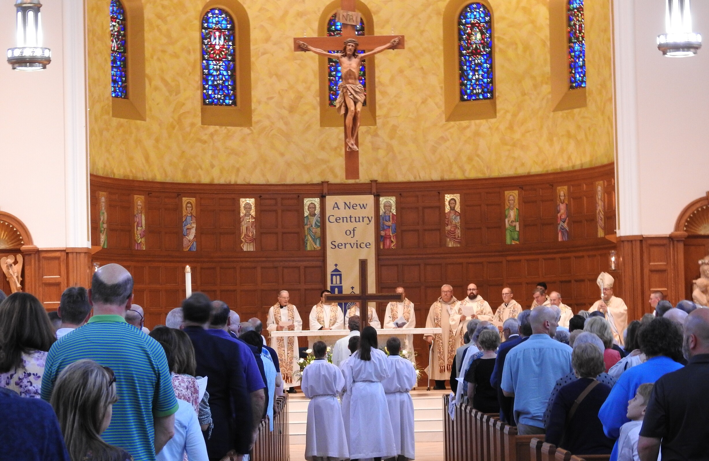 Concelebrants for the centennial liturgy included retired priests Father Frank Walsh and Father Ned Weist, who grew up in the parish; Father John Betters, pastor of SS. Robert and William and St. John of the Cross parishes in Euclid, a son of the parish. Former parochial vicars Father Dan Schlegel, vicar for clergy and religious, and Father Stan Klasinski, pastor of St. Clare Parish in Lyndhurst. Current parochial vicars Father Tim Daw and Father Anthony Marshall also concelebrated. Assisting was Deacon Dennis Conrad.