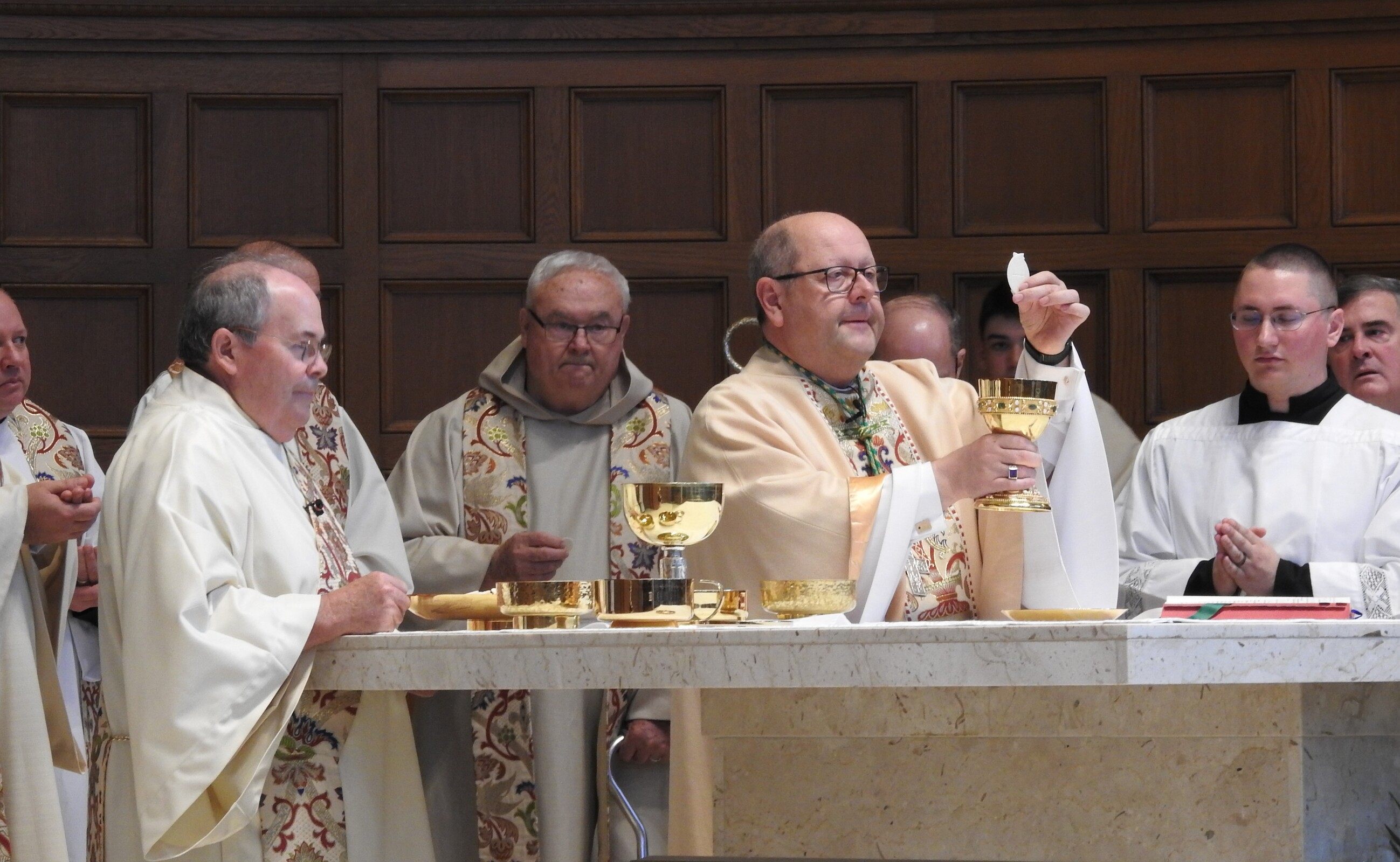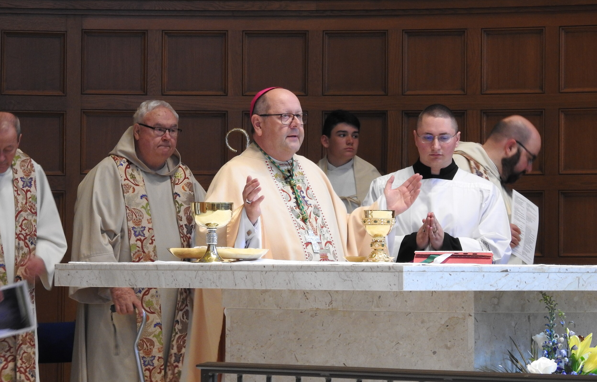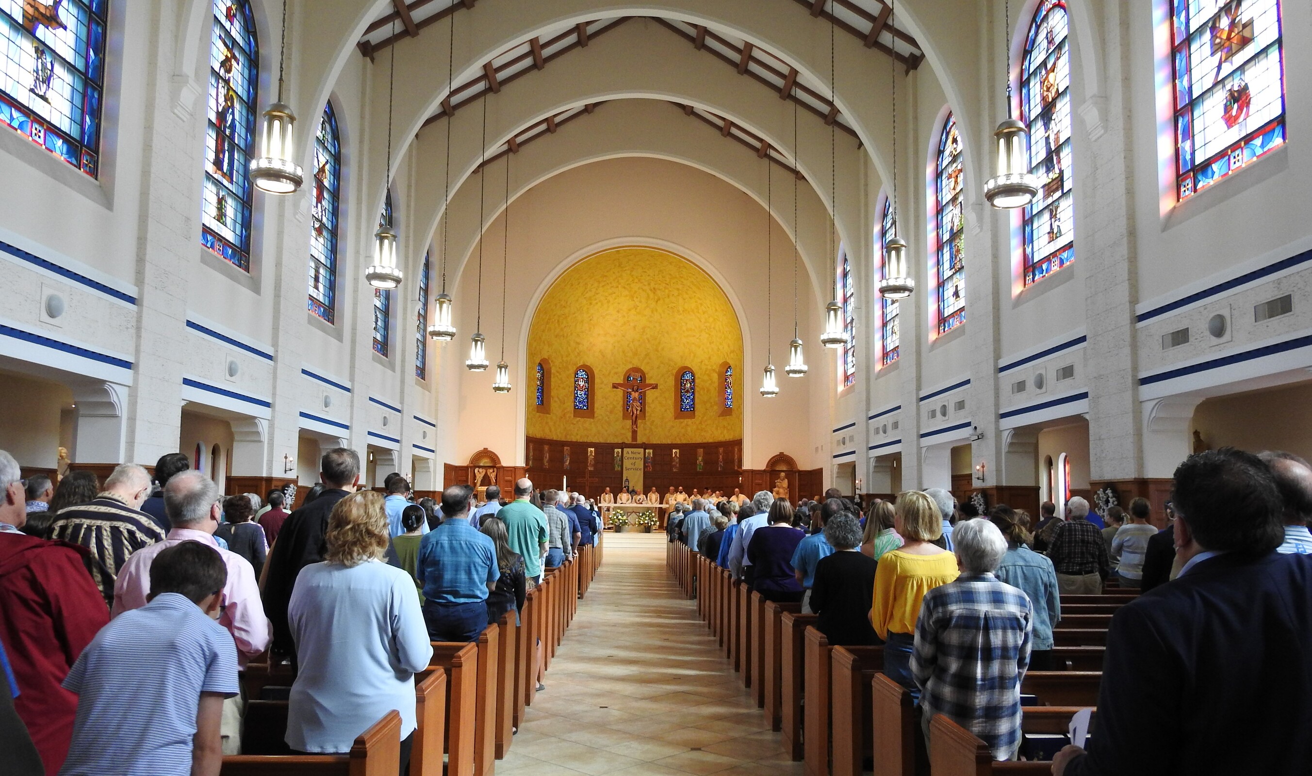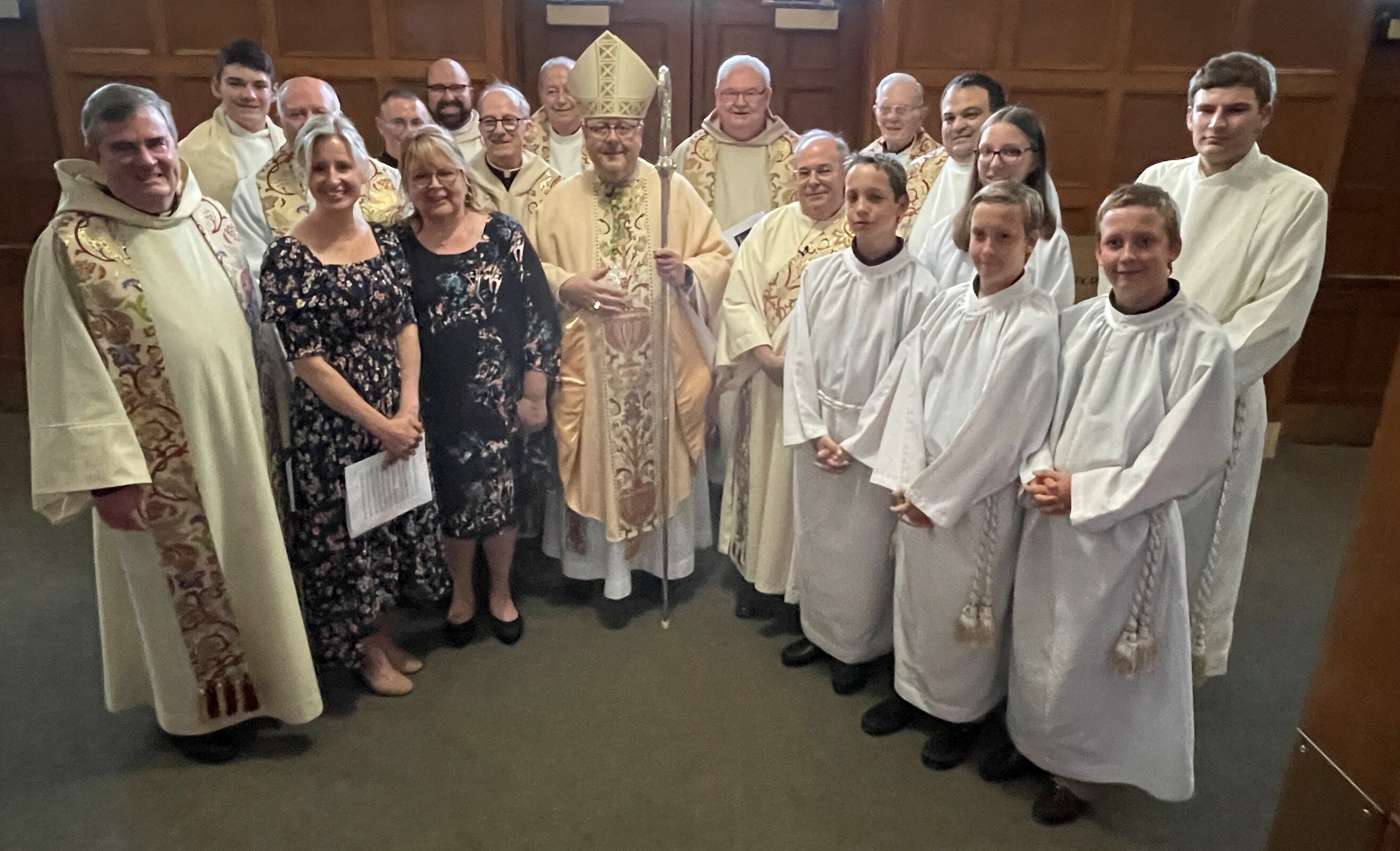 Concelebrants for the centennial liturgy included retired priests Father Frank Walsh and Father Ned Weist, who grew up in the parish; Father John Betters, pastor of SS. Robert and William and St. John of the Cross parishes in Euclid, a son of the parish. Former parochial vicars Father Dan Schlegel, vicar for clergy and religious, and Father Stan Klasinski, pastor of St. Clare Parish in Lyndhurst. Current parochial vicars Father Tim Daw and Father Anthony Marshall also concelebrated. Assisting was Deacon Dennis Conrad.