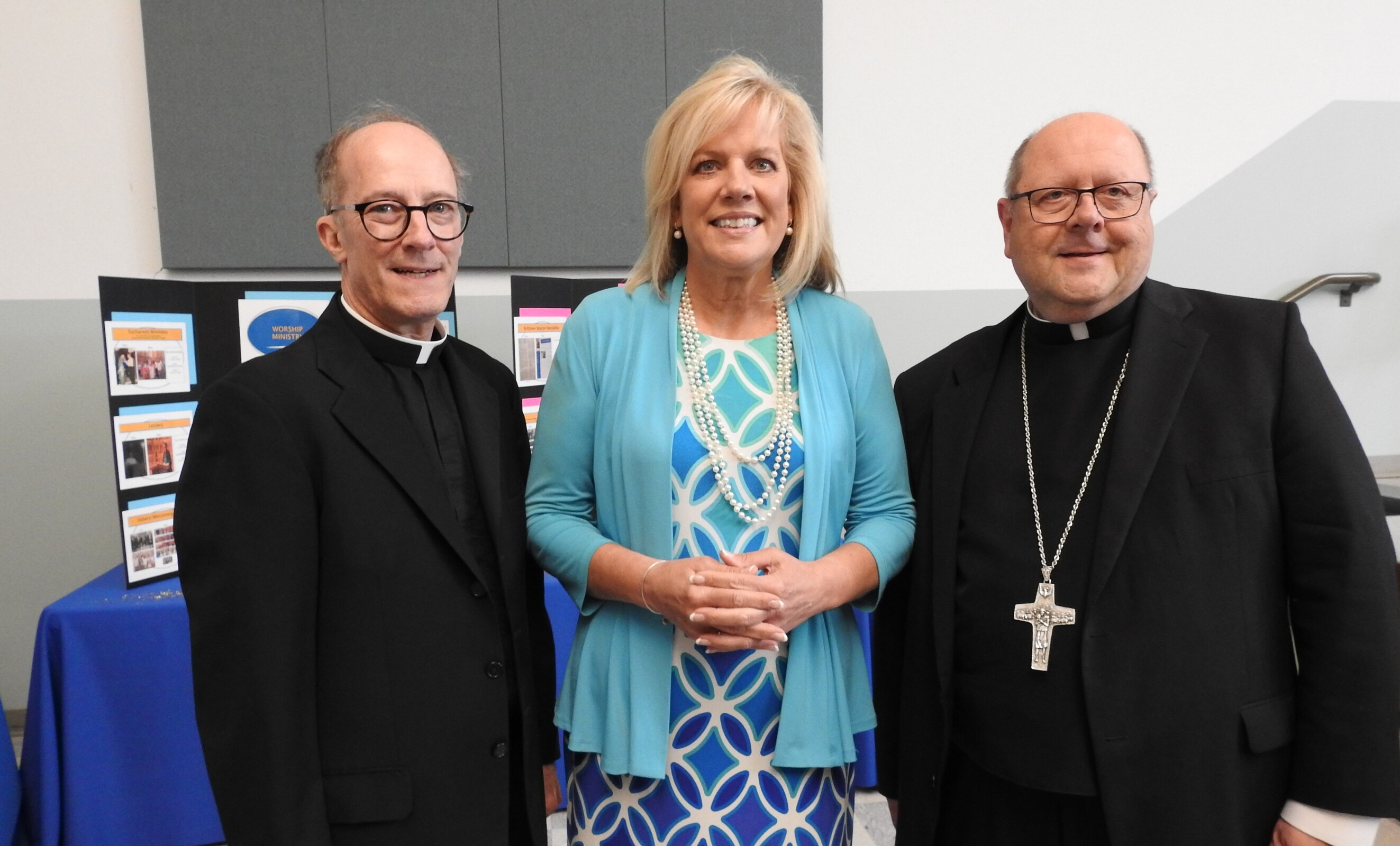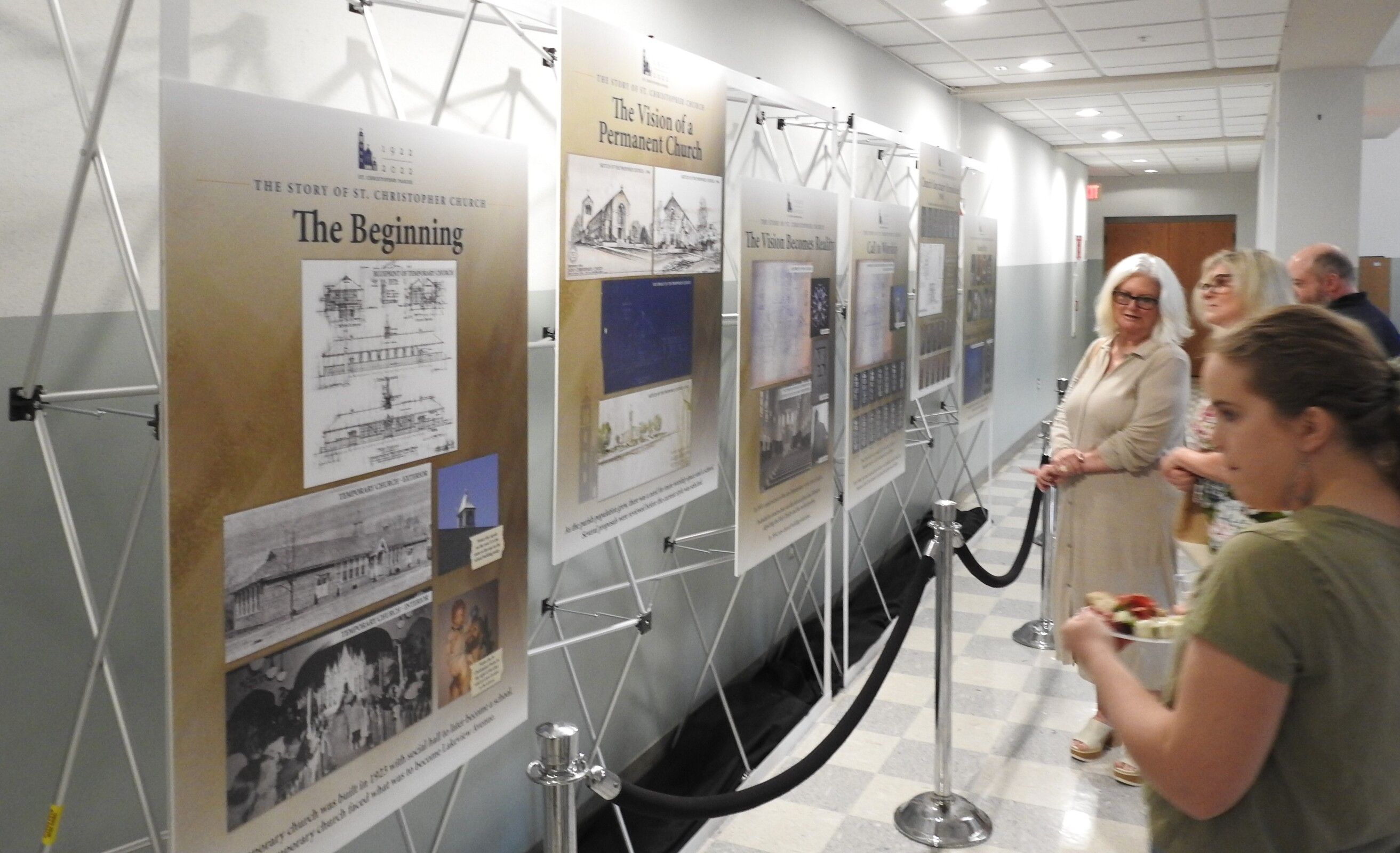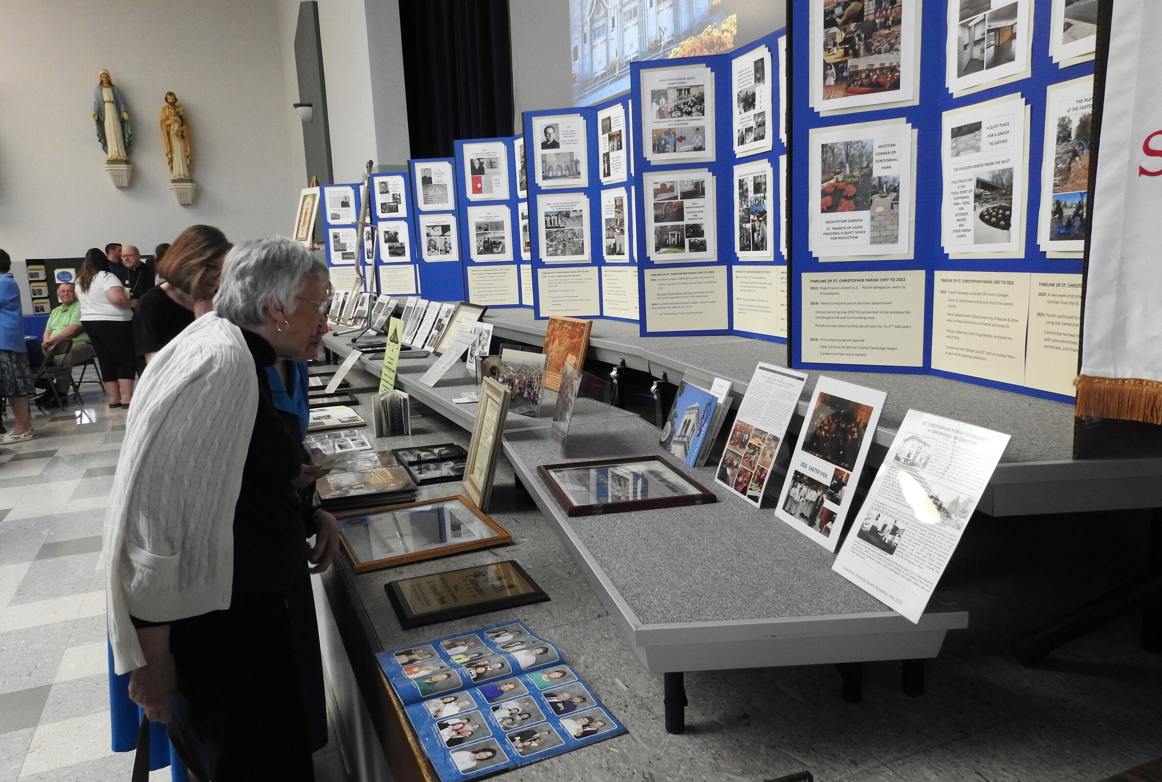 After Mass, the group moved to the Parish Center for a reception and displays encompassing the parish history, including memorabilia loaned by parishioners.