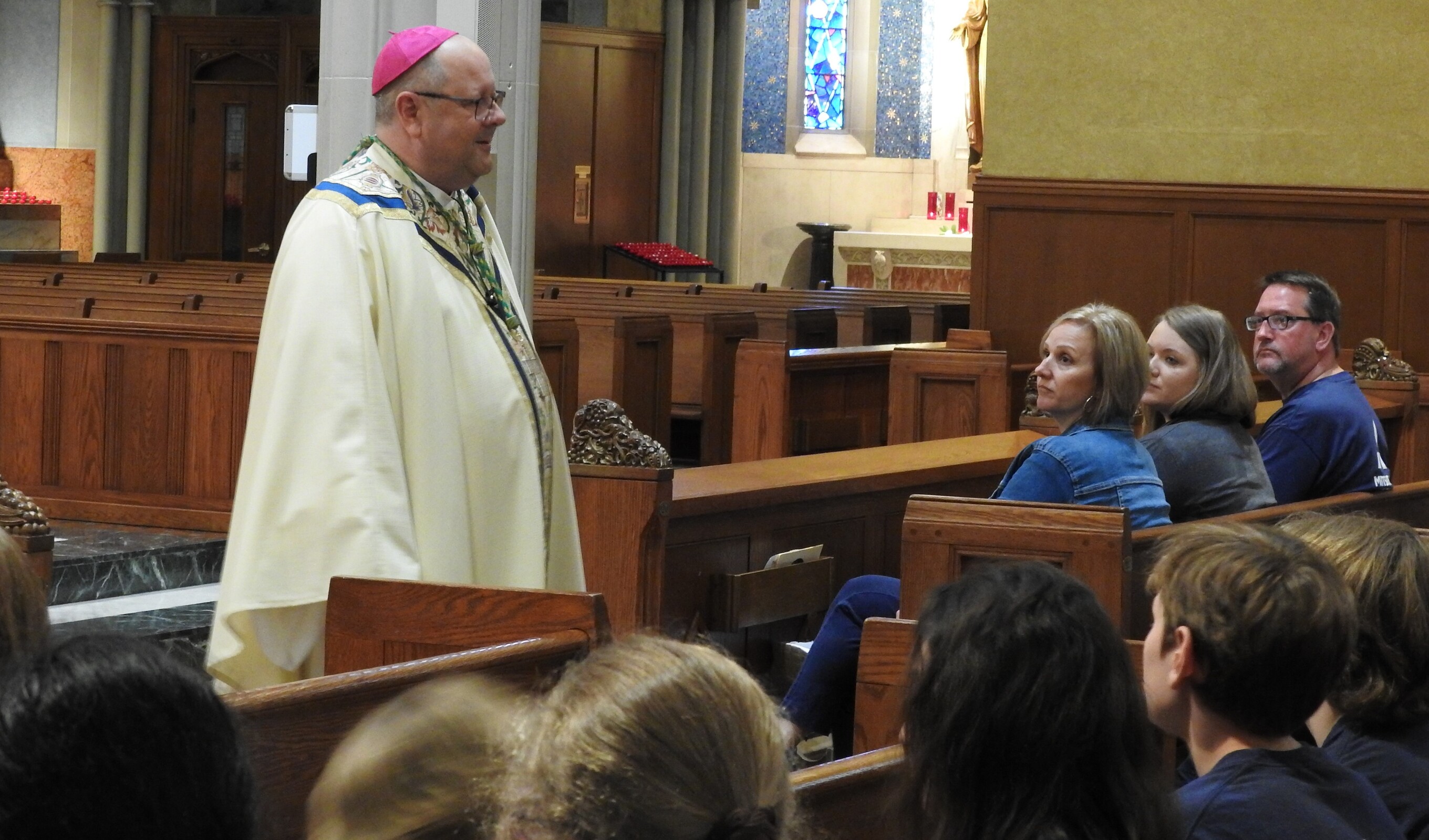 In his homily, the bishop told the students, teachers and chaperones that “peace is the fruit of justice.” Veterans who served their country in the military did so because they loved their families and their homeland, doing what they felt was needed to keep peace in our country and to protect their loved ones.