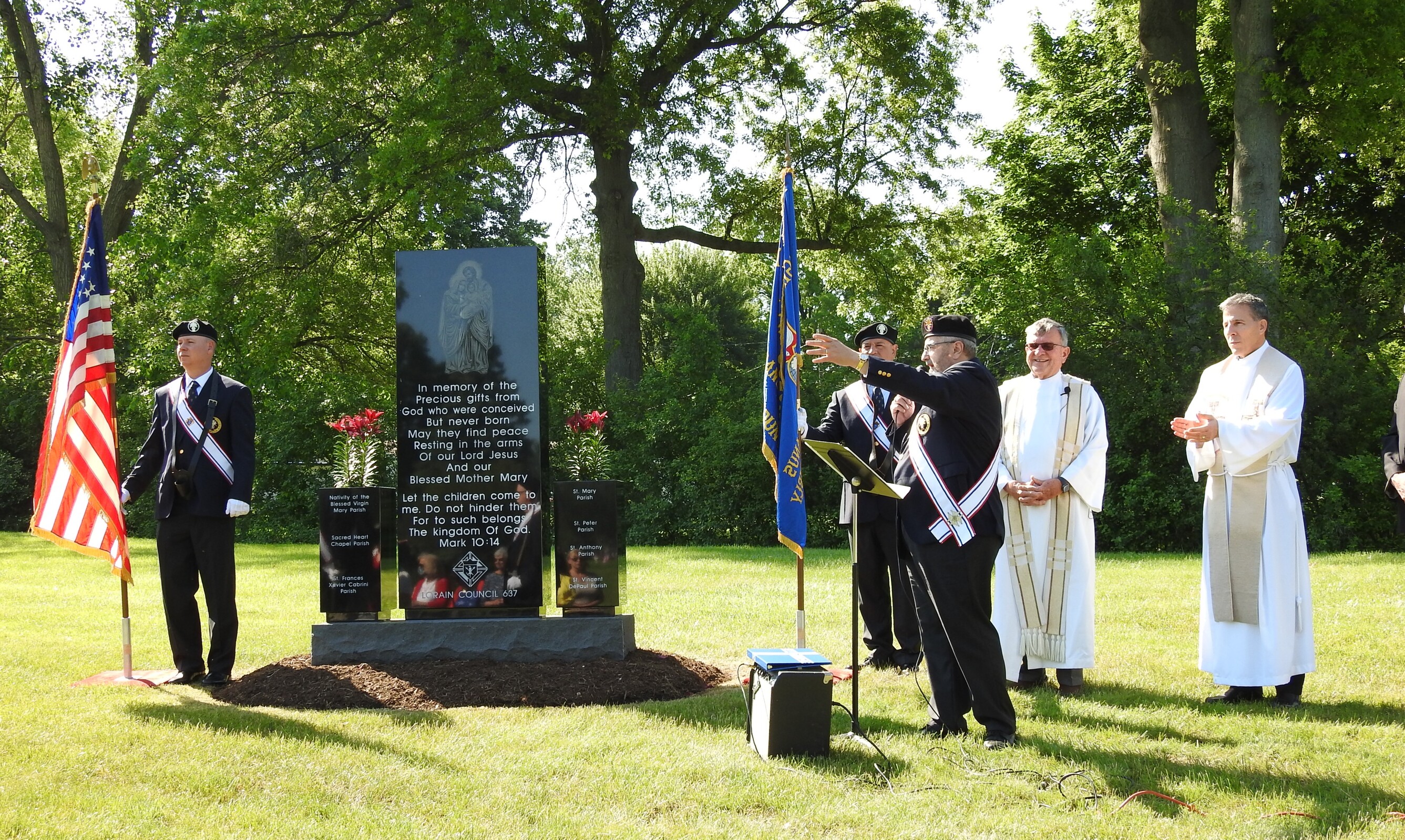 The Knights of Columbus James L. Martin Council 637 in Lorain, with support from seven local Catholic parishes and the Catholic Cemeteries Association, spearheaded efforts to construct a Memorial for the Unborn in Calvary Cemetery, Lorain.