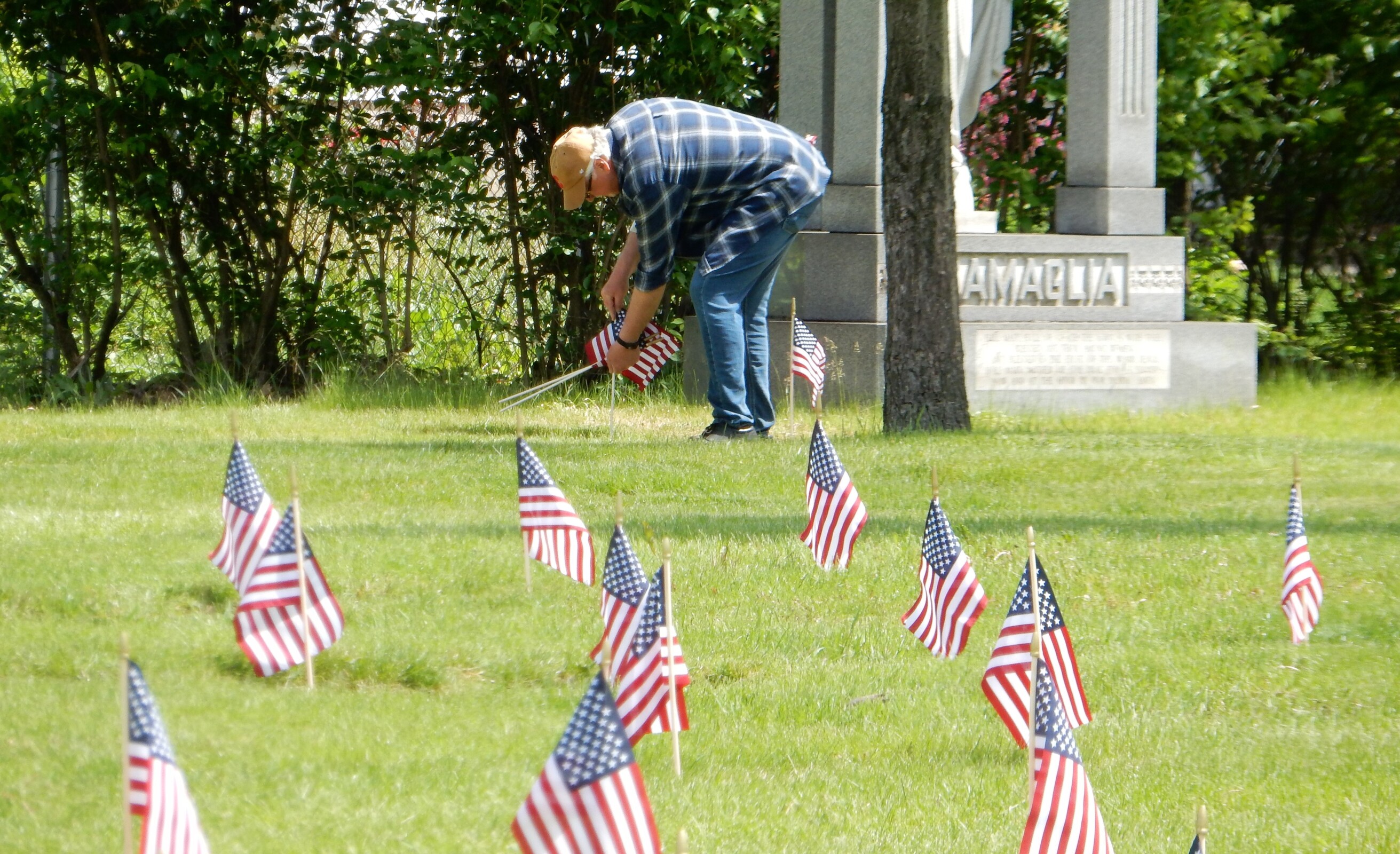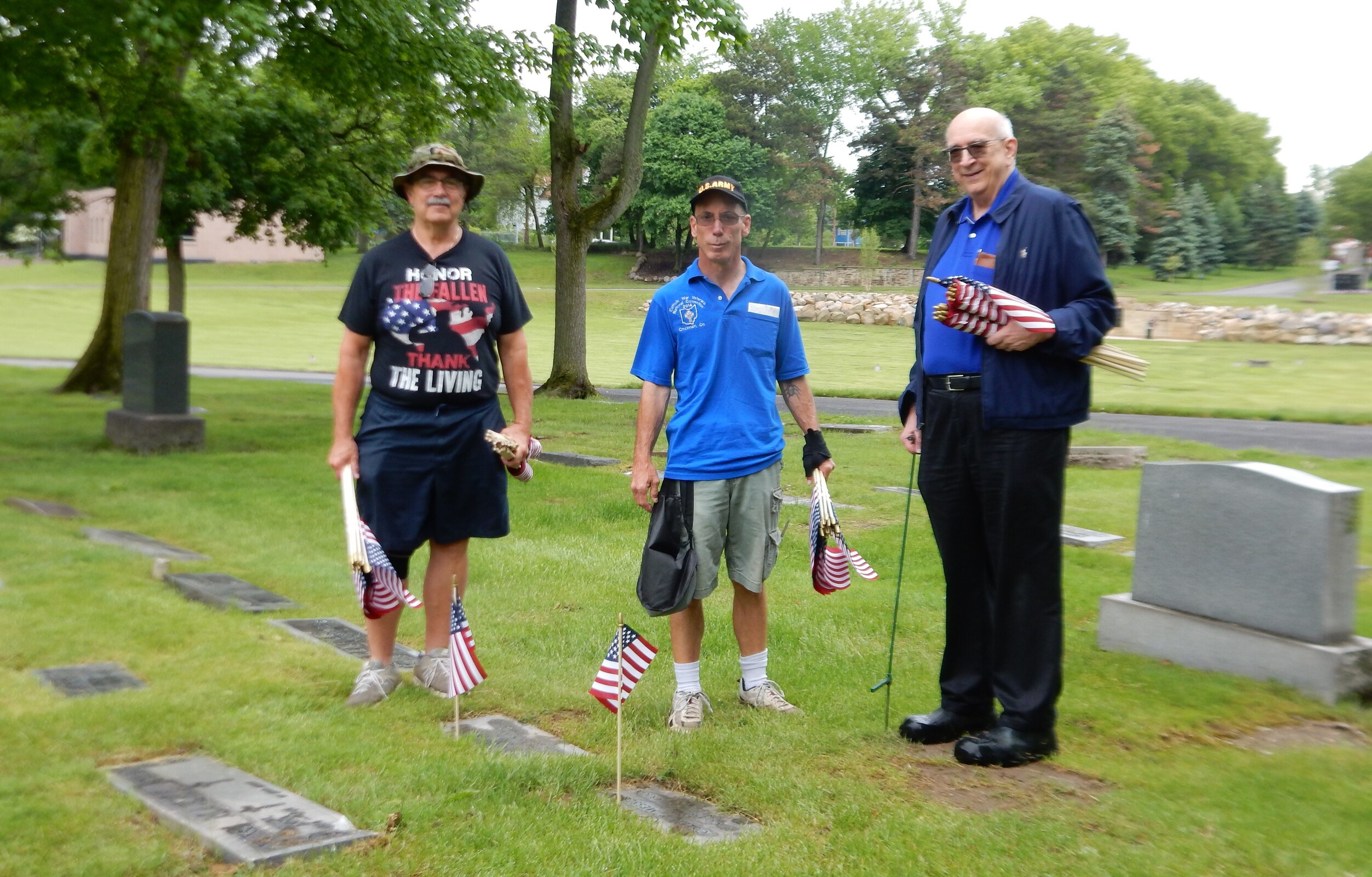 In preparation for Memorial Day, graves of veterans in the Catholic cemeteries were decorated with small flags by volunteers and Catholic Cemeteries employees. Members and friends of Catholic War Veterans St. Vitus Post 1655 in Cleveland spent several hours May 27-28 placing flags on hundreds of graves at Calvary Cemetery in Cleveland and All Souls Cemetery in Chardon.