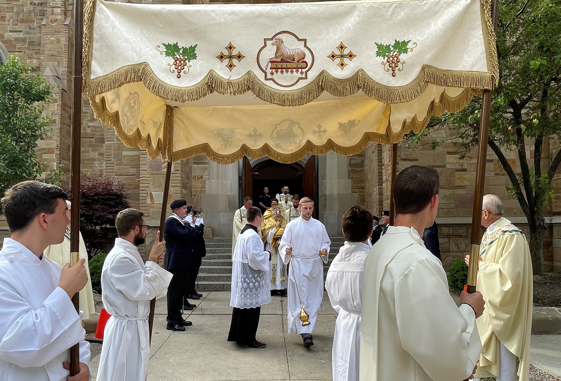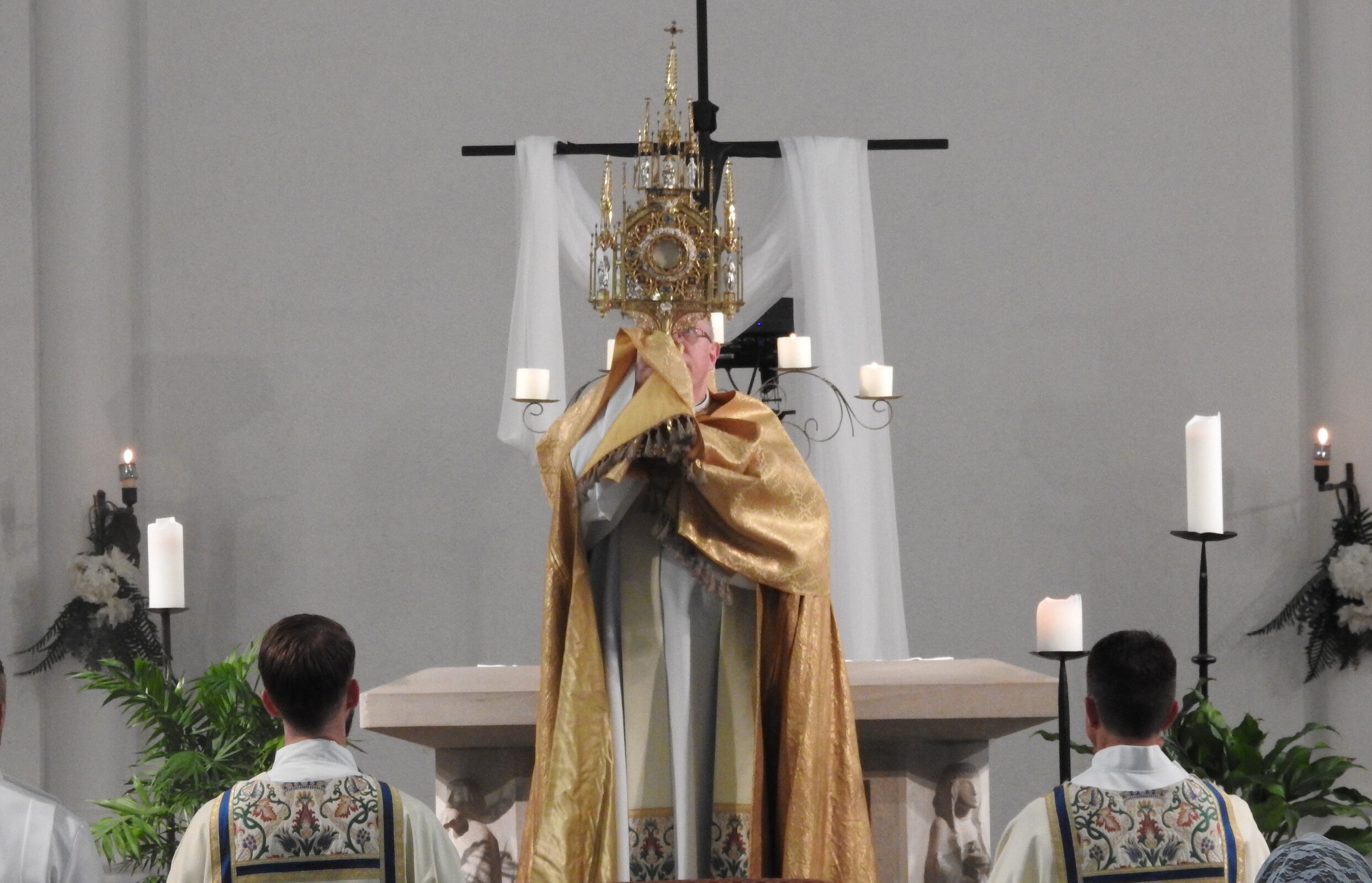 Bishop Edward Malesic had planned to celebrate the Mass and lead the Eucharistic procession after Mass. However, because of his father’s funeral, he was unable to attend, so Bishop-elect Michael Woost stepped in.