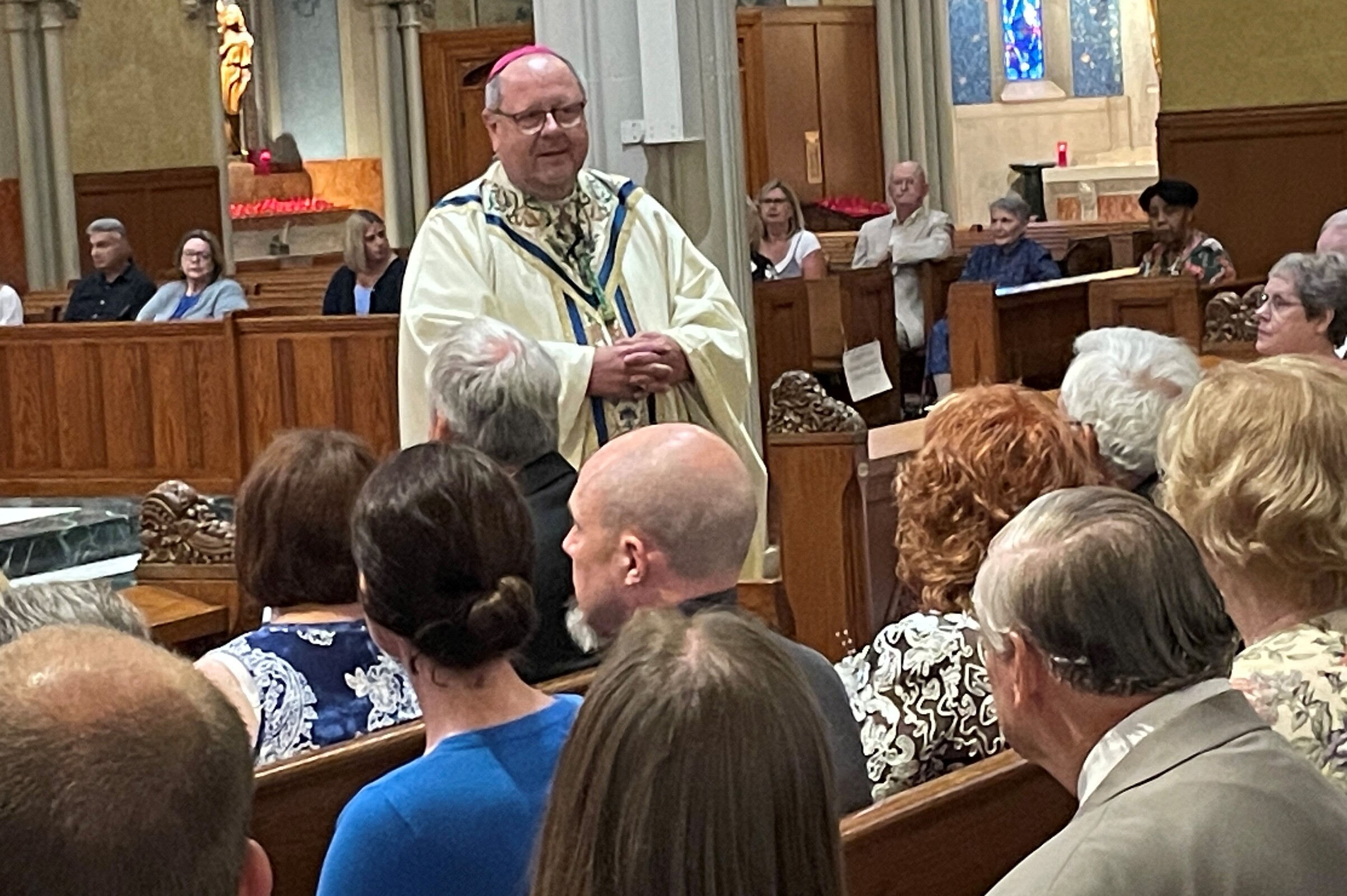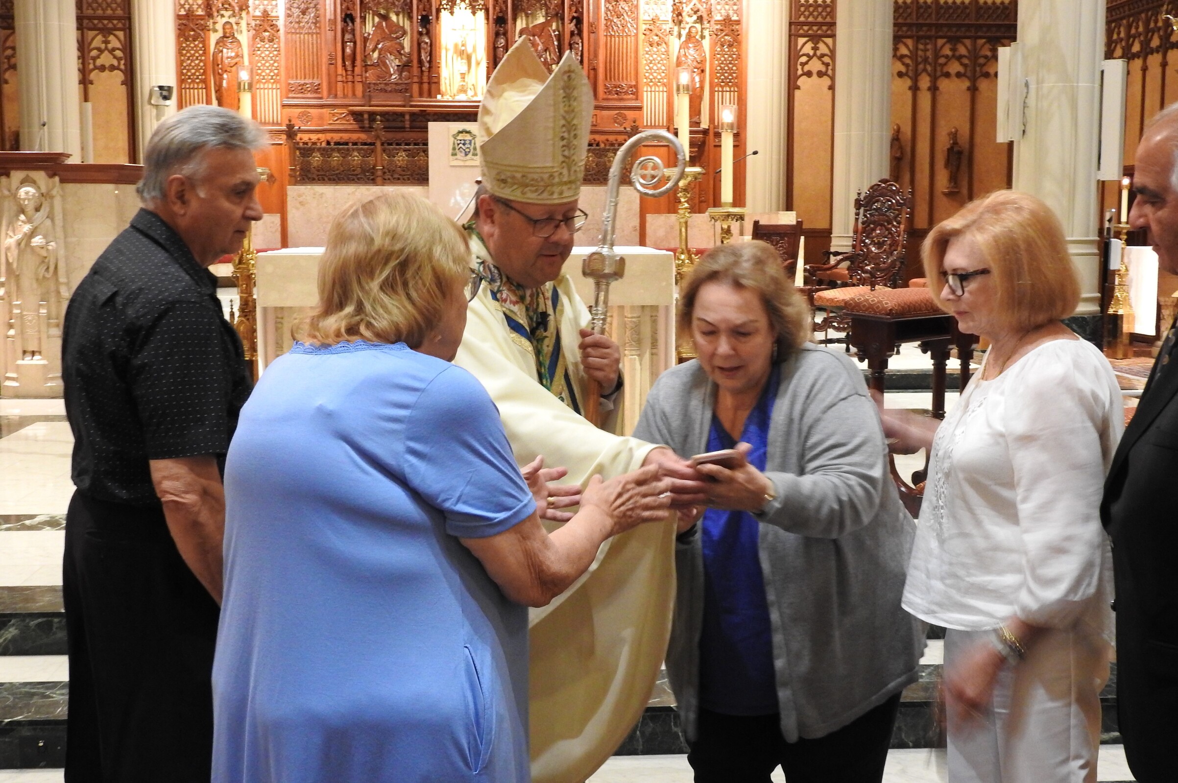 In the day’s Gospel. Jesus said joy comes in loving as we’ve been loved, he said. “You have been loved by God and you have shared that love with one another and with us. It should give you joy to know you have meant so much to your families, to your neighborhoods and to your Church. You have shown us what love means,” Bishop Malesic said, explaining it’s not a fleeting feeling, but the decision to be with someone for a lifetime. “Jesus says it this way: No one has greater love than this, to lay down one’s life for one’s friends.”
