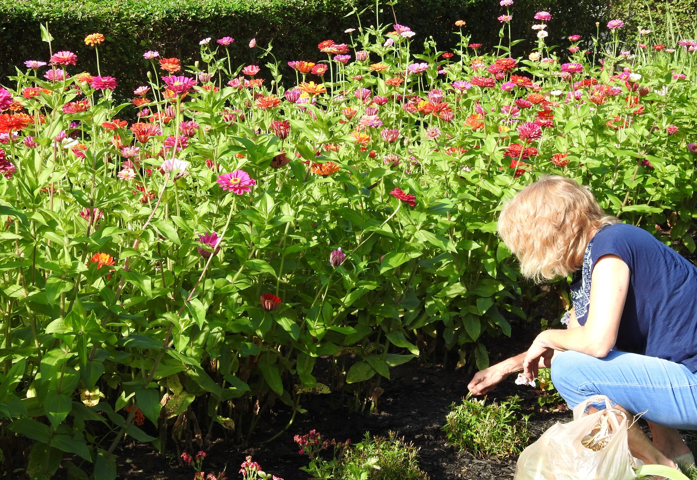 “It’s a low-cost alternative to bring flowers into the church. We have a small budget for mulch,” Spangler said. Volunteers provide the manpower to weed and water the garden. “We have about 10 people who work outside,” she said, noting each volunteer chooses a day to work in the garden. Another group of volunteers selects and arranges the flowers in vases for the main altar, two side altars and other altars along the side of the church.