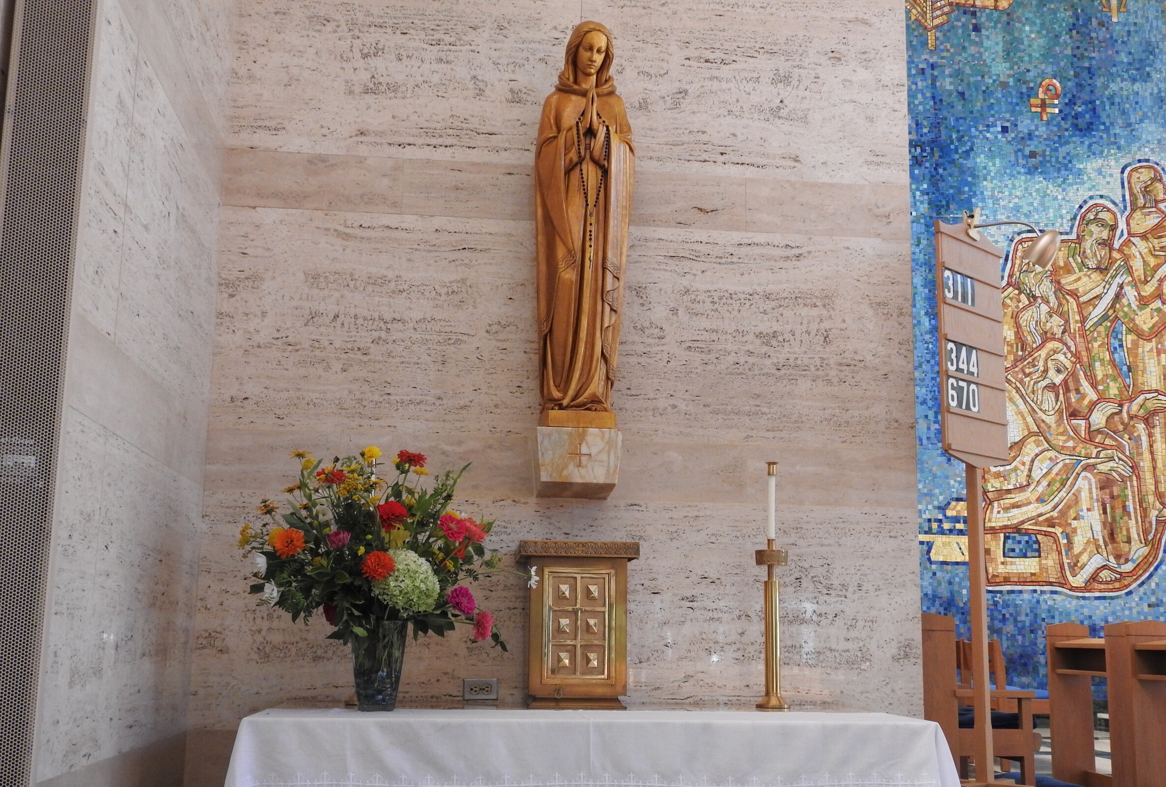 “They generally cut and arrange the flowers on Thursday or Friday so they are in place for the weekend Masses and adoration,” Spangler said. Volunteers freshen up the arrangements on Monday so they last until replacements are prepared.