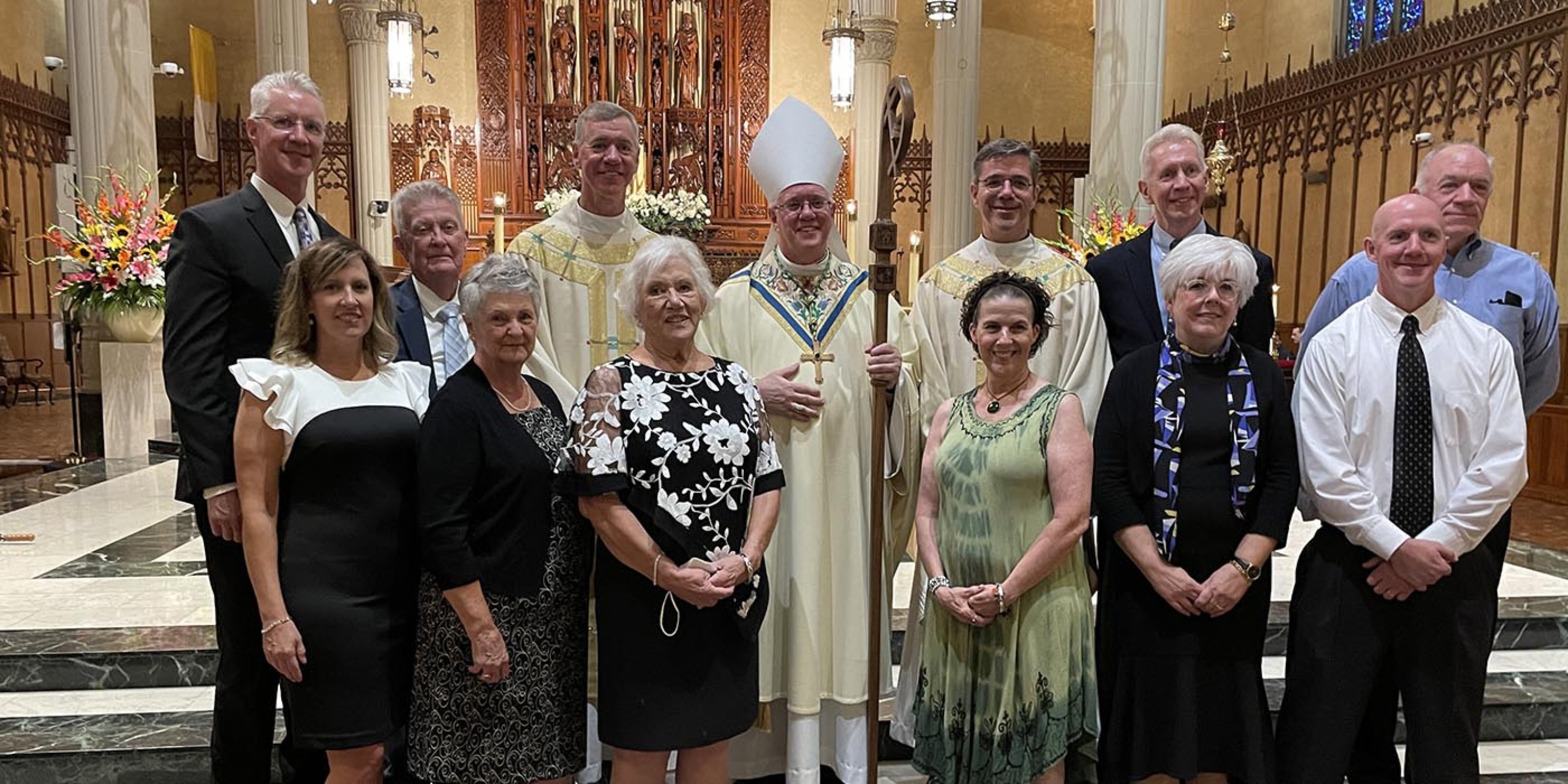 After posing for photos with his family and others in the cathedral, the celebration continued with a reception. Later, Bishop Woost went to St. Wendelin Parish in Cleveland to catch part of the Hillbilly Thomists concert and to lead night prayer.