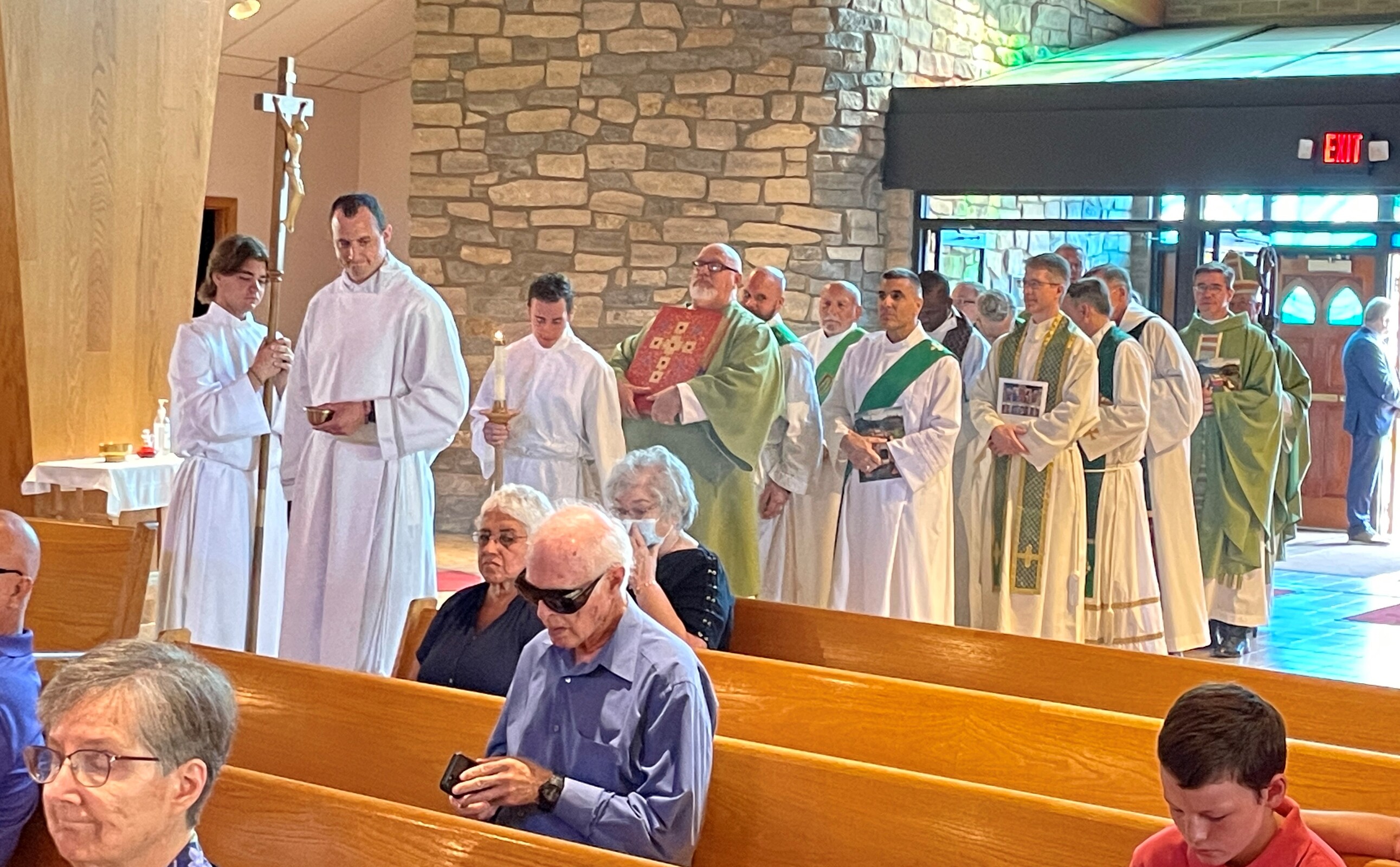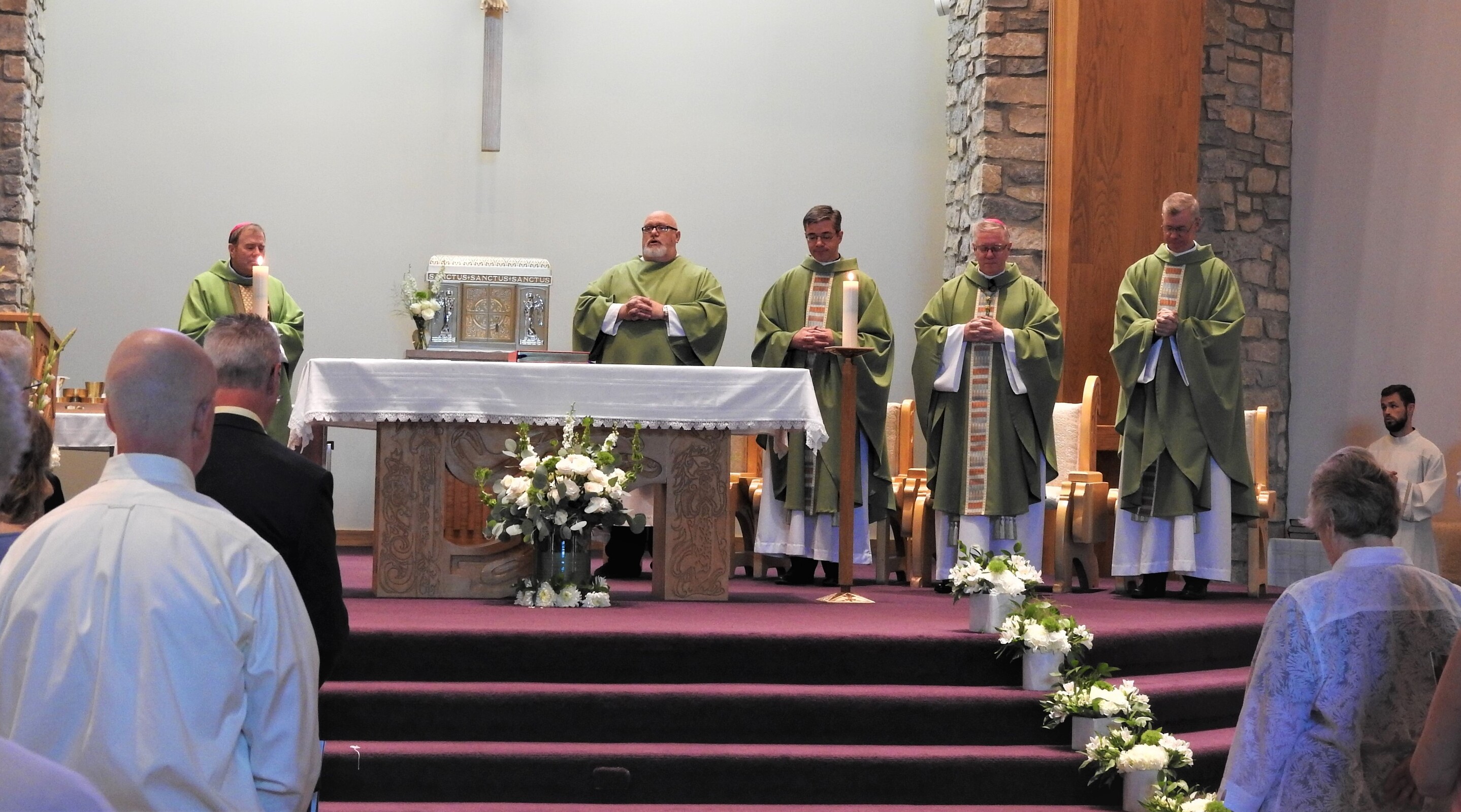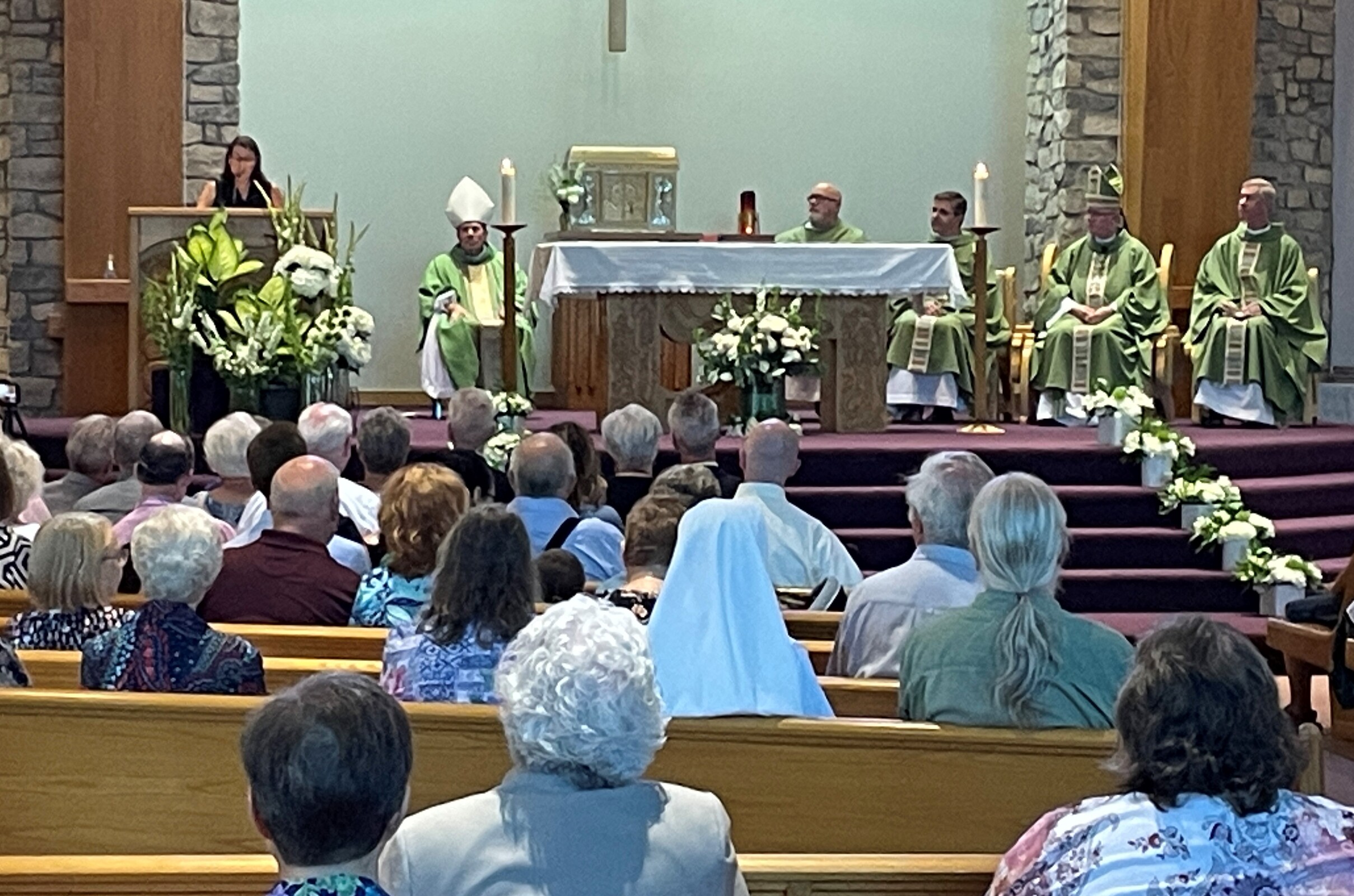 As he began his homily on Aug. 7, Bishop Woost explained to the congregation that he was walking gingerly because of what he called “a liturgical accident” the prior Sunday. He said he injured his knee while genuflecting.