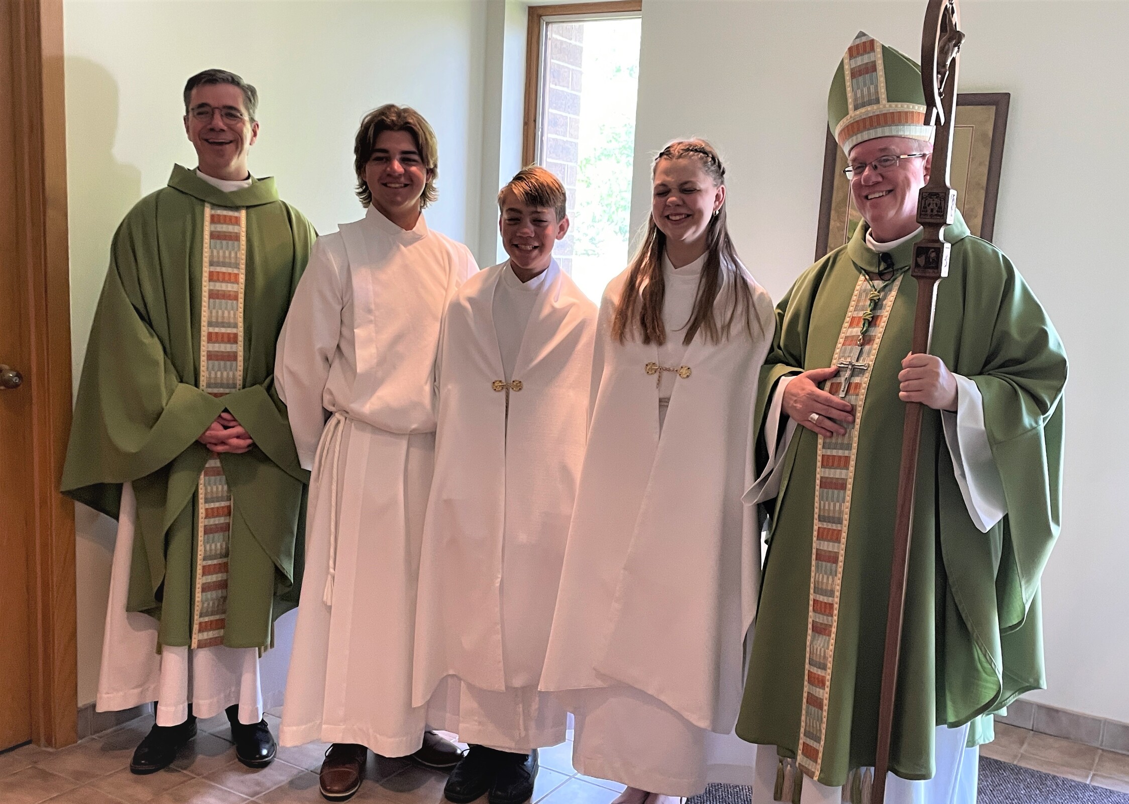 Commenting on the new bishop’s stature, Father Woost quoted another brother, Jon, who said, “Mike has gone from being the shortest Woost to the tallest (because of his miter),” again drawing laughter from the congregation.