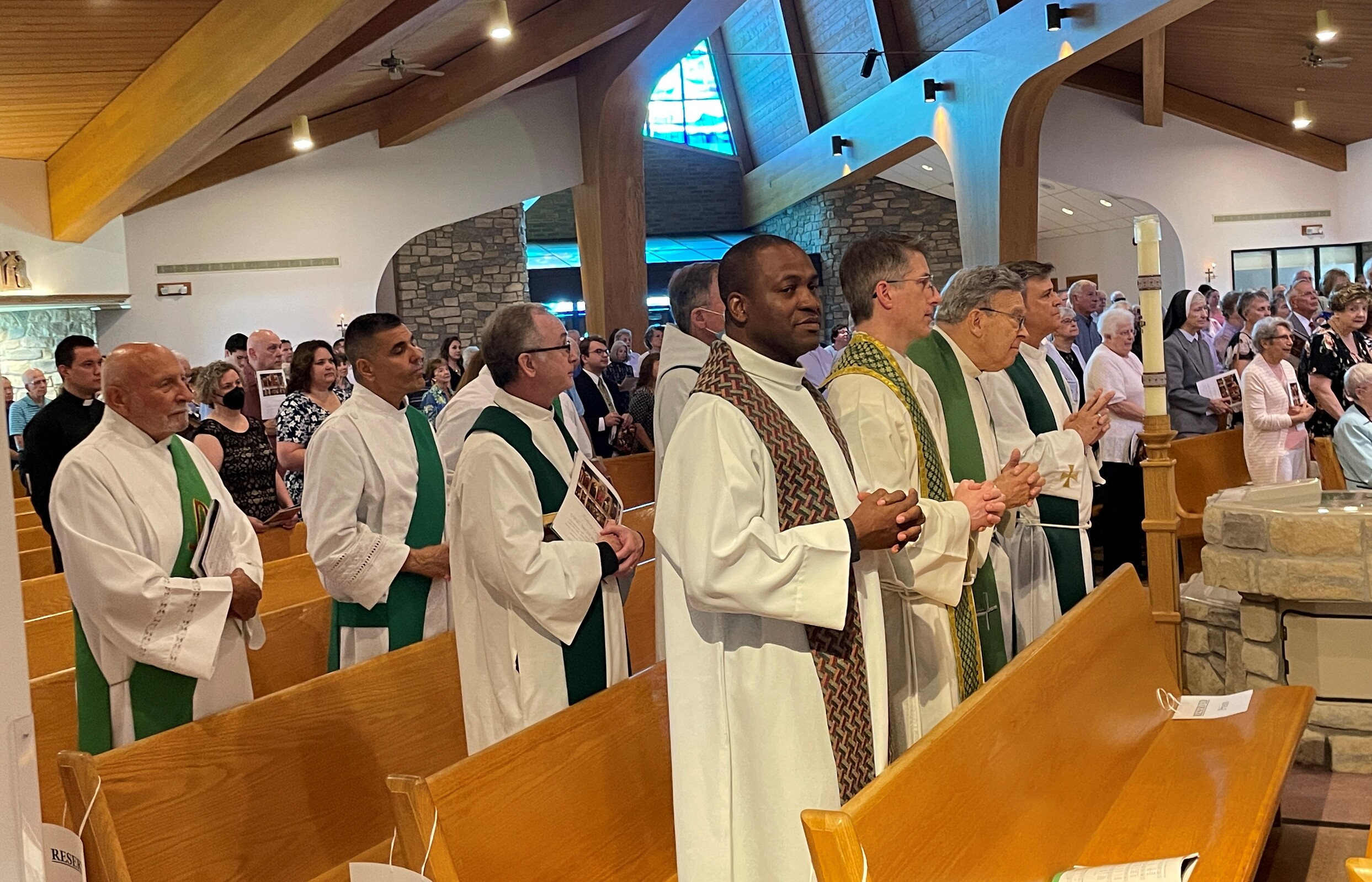A beaming Father Tom Woost, pastor of St. Brendan Parish in North Olmsted, scurried around the church and sacristy before Sunday Mass on Aug. 7 ensuring candles were lit, servers were ready, flowers were arranged properly and other last-minute tasks were handled.