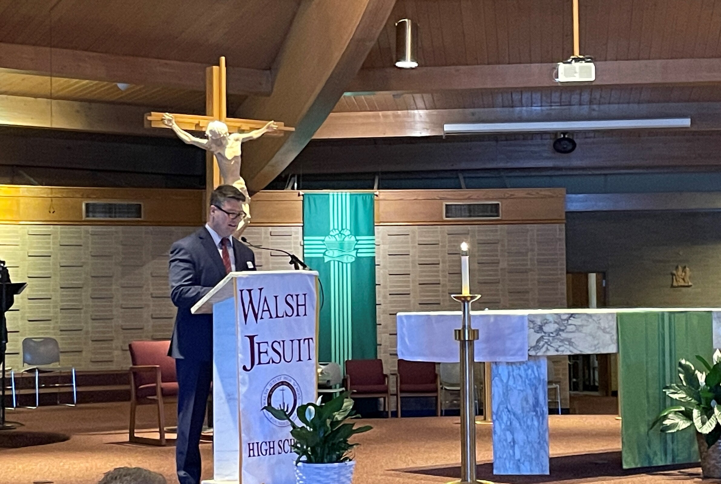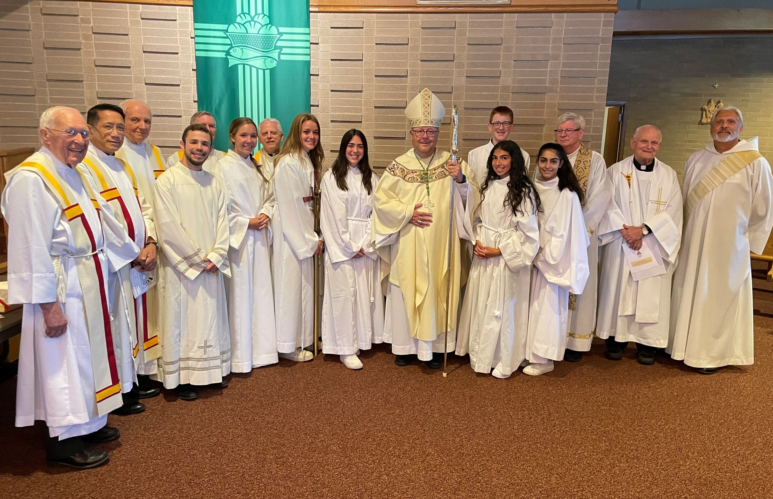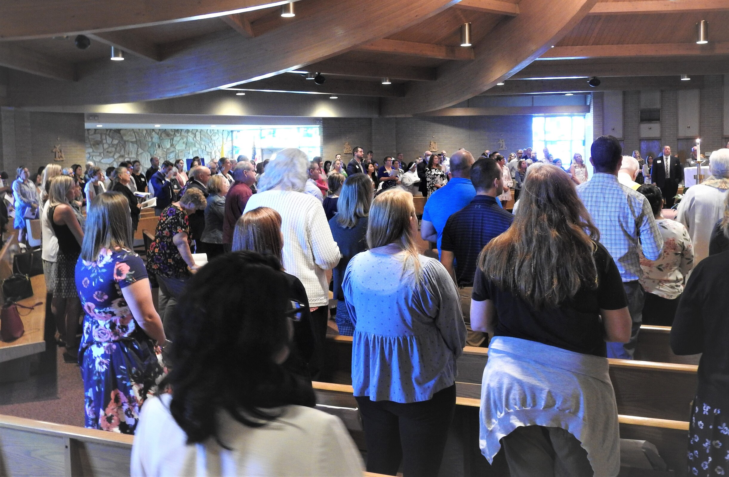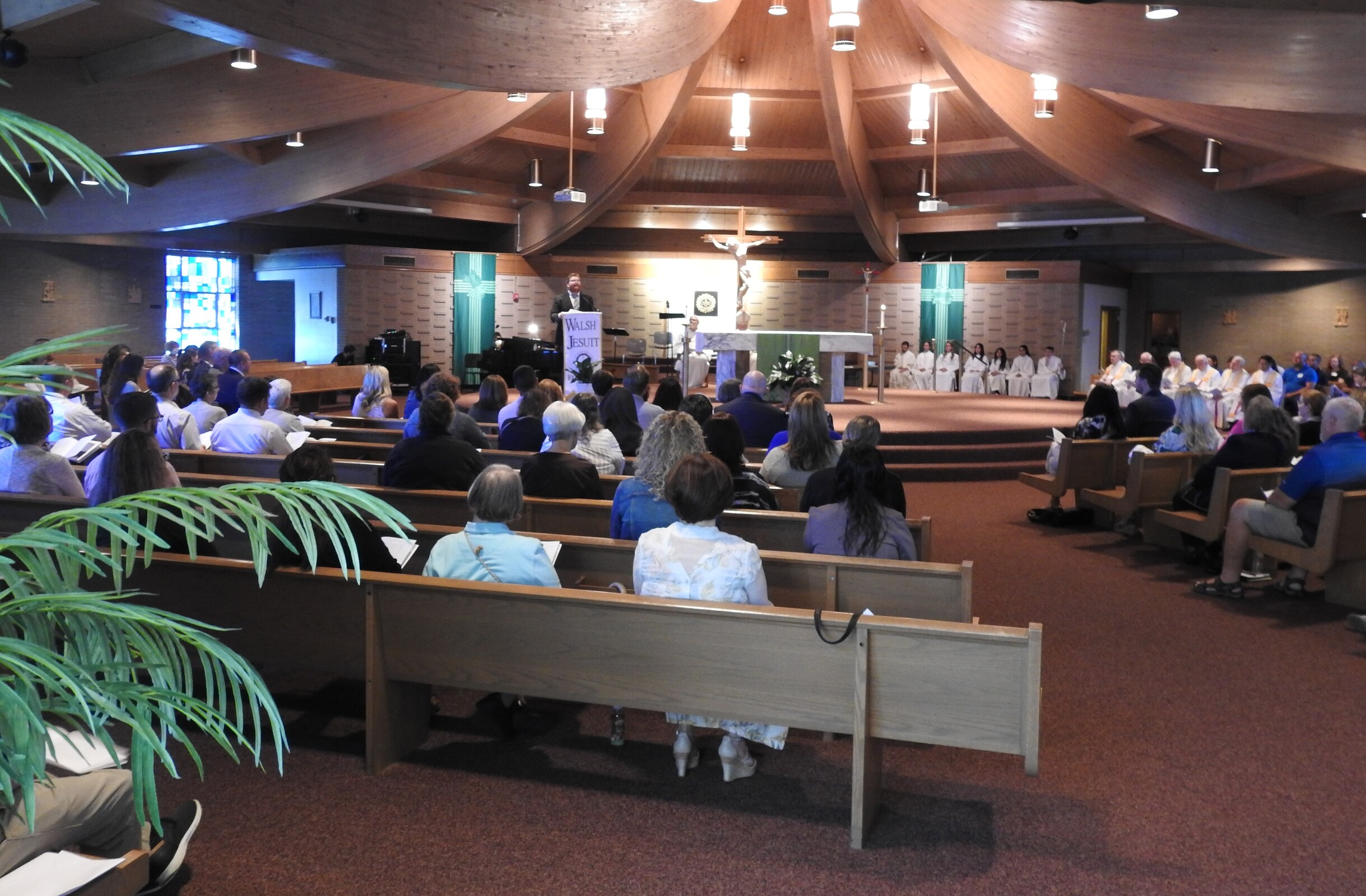 Bishop Edward Malesic celebrated Mass for the group with Father Tom Acker, SJ, Father John Blasek, CSC, Father Ray Guiao, SJ, Father Jay McPhillips, Father Don Petkash, SJ, Father Ken Styles, SJ, and Father Turner as concelebrants. Deacon Bob Grgic, catechetical leader at St. Gabriel Parish in Concord Township assisted and music leader was Cameron Cabot, Walsh Jesuit music director.