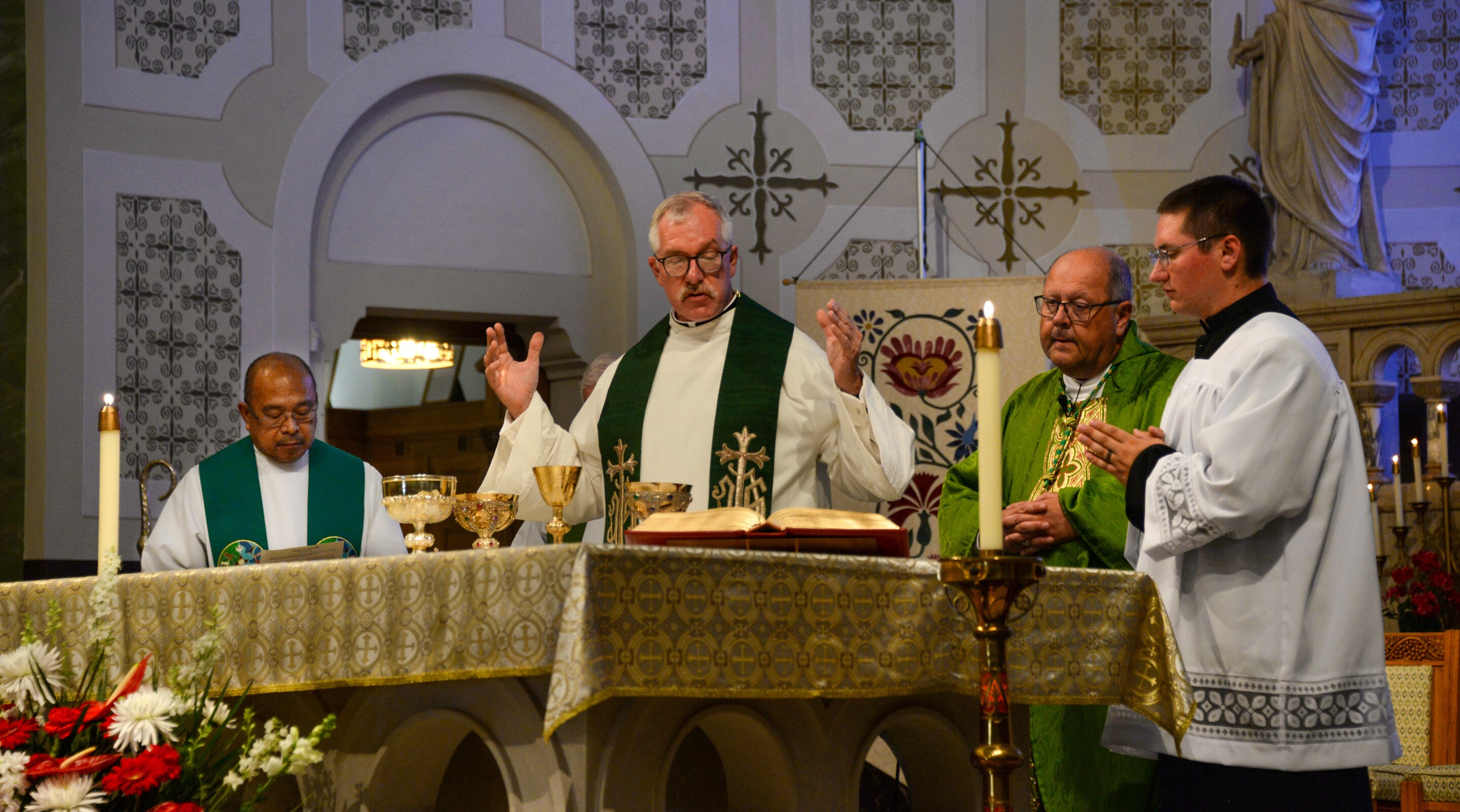 Father John Retar, the seventh, was installed by Bishop Edward Malesic during a Mass on Aug. 13. Five other priests with connection to the parish concelebrated: Father Joseph Boznar, the previous pastor who retired last summer, Father Loy Nacorda, Father Greg Neuzil, Father Johnathan Zingales and Father Retar.