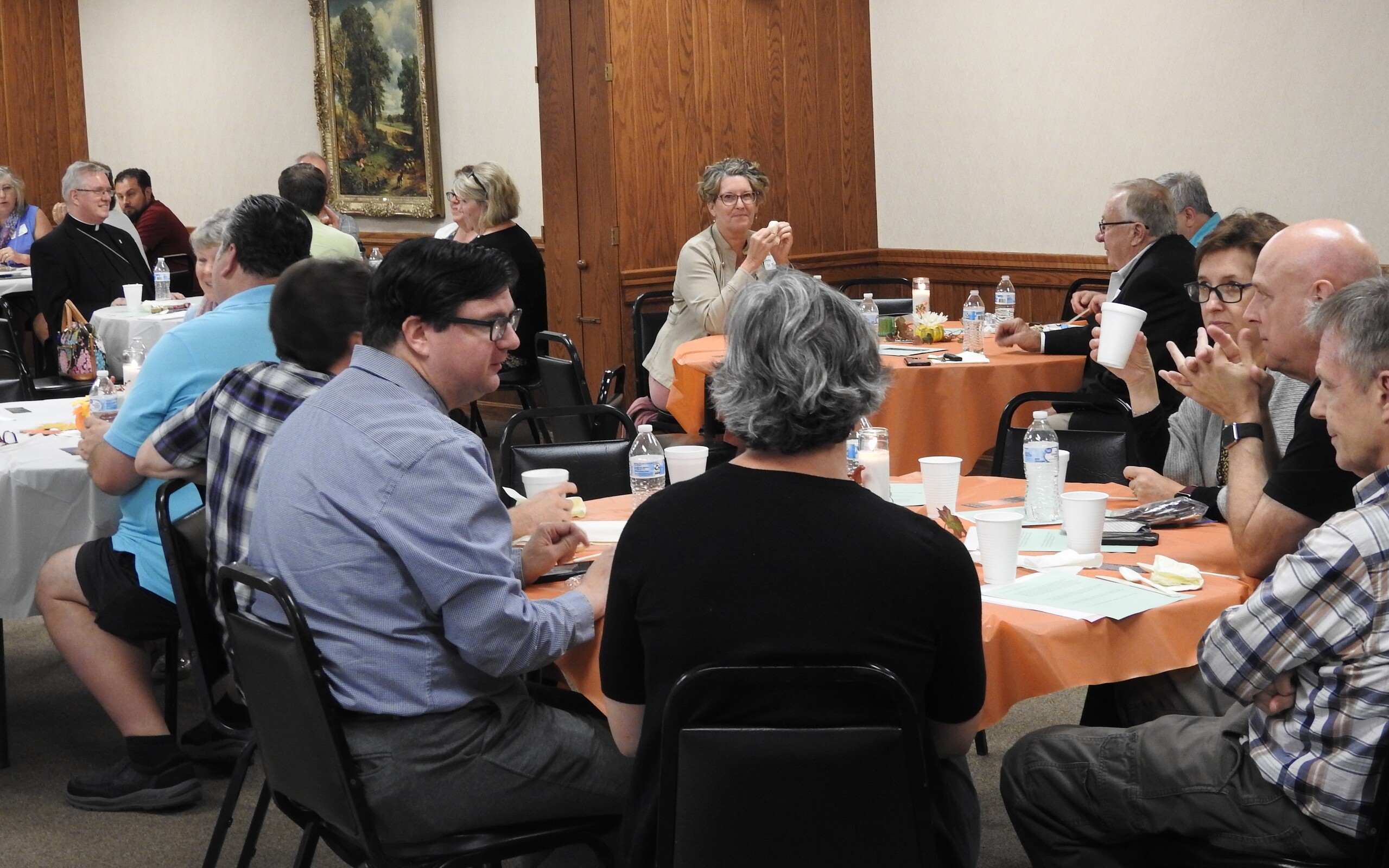 About 60 people connected to music ministries in the diocese spent time in discussion before taking a dinner break. Bishop Woost addressed the group after dinner and then presided at evening prayer.
