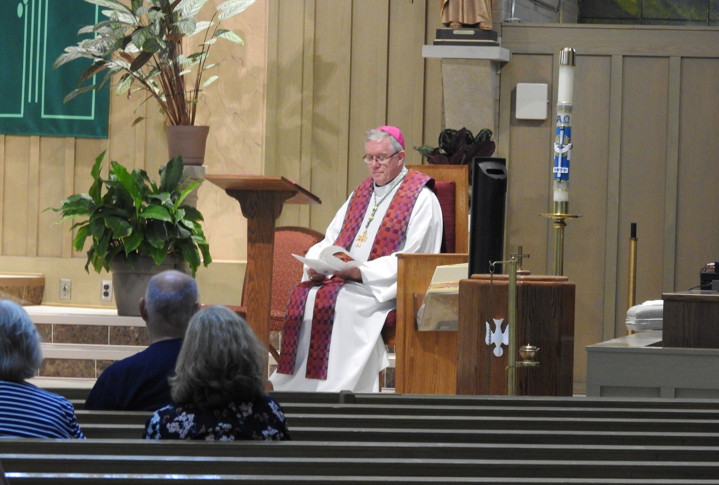 After his presentation, the group moved into the church where Bishop Woost presided at night prayer, most of which was sung.