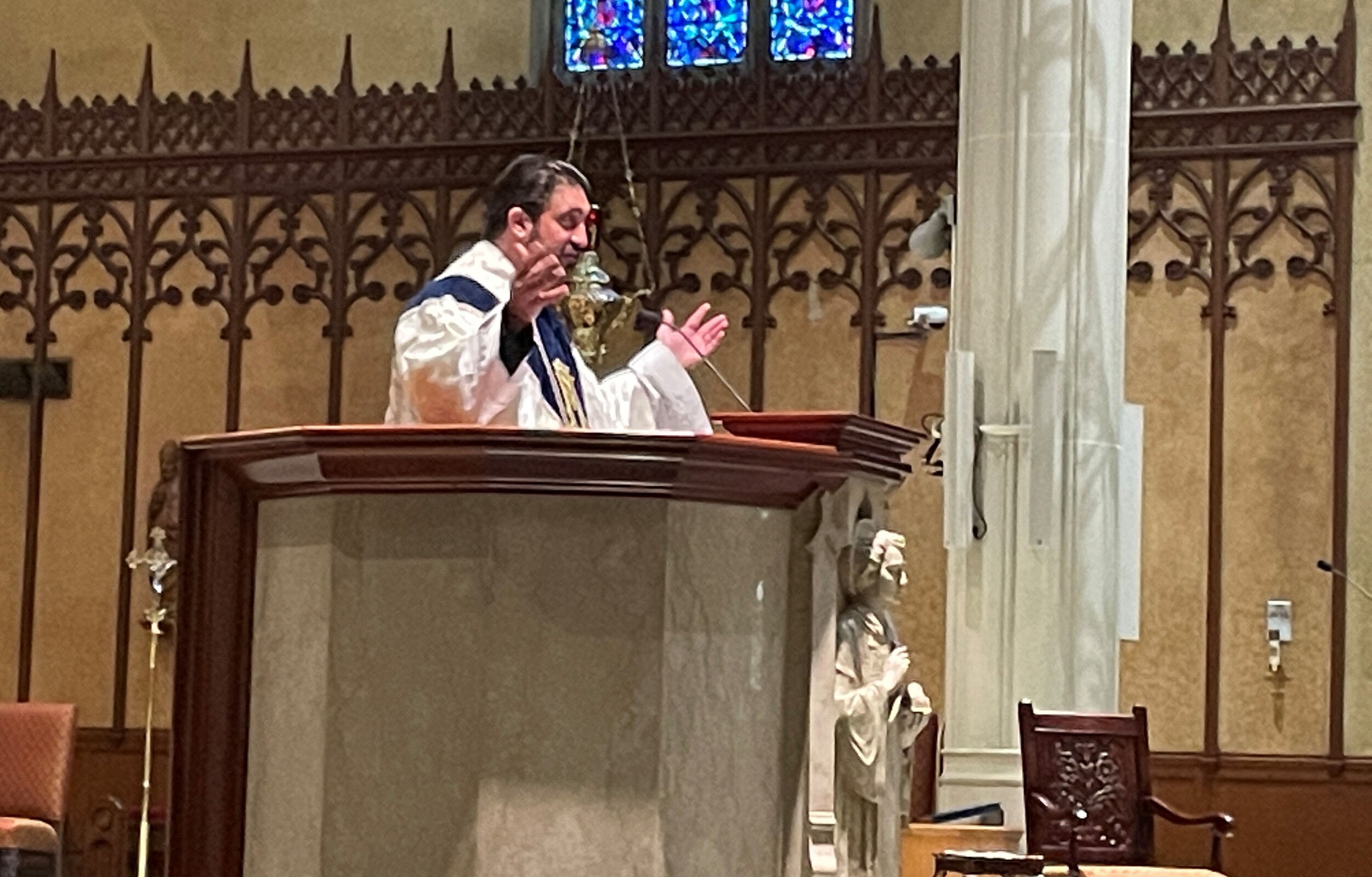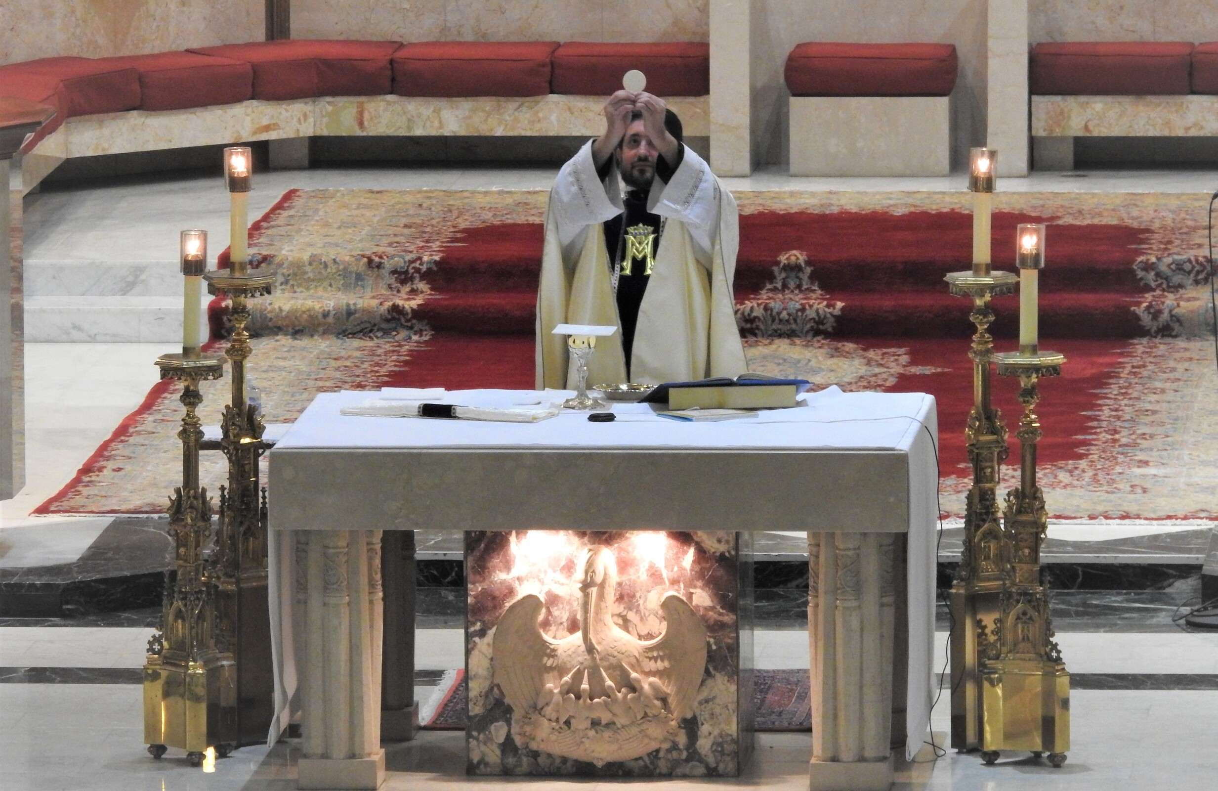 During Mass one day, the woman noticed a host levitating before it took on the appearance of flesh – the body of Christ. As he distributed Communion, St. Gregory became aware that the woman once again believed in the real presence. Father Estabrook said it is one of several known Eucharistic miracles and reinforces the reality that the Son of God is present in the break and wine at Mass.