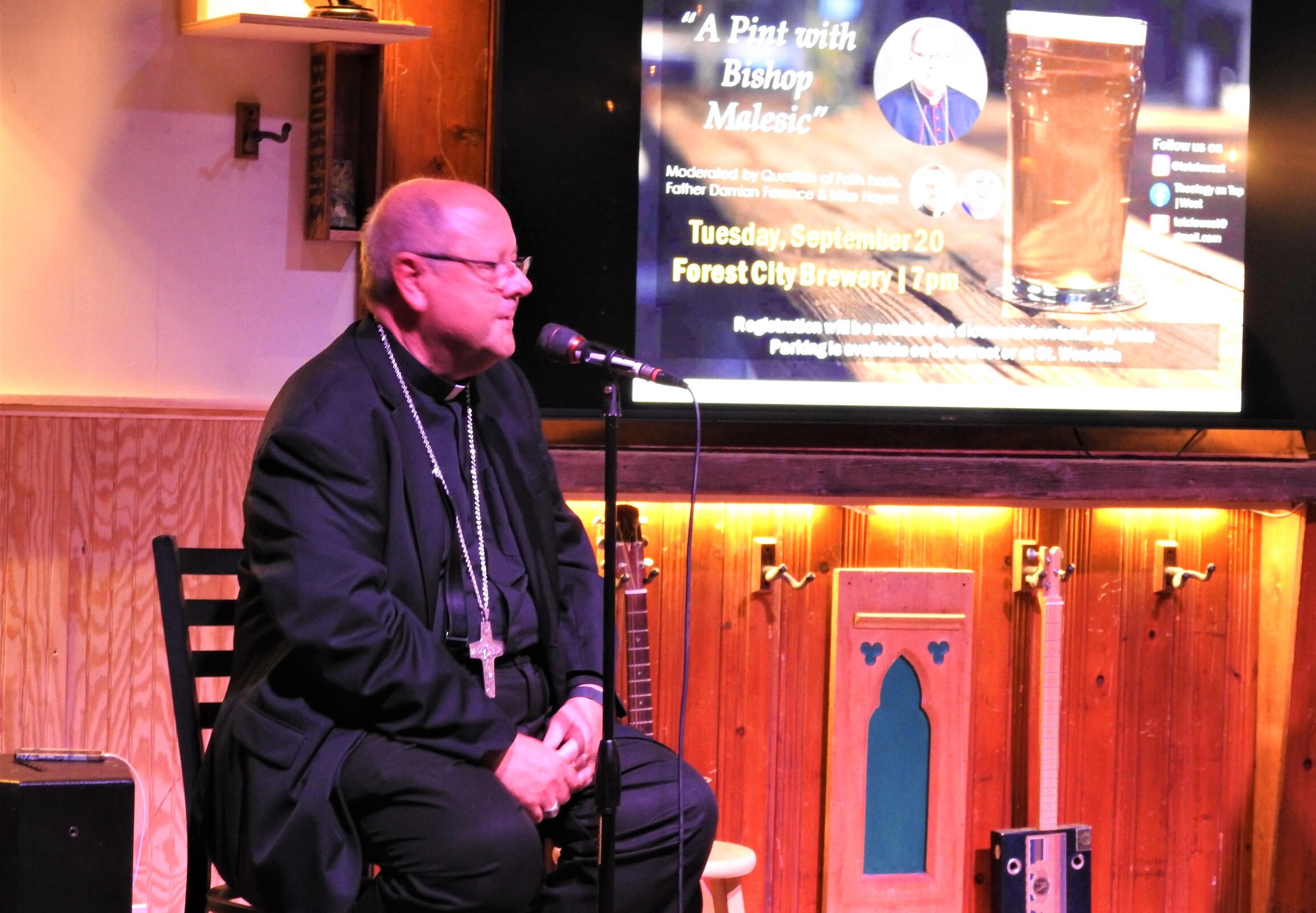 More than 100 people turned out Sept. 20 to have “A Pint with Bishop (Edward) Malesic” at Forest City Brewery in Cleveland’s Duck Island neighborhood. The vibe was energetic as young adults – and a few others – gathered to renew Theology on Tap. The group had been on hiatus, primarily due to the pandemic.