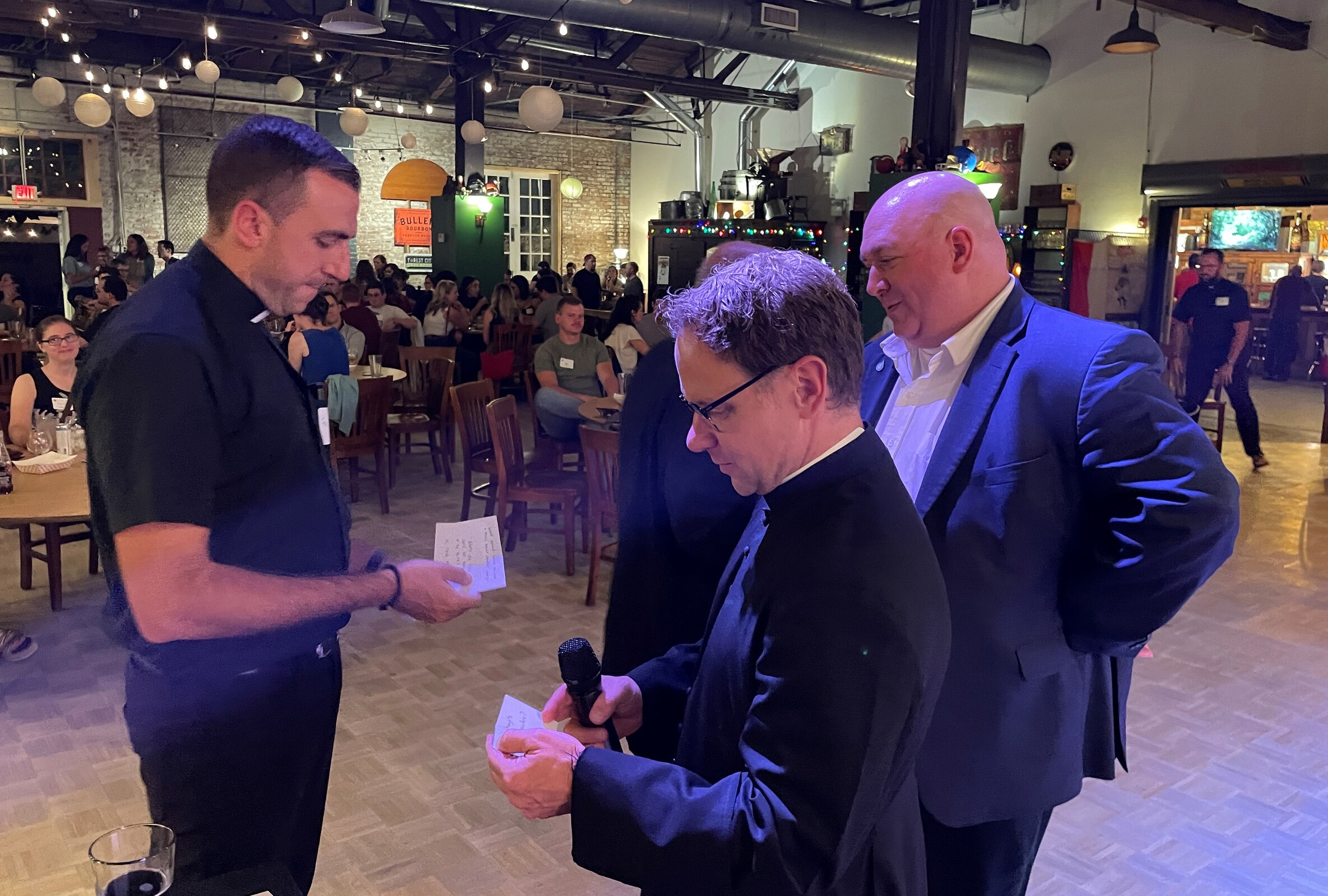 Father Damian Ference, vicar for evangelization and director of Parish Life and Special Ministries, tag-teamed with Mike Hayes, director of young adult ministry, to run the program. Father Ference and Hayes produce a weekly podcast and noted the TOT program was an extension of that, with a live audience.