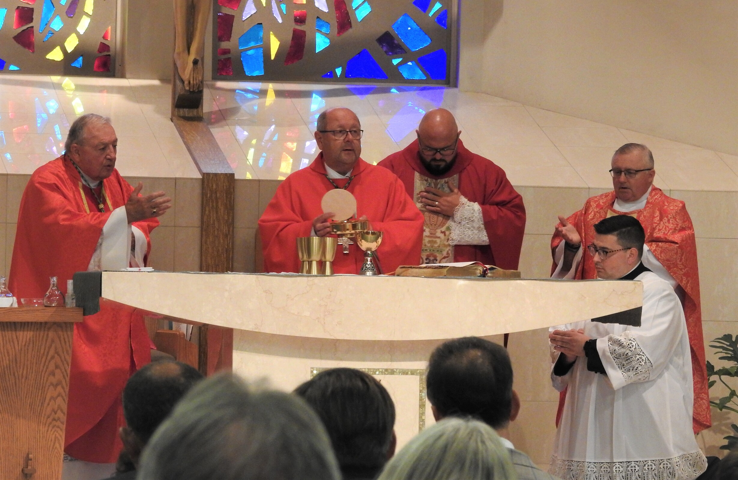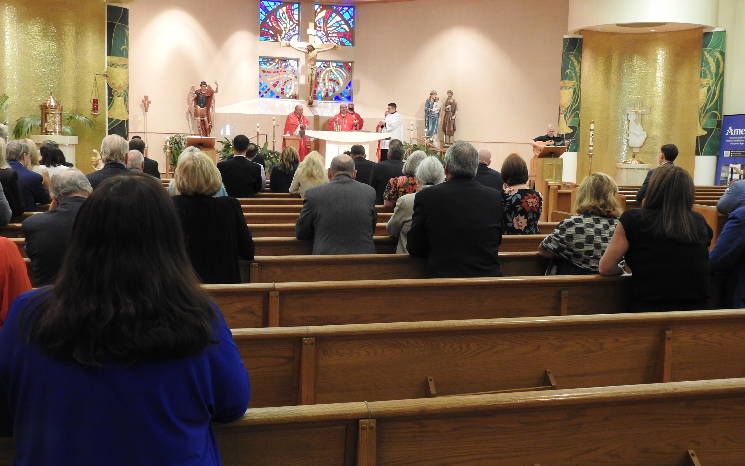 Bishop Gries thanked the group for their support and told them it was wonderful “to stand around the altar and to be nourished with the body and blood of Christ.” He also thanked his secretary of 31 years, Cheryl Zelenka, for her assistance and support.