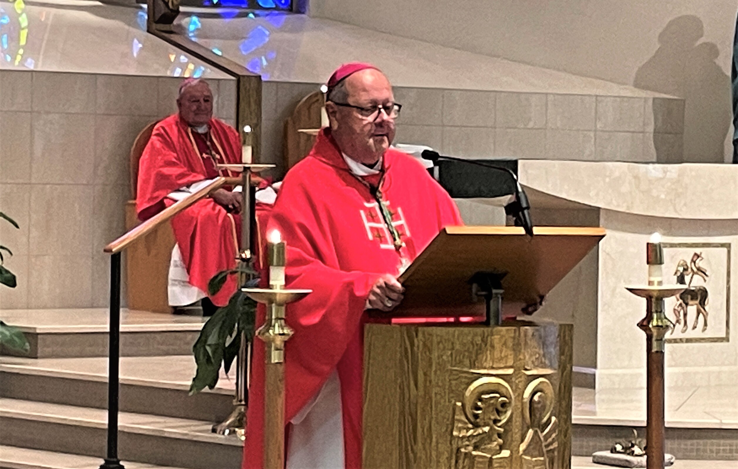 Maria and Brian Dean noted that Legates, as the members are known, are asked to be ambassadors for Christ in the workplace. “The bishop (Gries) is good all the time and all the time he is good,” they said, borrowing and adapting a favorite statement of Bishop Gries. “You’re a wonderful shepherd,” they added, recalling his devotion to pro-life causes and his memorable remarks to the Republican National Convention in Cleveland in 2016. They also fondly recalled how Bishop Gries helped their son when he was struggling and guided him back to the faith. He witnessed their children’s weddings and prayed for their daughter, helping her overcome health challenges, they added.