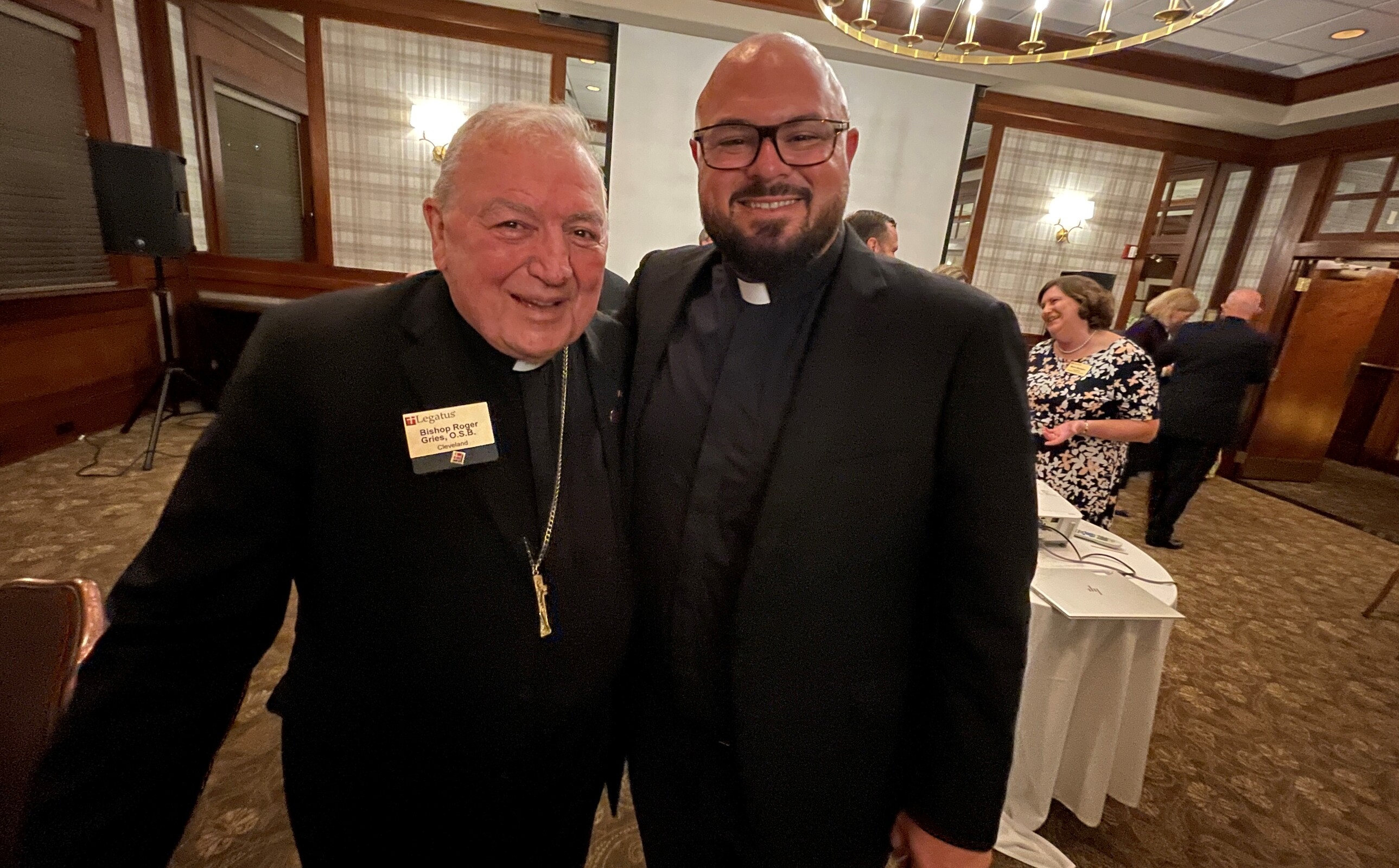 Members of the Cleveland Legatus Chapter paid tribute to their longtime chaplain, Auxiliary Bishop emeritus Roger Gries, during the group’s September meeting.